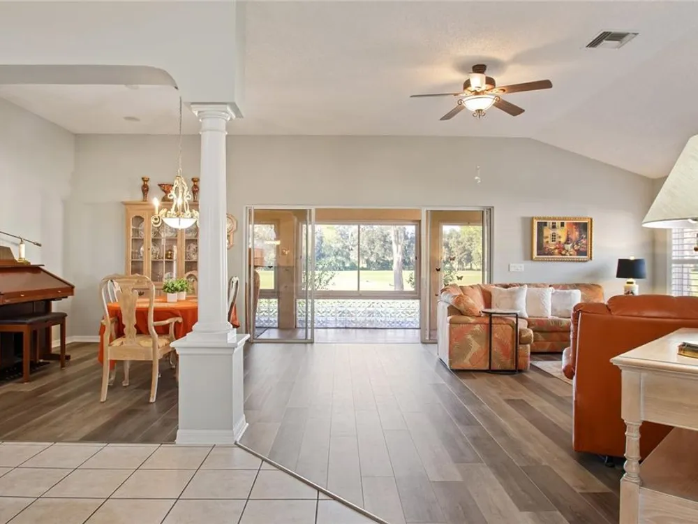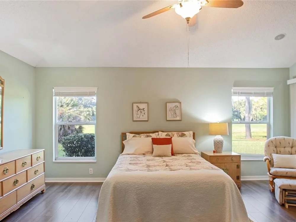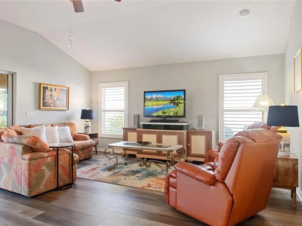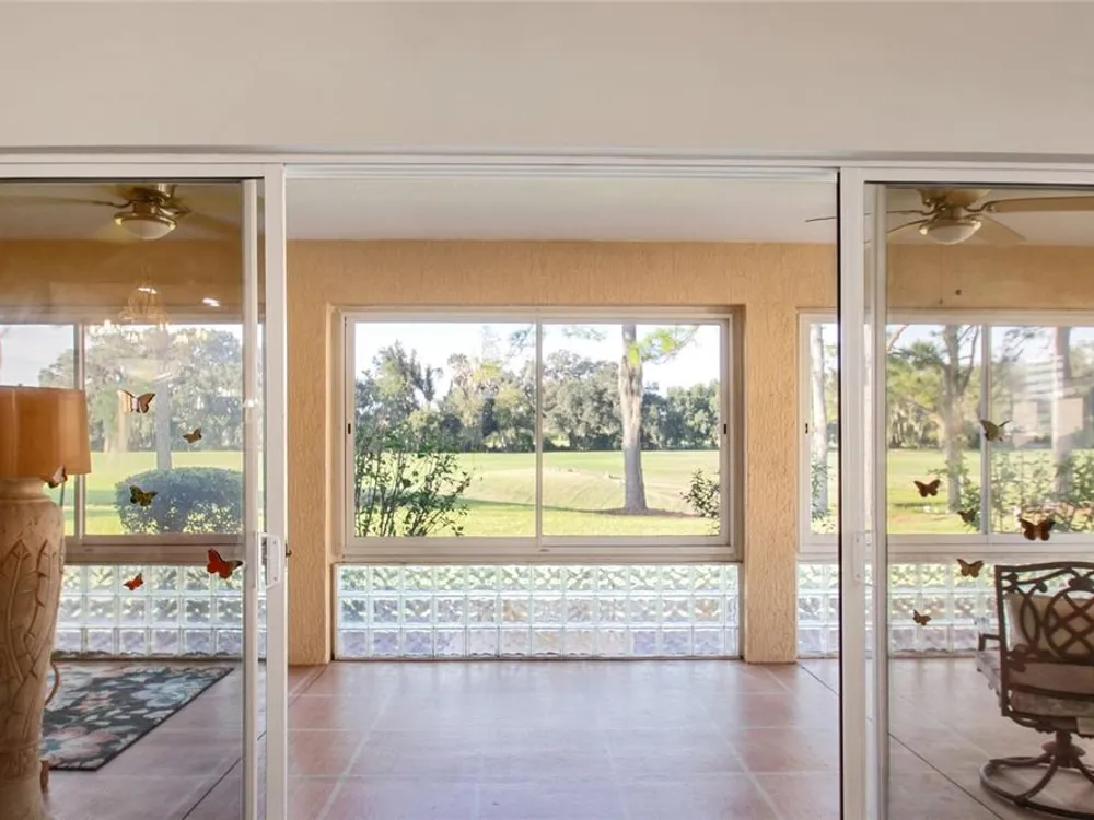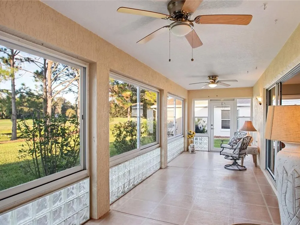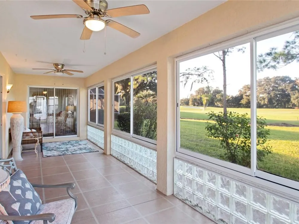 STUNNING GOLF COURSE VIEWS and ROOM FOR A LARGE POOL. This once in a lifetime opportunity for spectacular views, privacy, and space to create your own pool oasis on Glenview Championship Golf Course is here. This popular Gardenia model home has all the features Villagers love: open concept living/dining/kitchen; large kitchen with counter space for 4+ bar stools; high ceilings; split bedroom floor plan with guest room on one side, primary suite on the other side; indoor laundry; Florida room with windows and screens with NO NEIGHBORS behind. This home is offered fully furnished so all you need is your toothbrush and your dreams. Homes on the Glenview Championship Golf Course do not come onto the market often. Grab this one while you can!