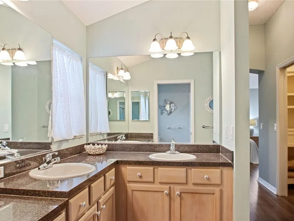 - Ceiling Fan(s), Eat-in Kitchen, High Ceilings, Living/Dining Room, Open Floorplan, Main Level Primary, Split Bedrooms, Thermostat, Vaulted Ceiling(s), Walk-In Closet(s), Window Treatments