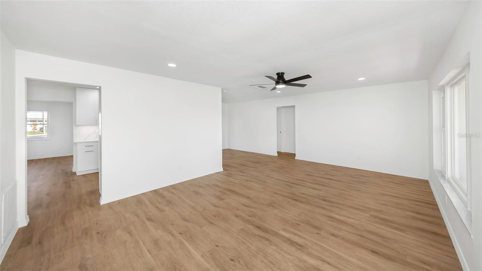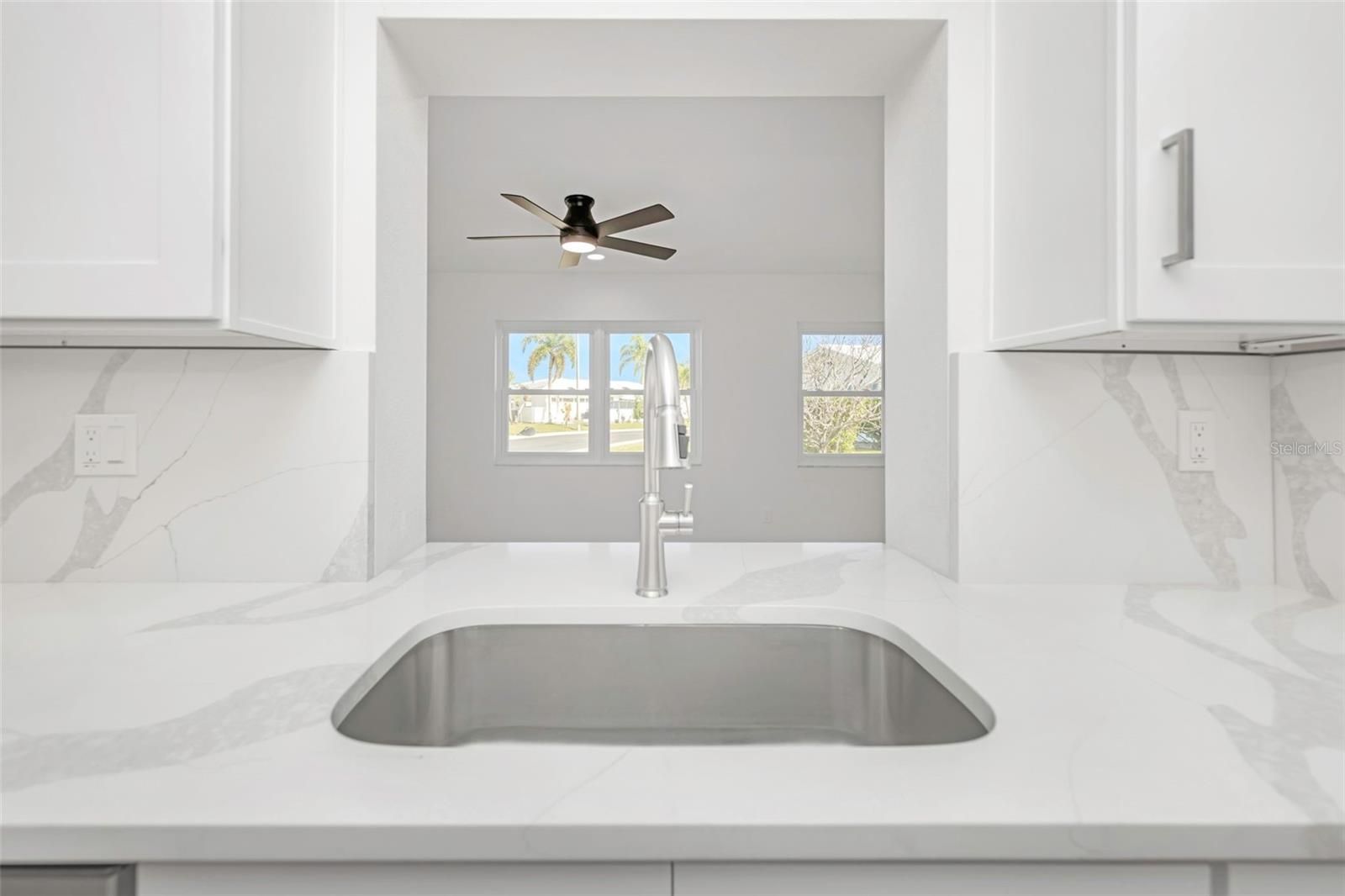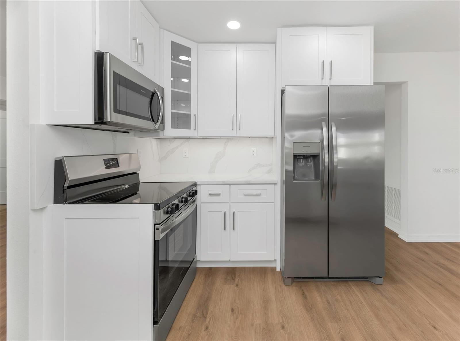 The oversized covered front porch welcomes you into this completely renovated home in the desirable Mainlands of Tamarac 55+ community. Featuring impact-rated windows and a front door with decorative glass and sidelight, this move-in ready residence offers style and peace of mind. Inside, enjoy over 1,600 square feet of new waterproof vinyl plank flooring with no transitions, neutral colors, recessed lighting, and ceiling fans throughout. The updated kitchen showcases white shaker cabinets — including select glass-front cabinets for a modern touch — quartz countertops, stainless steel appliances, and under-cabinet lighting. Retreat to the spacious primary suite featuring a walk-in closet and a stylishly renovated en-suite bath. The second bedroom includes built-in closets for ample storage and functionality. Both bathrooms have been fully updated with tiled showers (no tubs), new vanities, and contemporary finishes throughout. Washer and dryer with utility tub are located in the garage, which also features a reinforced garage door and newly finished floor. Flat roof - 2014, HVAC - 2022, Flood Zone X. Affordable monthly maintenance fee of $485 includes roof repair and replacement, lawn care, exterior painting, water, sewer, trash, reclaimed water irrigation, internet, and two digital cable boxes — providing exceptional value and peace of mind. Mainlands community offers clubhouse, heated in-ground pool, shuffleboard courts, and a full calendar of activities. The neighborhood surrounds an 18-hole public golf course and is adjacent to Freedom Lake Park, featuring paved walking trails around two lakes, outdoor fitness equipment, bocce courts, playground, picnic pavilions, dog park, and sailboat racing. Conveniently located near shopping, dining, medical facilities, banking, and cultural and sporting venues.