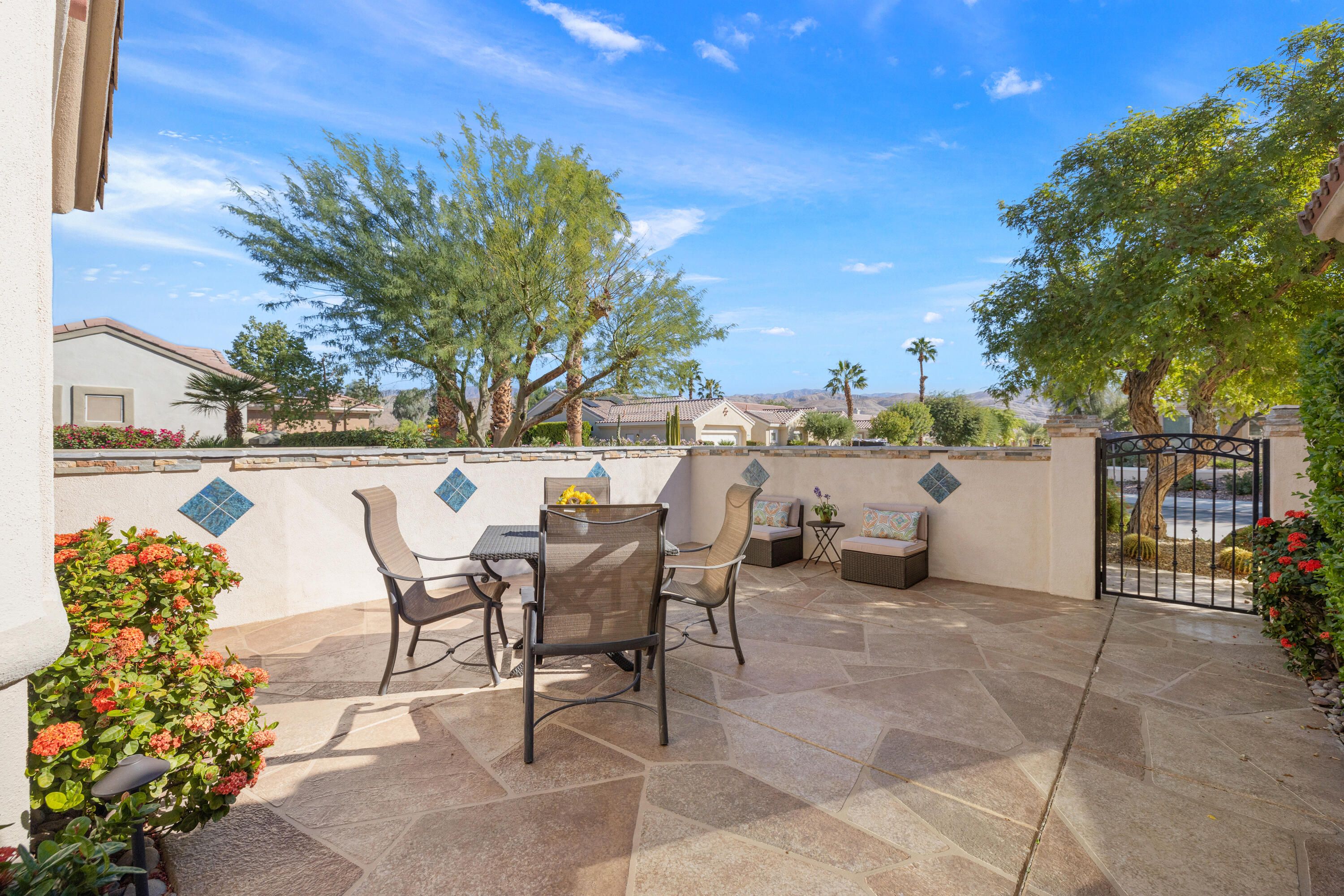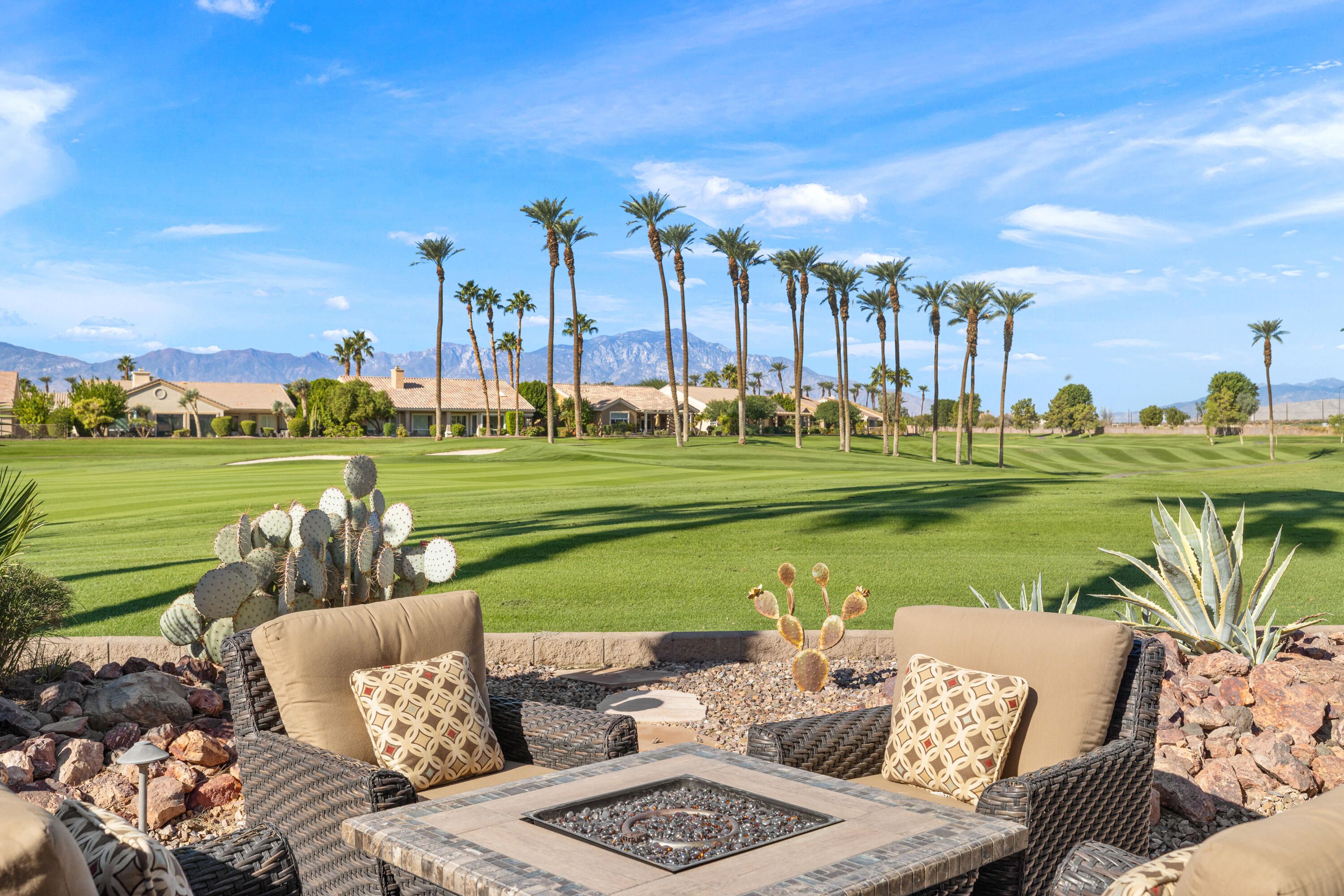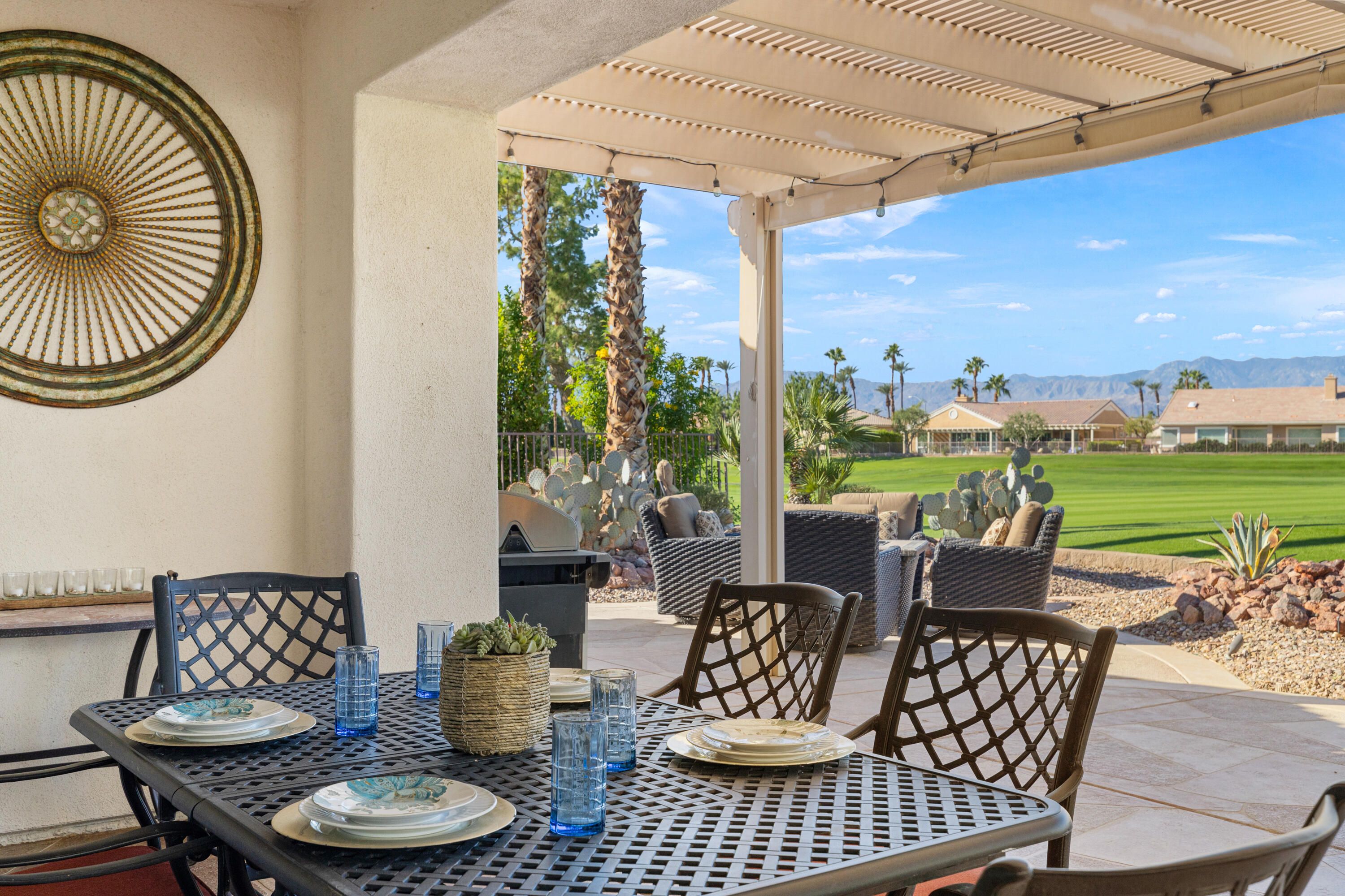 55+ Sun City Palm Desert--The ''Best BANG for your BUCK'' active retirement community in the whole Coachella Valley and beyond. Most popular St. Croix model with 2 beds/2 full baths, plus a DEN/HOBBY/FLEX room and golf cart garage. Spectacular golf course, sunset, mountain and lake views!!! GREAT location in the newer section of Sun City close to the Lake View Recreation Center. Stunning curb appeal features added courtyard patio wall for extra privacy with stacked stone, custom concrete overlay, desert landscaping with updated irrigation system, and courtyard and landscape lighting. Inside, NEWER AC in 2021, tile and plantation shutters throughout, new paint, new recessed lighting, all new ceiling air vents, Culligan water softener and reverse osmosis system. Kitchen features granite slab, quartz backsplash, pendant lighting over breakfast bar, refaced cabinets with hardware, upgraded stainless appliances and gas cooktop. The living room has a beautiful custom media center with touch lighting, the dining room has a brand new window, sliding door to the rear patio. The master bedroom is spacious, has a bay window with a window seat with a view, bathroom has double vanity, and closet system. Guest bedroom has fan/light, bath in hallway with a tub/shower combo. The famous DEN/HOBBY room is perfect for a TV room, office, workout room, and an extra guest space. The laundry room is inside, has cabinets and sink, washer and dryer are included (approx. 4 years old) Garage is extended, has epoxy flooring, new door opener, electric car charger, extra fridge and mini-split AC. NOW for the BEST PART!! Double fairway VIEWS of the golf course in both directions! Extended concrete patio with custom overlay, sparkling custom waterfall with stacked stone and new pump, French drainage system, added irrigation, landscape lighting. Perfect for relaxing and/or entertaining with family and friends for the holidays! ''Buy Where you Love to Play...Sun City Palm Desert!''