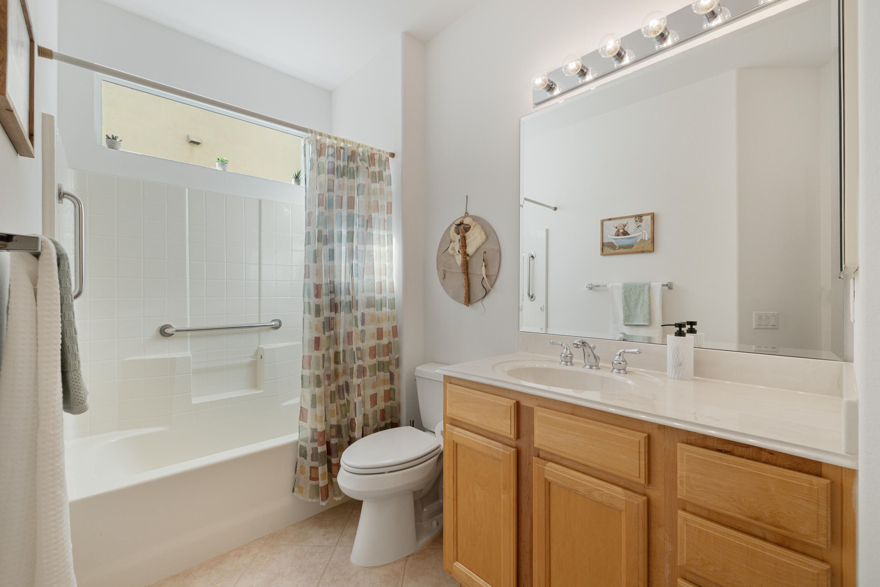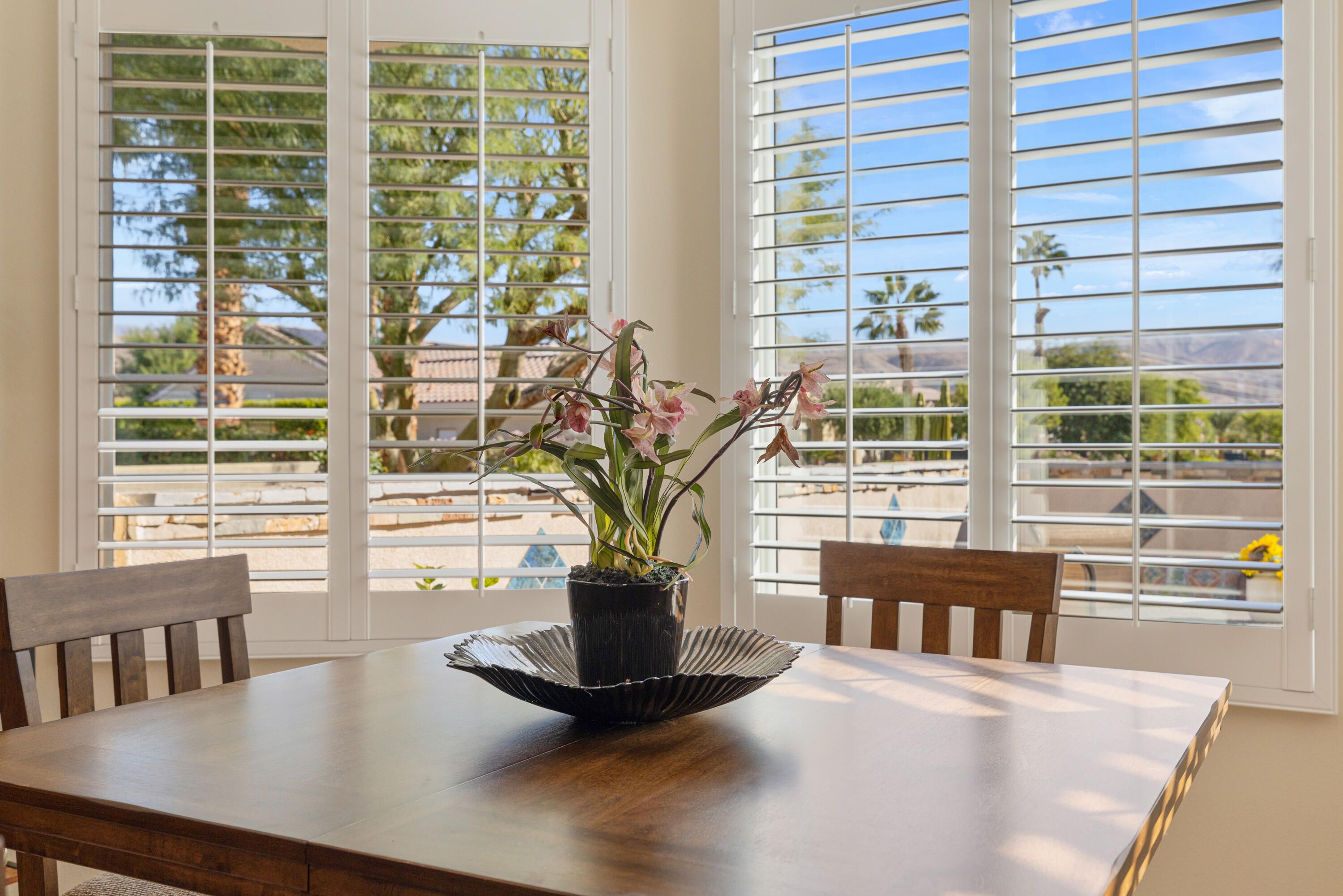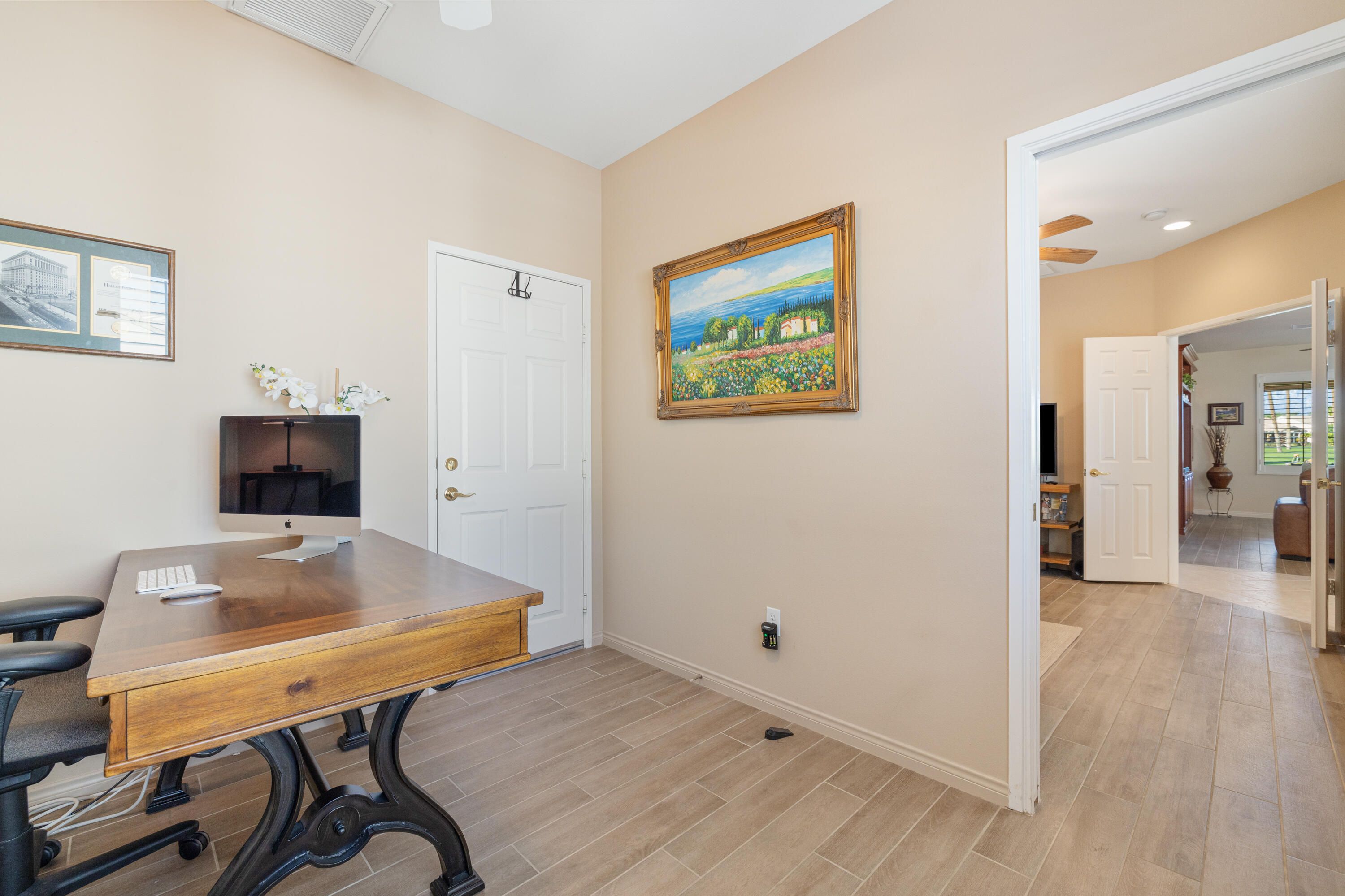 55+ Sun City Palm Desert--The ''Best BANG for your BUCK'' active retirement community in the whole Coachella Valley and beyond. Most popular St. Croix model with 2 beds/2 full baths, plus a DEN/HOBBY/FLEX room and golf cart garage. Spectacular golf course, sunset, mountain and lake views!!! GREAT location in the newer section of Sun City close to the Lake View Recreation Center. Stunning curb appeal features added courtyard patio wall for extra privacy with stacked stone, custom concrete overlay, desert landscaping with updated irrigation system, and courtyard and landscape lighting. Inside, NEWER AC in 2021, tile and plantation shutters throughout, new paint, new recessed lighting, all new ceiling air vents, Culligan water softener and reverse osmosis system. Kitchen features granite slab, quartz backsplash, pendant lighting over breakfast bar, refaced cabinets with hardware, upgraded stainless appliances and gas cooktop. The living room has a beautiful custom media center with touch lighting, the dining room has a brand new window, sliding door to the rear patio. The master bedroom is spacious, has a bay window with a window seat with a view, bathroom has double vanity, and closet system. Guest bedroom has fan/light, bath in hallway with a tub/shower combo. The famous DEN/HOBBY room is perfect for a TV room, office, workout room, and an extra guest space. The laundry room is inside, has cabinets and sink, washer and dryer are included (approx. 4 years old) Garage is extended, has epoxy flooring, new door opener, electric car charger, extra fridge and mini-split AC. NOW for the BEST PART!! Double fairway VIEWS of the golf course in both directions! Extended concrete patio with custom overlay, sparkling custom waterfall with stacked stone and new pump, French drainage system, added irrigation, landscape lighting. Perfect for relaxing and/or entertaining with family and friends for the holidays! ''Buy Where you Love to Play...Sun City Palm Desert!''