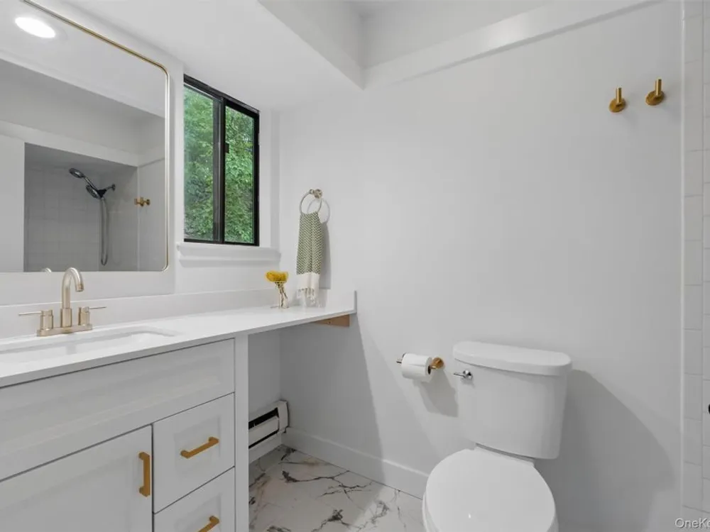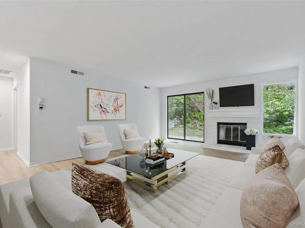 Highly desired Katonah model set in a serene location with absolute privacy. Enjoy the complete renovation...just move right in! Beautiful kitchen with Quartz counter tops, tile back splash, breakfast bar and stainless steel appliances. Formal dining room off the kitchen with wall sconces makes entertaining easy or simply perfect for a quiet meal. Generously sized living room is warmed by a fireplace and has a slider to new slate patio with belgian block trim, enjoy the solitude!. Primary bedroom with renovated bath will spoil you along with second bedroom and updated full hall bath. Great Layout! Lower level offers large room for storage along with laundry facilities. Oversized Garage. New Water Heater. Roofs scheduled to be replaced in the Spring. Lots of guest parking. Close to Golf Course and Restaurant. Amenities include: Pools, Tennis Courts, Fitness Center, Clubhouse, Bacci, Jitney to Metro North and More! Enjoy the country club lifestyle...you deserve it!
