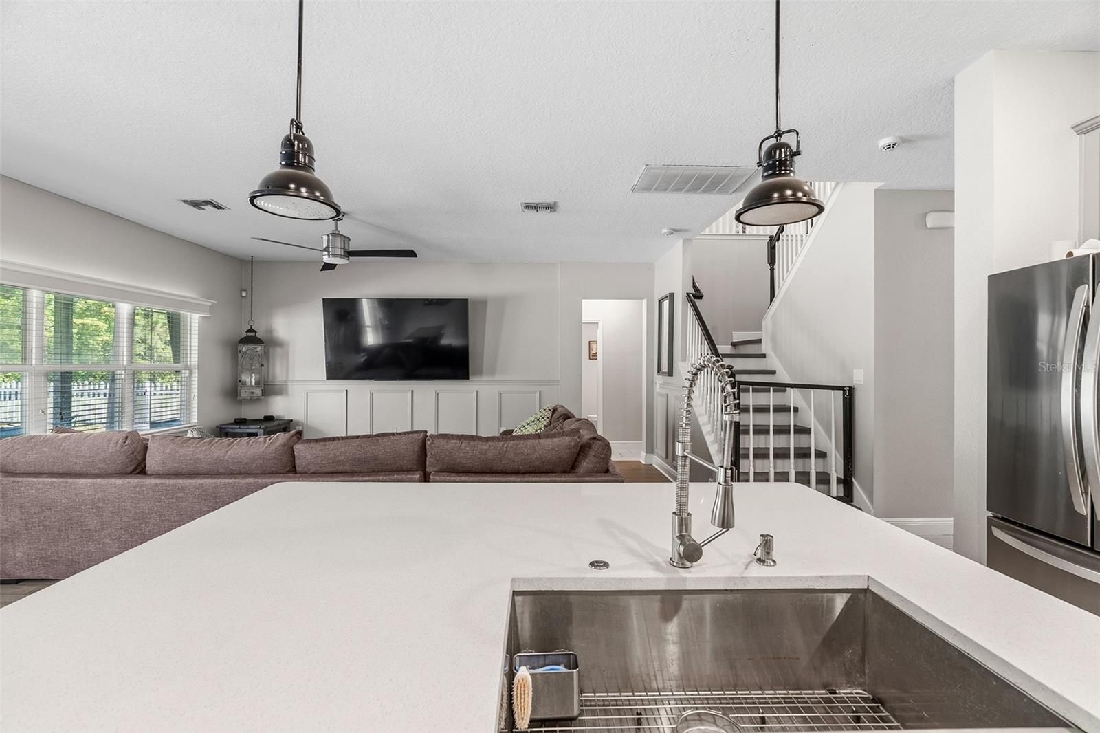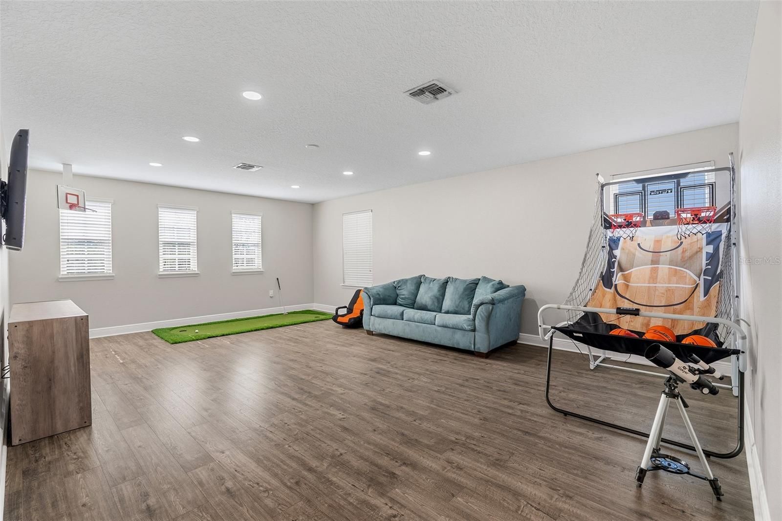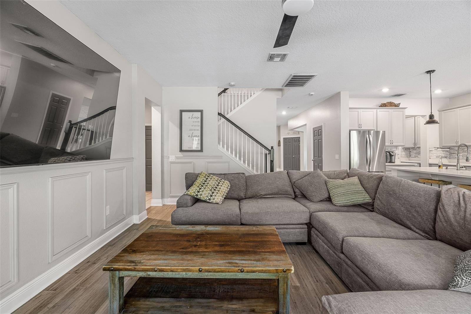 Welcome to this stunning home built by Meritage Homes, featuring the highly sought after Montclair model! This energy efficient home offers block construction on the first floor and spray foam insulation on the second floor, providing both durability and comfort. Boasting 5 bedrooms, 2.5 bathrooms, and a 2-car garage, this beautifully designed residence seamlessly combines style and functionality. From the moment you arrive, you’ll be impressed by the attractive stone paver driveway and walkway, setting the tone for what awaits inside. Step into a thoughtfully designed floor plan featuring separate formal living and dining rooms at the front of the home, perfect for entertaining. The heart of the home is the spacious kitchen, complete with upgraded 42” wood cabinets, quartz countertops, stainless steel appliances, a range hood, recessed lighting, a cozy nook, and a large island overlooking the family room, ideal for open-concept living. The first floor also includes a versatile flex room, perfect for a home office, den, or playroom. Throughout the home, you’ll find no carpet featuring hardwood flooring on the first floor and new laminate flooring upstairs. Upstairs, enjoy a generous layout with all bedrooms plus a large game room, offering additional living and entertainment space. The owner’s suite is a private retreat, featuring a spacious walk-in closet and an en-suite bathroom with dual sinks, a garden tub, and a separate shower. Step outside to your fenced backyard oasis, complete with a covered rear porch, paver walkway, and a custom fire pit, perfect for relaxing evenings or entertaining guests. This exceptional Montclair model truly offers the perfect blend of elegance, comfort, and modern living. Don’t miss your opportunity to call this beautiful home yours! Don’t miss your opportunity to call this beautiful home yours! Ideally located near Harmony Community School, this home offers golf cart friendly access through a nearby tunnel to Harmony Middle and Harmony High School. Residents enjoy exceptional amenities including Buck Lake with community pontoon boats, kayaks, canoes, and a fishing pier, along with resort style pools, dog parks, playgrounds, walking trails, a fitness center, and bike paths. Enjoy easy golf cart rides to the neighborhood coffee shop, pizza restaurant, and Mexican dining. Conveniently located near Orlando International Airport, Medical City in Lake Nona, and Florida’s East Coast beaches, Harmony offers the perfect blend of lifestyle, nature, and location. Don’t miss your opportunity to own this move in ready home. Schedule your private showing today! Buyer to verify all room measurements.