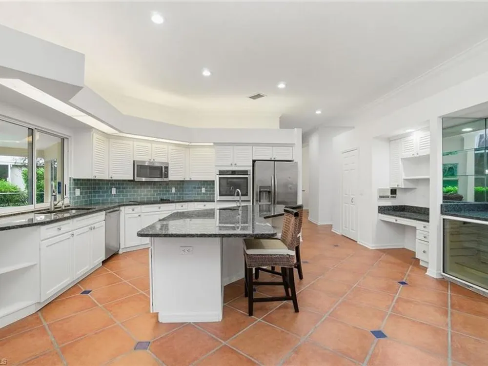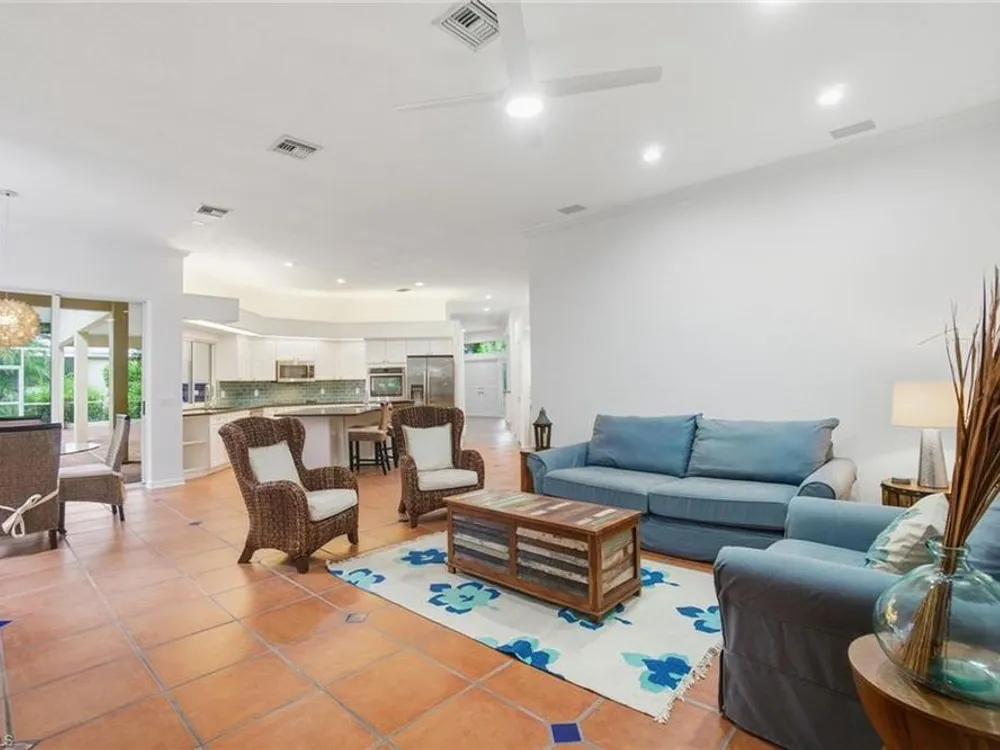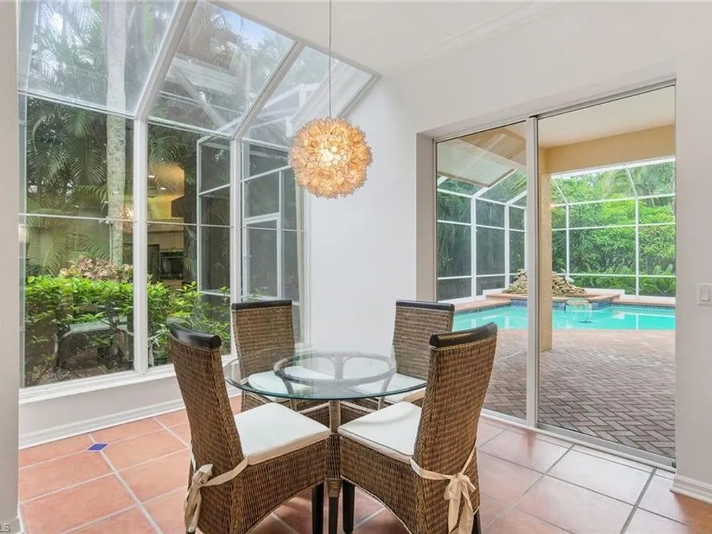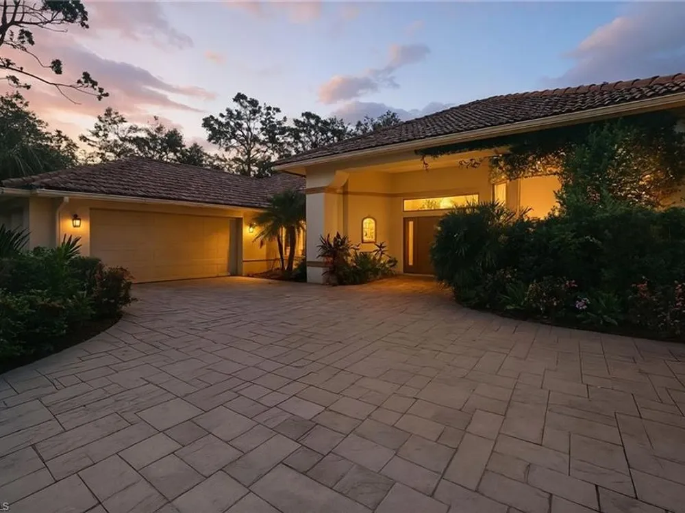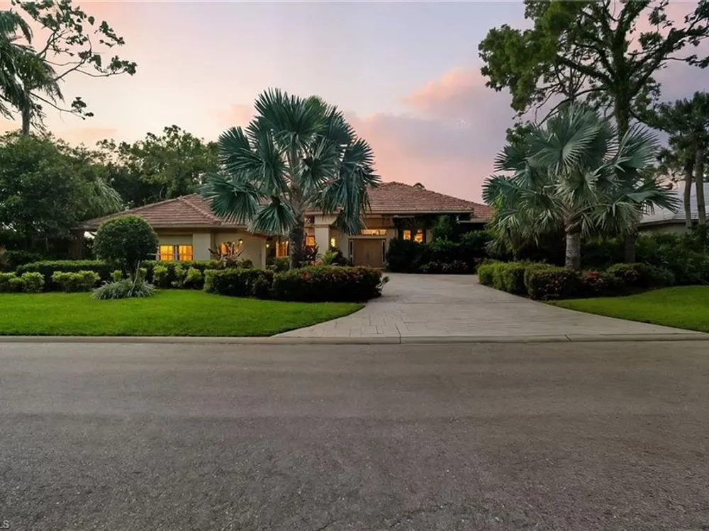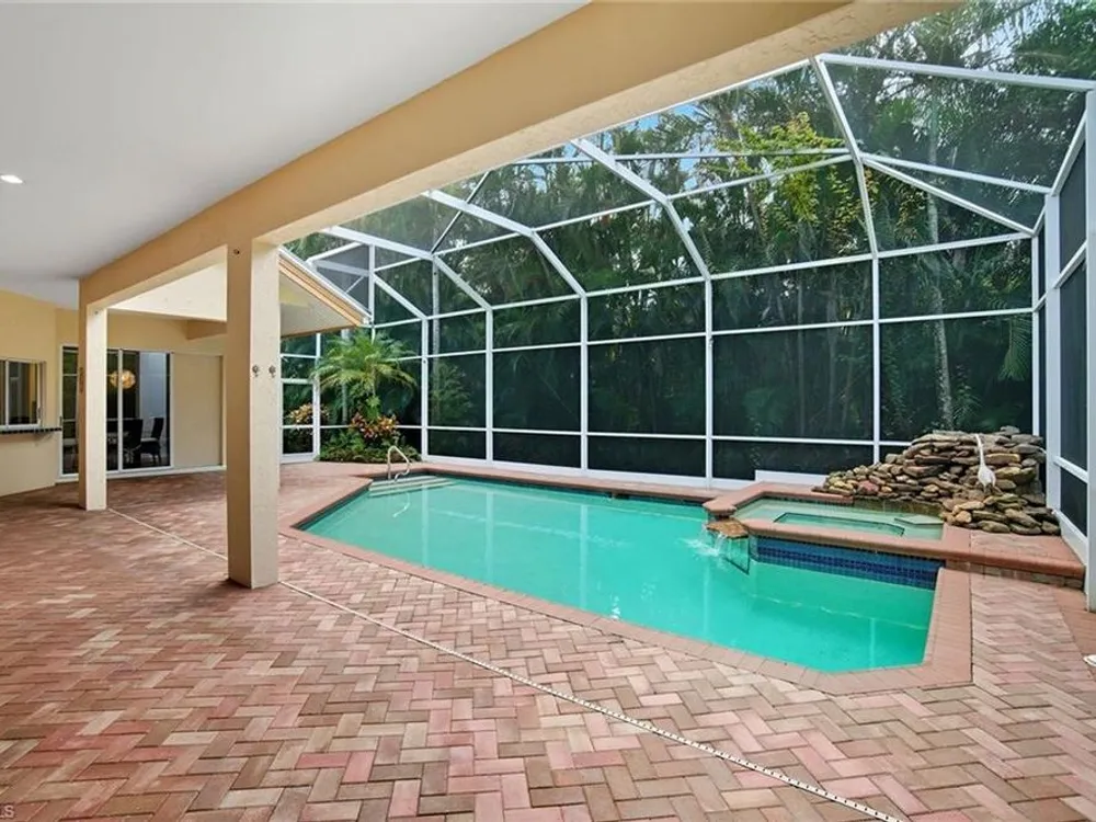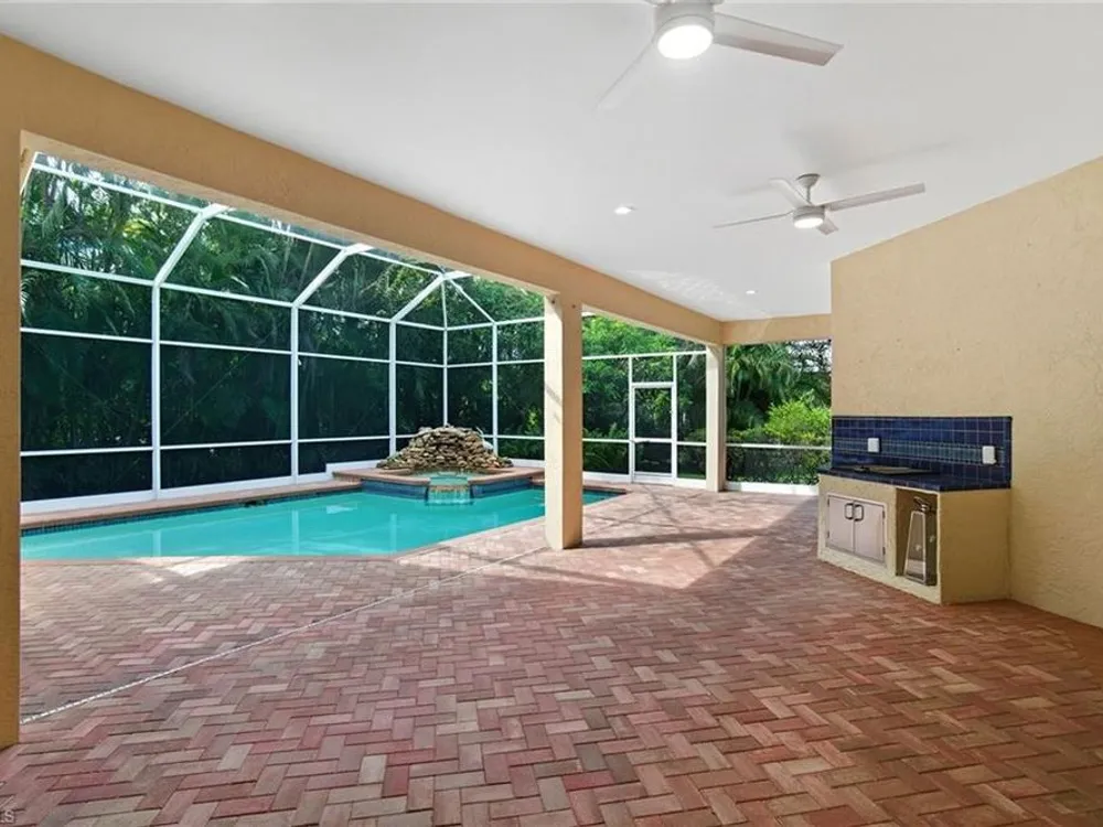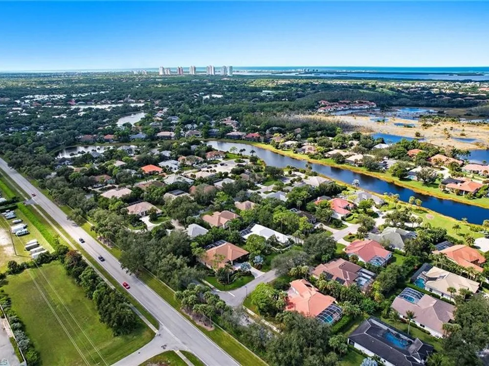 Welcome to this beautifully located single-family home tucked away on the corner of a quiet, peaceful street in the sought-after community of Pelican Landing. This three-bedroom, 2.5-bath residence offers a balance of comfort, style and privacy, surrounded by lush tropical landscaping. Go inside to discover an inviting open floor plan with abundant natural light, volume ceilings, and extra space to make this property your own. The kitchen features a large center island, granite countertops, built in wine bar and cooler, recessed lighting, walk-in pantry and views overlooking your serene private lanai—ideal for everyday living and entertaining. The spacious living and dining areas open seamlessly to a large, screened lanai, creating effortless indoor-outdoor flow ideal for relaxing or dining alfresco. The primary suite serves as a peaceful retreat with private lanai access, a walk-in closet, and a spa-inspired en-suite bath offering dual sinks, a soaking tub and a separate walk-in shower. Two comfortable guest bedrooms and a full guest bath provide ample space for visitors. Enjoy tranquil mornings and evenings from the large, south-facing screened lanai featuring a generous covered area, new ceilings fans, outdoor grill and a convenient pool bath. Additional highlights include a newer 2018 roof, updated HVAC, newly painted interior, a spacious two-car garage, and manicured landscaping that enhances the curb appeal. Residents of Pelican Landing enjoy an unmatched lifestyle with access to a private beach park on Big Hickory Island, a full-service marina, numerous tennis and pickleball courts, bocce, kayaking, a state of the art fitness center, and miles of scenic walking and biking trails—all within minutes of world-class dining and shopping. Experience a blend of elegance and Florida living here.