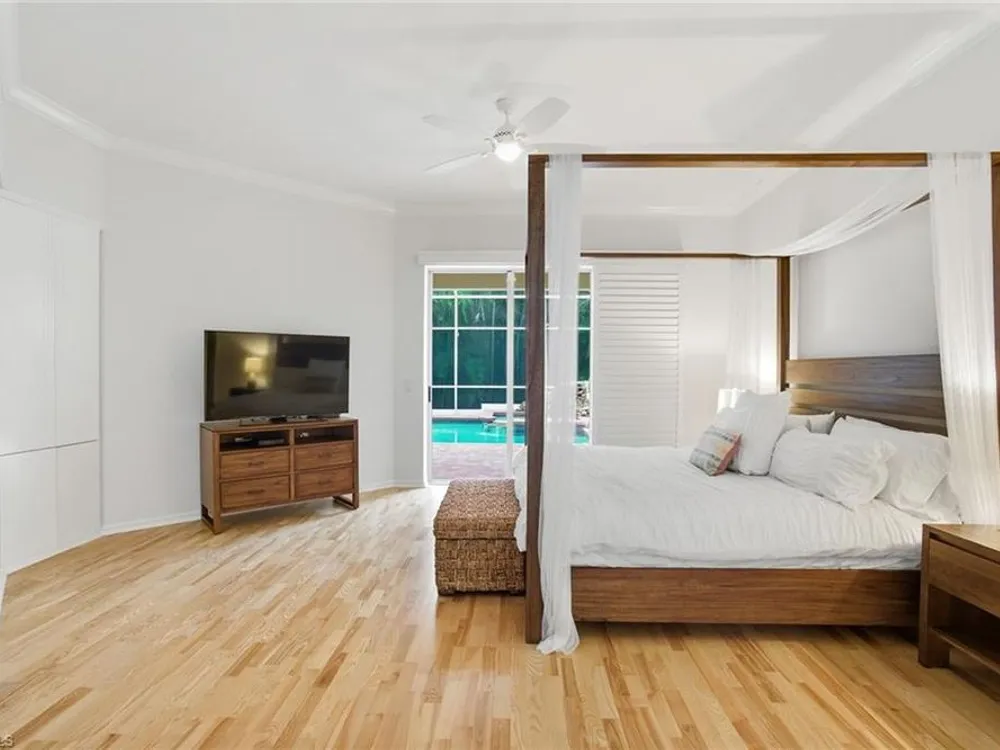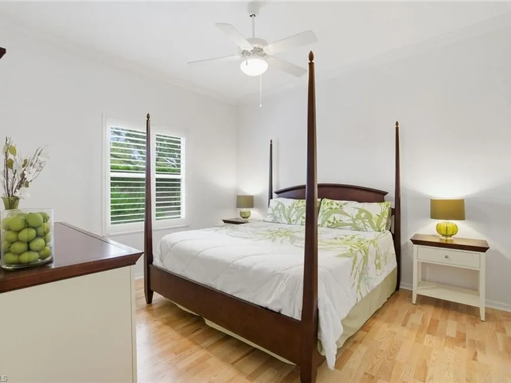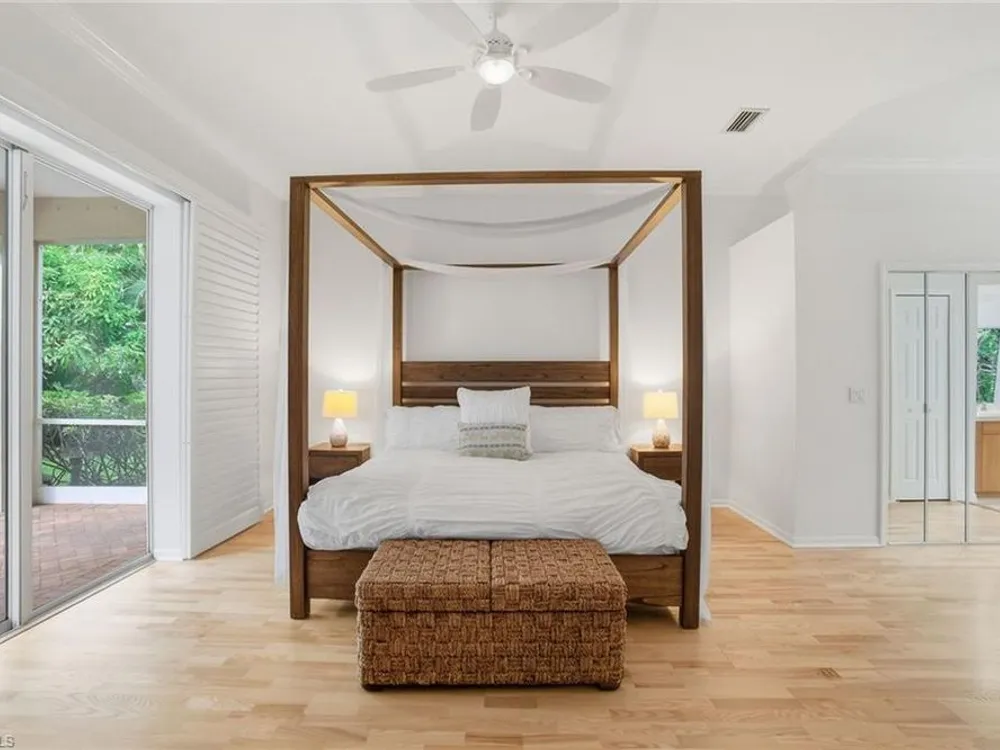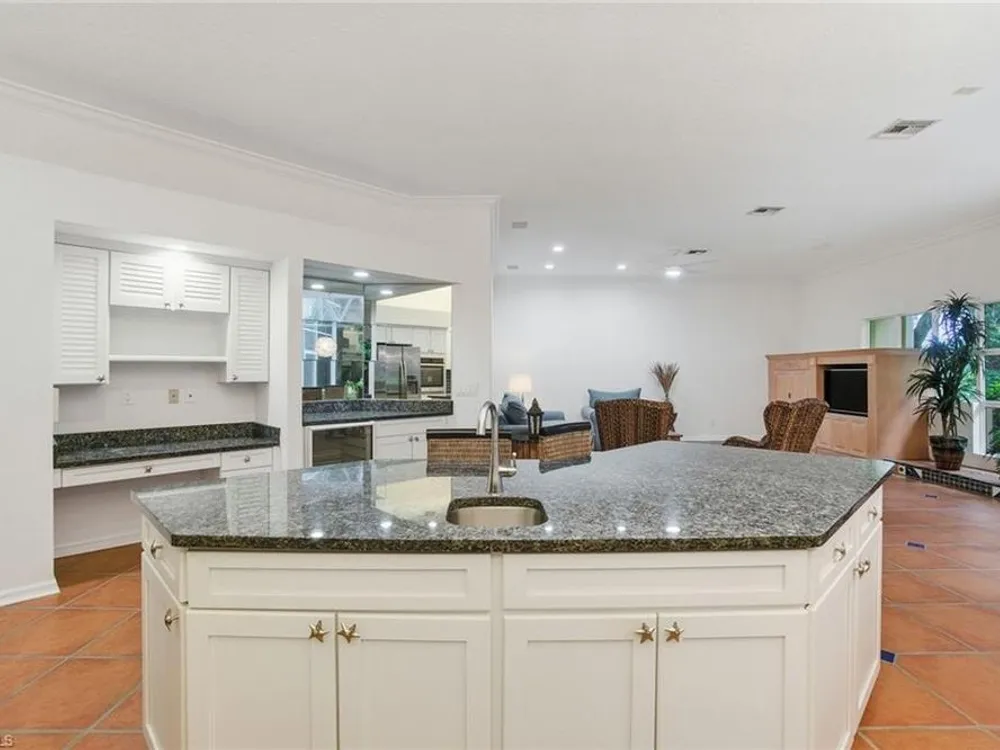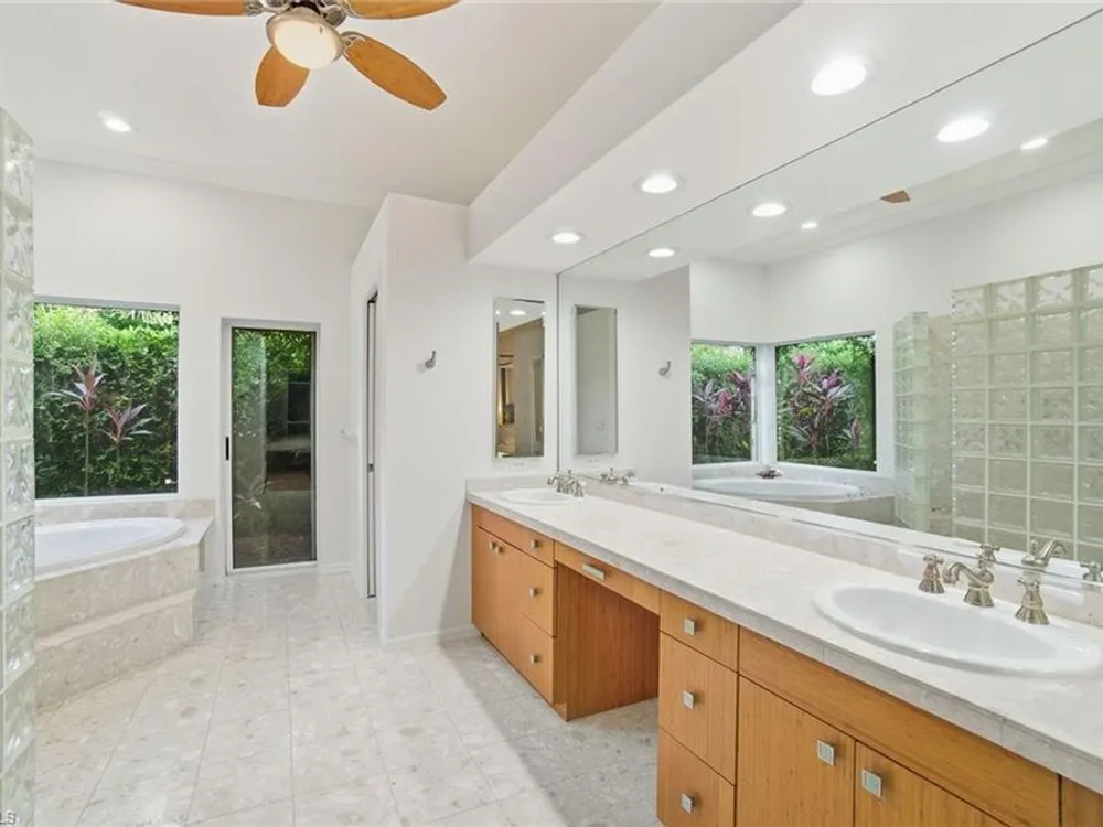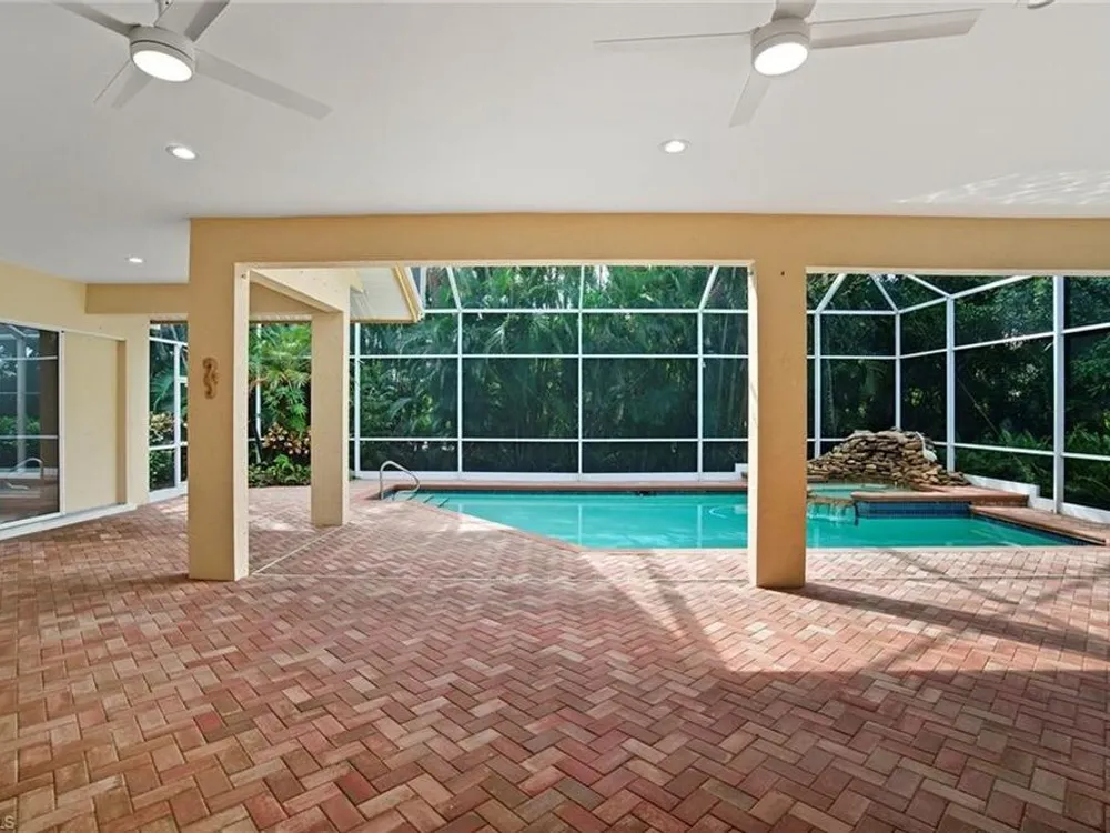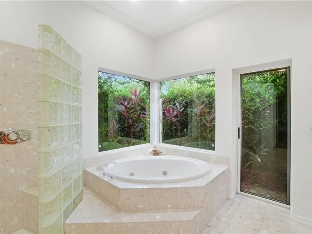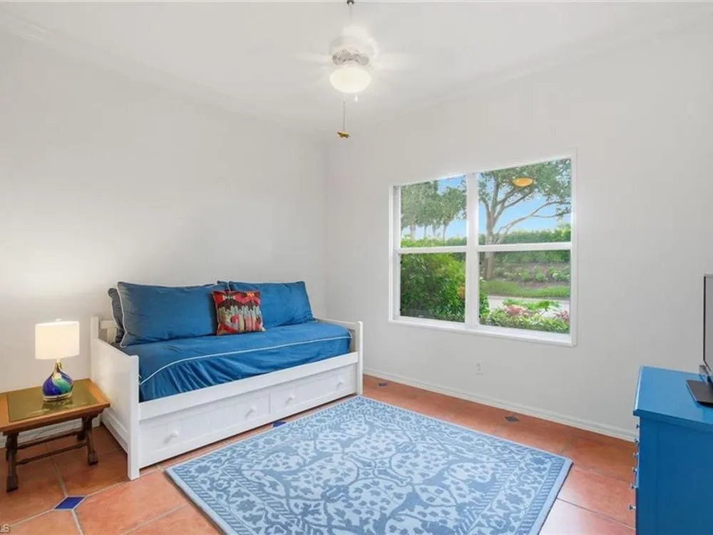 Welcome to this beautifully located single-family home tucked away on the corner of a quiet, peaceful street in the sought-after community of Pelican Landing. This three-bedroom, 2.5-bath residence offers a balance of comfort, style and privacy, surrounded by lush tropical landscaping. Go inside to discover an inviting open floor plan with abundant natural light, volume ceilings, and extra space to make this property your own. The kitchen features a large center island, granite countertops, built in wine bar and cooler, recessed lighting, walk-in pantry and views overlooking your serene private lanai—ideal for everyday living and entertaining. The spacious living and dining areas open seamlessly to a large, screened lanai, creating effortless indoor-outdoor flow ideal for relaxing or dining alfresco. The primary suite serves as a peaceful retreat with private lanai access, a walk-in closet, and a spa-inspired en-suite bath offering dual sinks, a soaking tub and a separate walk-in shower. Two comfortable guest bedrooms and a full guest bath provide ample space for visitors. Enjoy tranquil mornings and evenings from the large, south-facing screened lanai featuring a generous covered area, new ceilings fans, outdoor grill and a convenient pool bath. Additional highlights include a newer 2018 roof, updated HVAC, newly painted interior, a spacious two-car garage, and manicured landscaping that enhances the curb appeal. Residents of Pelican Landing enjoy an unmatched lifestyle with access to a private beach park on Big Hickory Island, a full-service marina, numerous tennis and pickleball courts, bocce, kayaking, a state of the art fitness center, and miles of scenic walking and biking trails—all within minutes of world-class dining and shopping. Experience a blend of elegance and Florida living here.