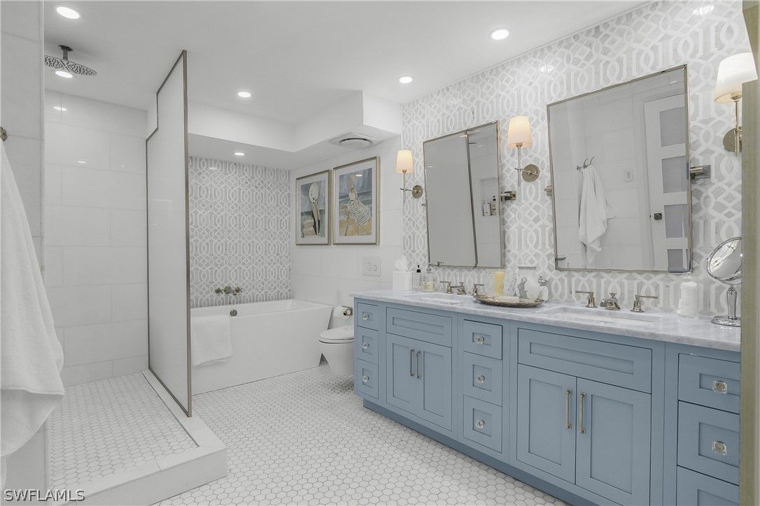 - Wet Bar, Breakfast Bar, Bathtub, Dual Sinks, Entrance Foyer, Kitchen Island, Living/Dining Room, Sitting Area In Primary Bedroom, Separate Shower, Cable TV, Walk-In Closet(s), Window Treatments
