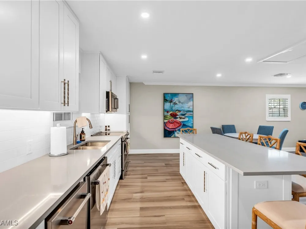 Unlock the ultimate coastal lifestyle at the stunning St. Croix Club, nestled along the Gulf of Mexico in the desirable Moorings neighborhood, and just steps from the vibrant shopping and dining options at Venetian Village. St. Croix Club is a low-density community, consisting of only 36 units amongst its 3 buildings and is ideally located just minutes from the newly constructed Four Seasons Hotel, as well as downtown's 5th Avenue and 3rd St. districts. This spacious 2 Bedroom, 2 Bathroom unit is offered furnished and is perfectly situated on the top floor with spectacular sunset views. Experience leisure like never before with a brand-new private pool, complete with a grilling pavilion, bathrooms, and rinse showers. Enjoy your own private access to the beach, mere steps from your door, as well as a newly remodeled club room and fitness area. This property also includes a private storage unit and one covered parking space, ensuring convenience and peace of mind. Whether you are in search of the perfect beach getaway or seeking a lucrative investment property, don't miss out on the chance to own a piece of paradise