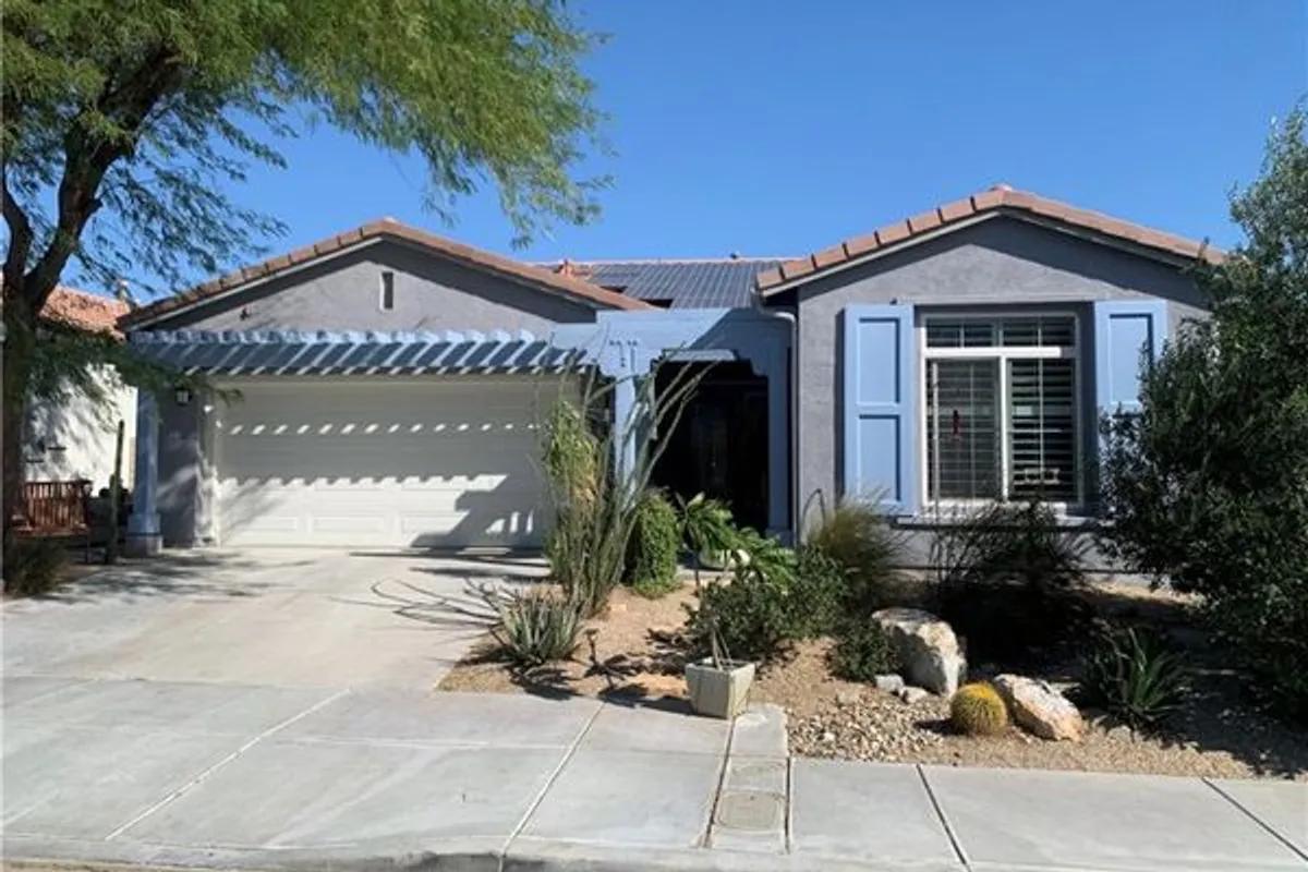 Welcome to Four Seasons- a friendly and vibrant 55+ community in Palm Springs with low dues and financially sound HOA. This updated 3-bedroom, 2-bathroom Palm 3 floor plan offers 2,102 square feet of interior space designed for comfort, ease, and enjoyment. This home is full of upgrades including oversized (20x20) floor tiles, custom white Plantation shutters, built-in entertainment center, newer carpet, and stainless-steel appliances. The large great room has a comfortable, open feel with a cozy fireplace in the living room, kitchen with center island and plenty of cabinet space, plus a separate dining area. The primary suite integrates a walk-in closet, dual vanities, soaking tub, and separate shower. You'll enjoy the convenience of the indoor laundry room complete with sink and the two-car garage for parking and extra storage. The house has been recently painted both inside and out. The Low HOA dues include Frontier's fiber optic internet service, multiple pools/spas, fitness center, tennis, pickleball, bocce, basketball, horseshoes, walking trails, a full-service lodge and always a packed social calendar. The solar panels are half-way through their 20-year lease.