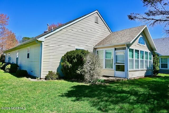 This is Lovely 2 Bed 2 Bath Bath Bonus and Sunroom Ashford Model Lake Ridge Community single family home w/sprinkler system. 2 Full baths, one has Walk in Shower. A beautiful landscaped community. You have direct door access to a 1 car garage pull down Attic. As you enter to right to your spacious laundry rm full of shelving. Your Foyer takes you right to a double door large closet are. This is a large Eat in Kit with Cabinet space. There is a Large Vaulted LR Open Concept DR for more space. This home has had many recent upgrades you don't want to miss. 2024 New garage door, New Blinds. 2023 Roof, vinyl FLs., Whirlpool fridge w/Water D, Newer Washer/Dryer, Gas Stove, lots of Shelving. 1 car clean garage with out of site pull down attic. You also have a Double French doors Bonus room, leading to large 3 season rm w/fan. 2 Large Bedrooms w Ext. Large primary walk in closet, walk in Shower. Many club house amenities for your HOA has year round heated indoor pool fitness center, ( great for the winter) outdoor pool, social HOA activities that can suite your needs for fun. Lawn/Snow HOA. This is a must see.