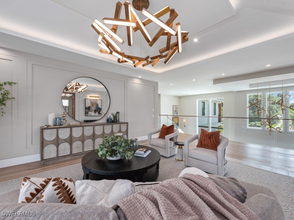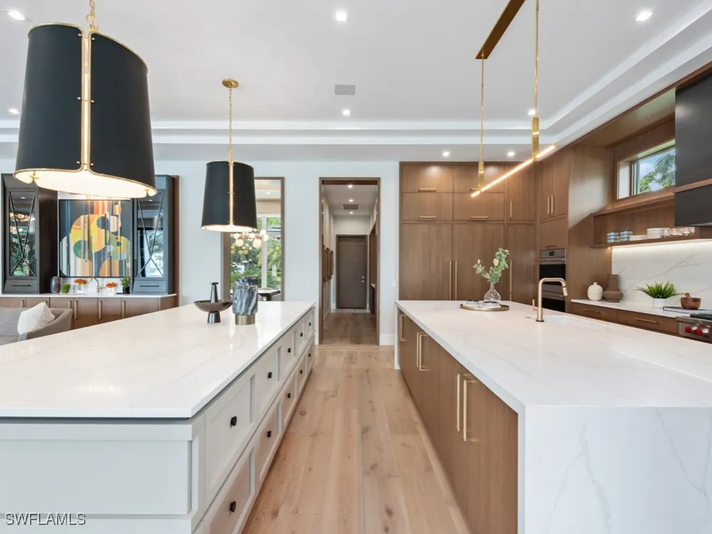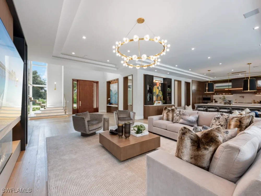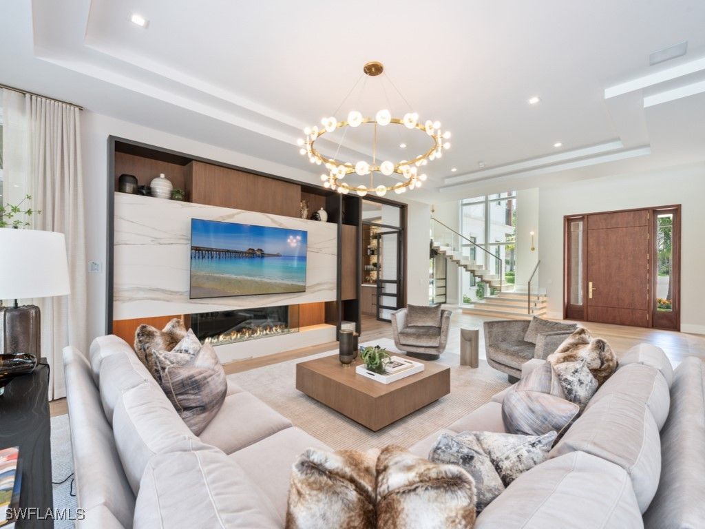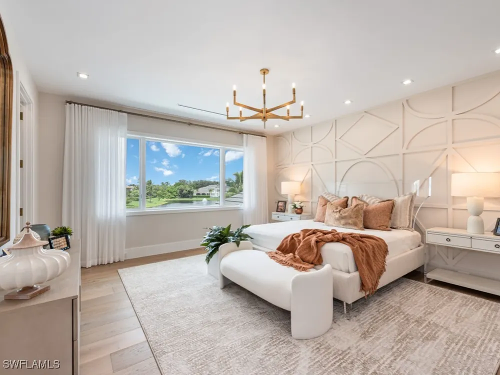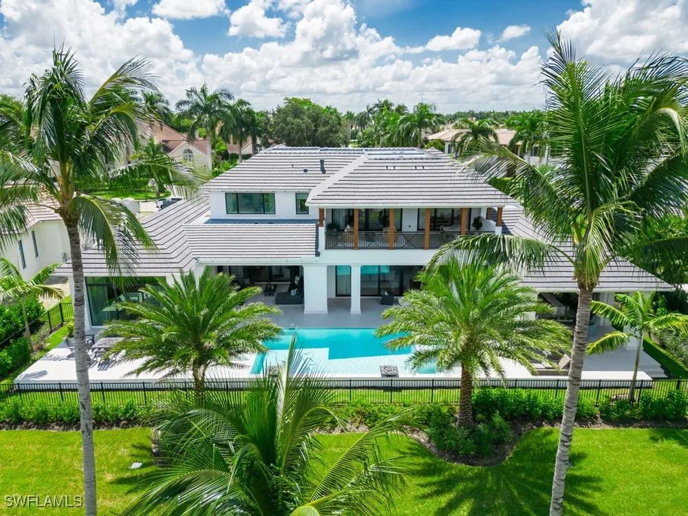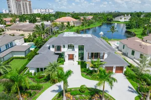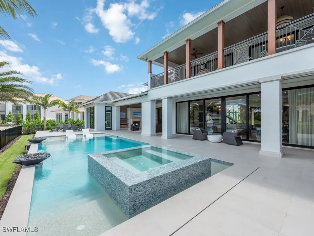 Bay Colony new construction! Introducing a magnificent estate by Stock Custom Homes situated on one of the most prime west-facing lakefront lots in Bay Colony Shores. Expertly designed by premier Naples architecture firm Stofft Cooney Architecture with acute attention to every timeless detail and feature. Comprising over 7,700 square feet of designer interior living space with five bedrooms, six full baths and two half baths masterfully transformed by renowned design firm Beasley & Henley Interior Design. Upgraded features include wide-plank wood flooring throughout, wine room, custom fireplace wall, an unparalleled open chef's kitchen including double island, quartz countertops, designer Sub-Zero refrigeration, Wolf 48-inch sealed six-burner range top, Wolf double wall oven, convection oven, warming drawer, home automation and lighting control. Saltwater pool with spa, sun shelf, fire/water bowls and a seating area with a fire pit. Enjoy the ultimate Naples lifestyle in Bay Colony.
