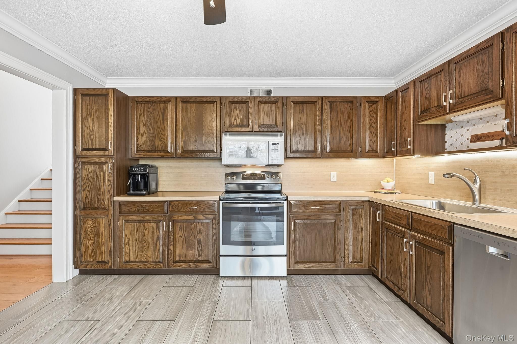 - Dishwasher, Disposal, Dryer, Electric Cooktop, Electric Range, Electric Water Heater, Microwave, Refrigerator, Washer