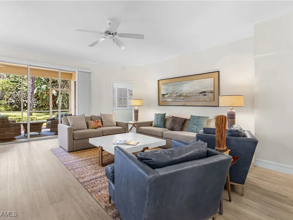 Rare End Unit Condo with Private Entrance & Stunning Conservation Views Welcome to this beautifully updated 2 bedroom, 2 bath condo with a spacious den in the highly coveted, amenity-rich community of Pelican Landing. Located in the desirable Southbridge neighborhood, this rare ground floor end unit offers a private side entrance, attached one-car garage, and serene conservation and water views from an expansive double lanai. Inside, the home has been thoughtfully upgraded for style and comfort. Features include new LVP flooring throughout, fresh interior paint, plantation shutters, crown moulding and complete bathroom remodels showcasing tasteful finishes. The property was also repiped with PEX plumbing in 2023 for peace of mind. The open layout highlights a full dining room, breakfast nook, and a bright living room with double sliders that fill the space with natural light. The primary suite is a true retreat, boasting a spacious walk-in closet, secured owner’s closet, double vanity, soaking tub, walk-in shower, and private water closet. The kitchen flows seamlessly into the family room, creating a perfect setting for everyday living and entertaining. Living here means enjoying maintenance free luxury living lawn care, most exterior maintenance, amenity upkeep, and water are all included in the HOA. Pelican Landing sets the standard for resort-style living with three 18 hole golf courses, 12 Har-Tru tennis courts, 6 pickleball courts, 2 bocce courts, a state of the art fitness center, marina with boat dock access, fishing piers, kayaking and canoeing, plus sailboat and kayak rentals. This Southbridge condo combines privacy, convenience, and an unmatched amenity lifestyle making this home an ideal choice for those seeking the best of Southwest Florida living.