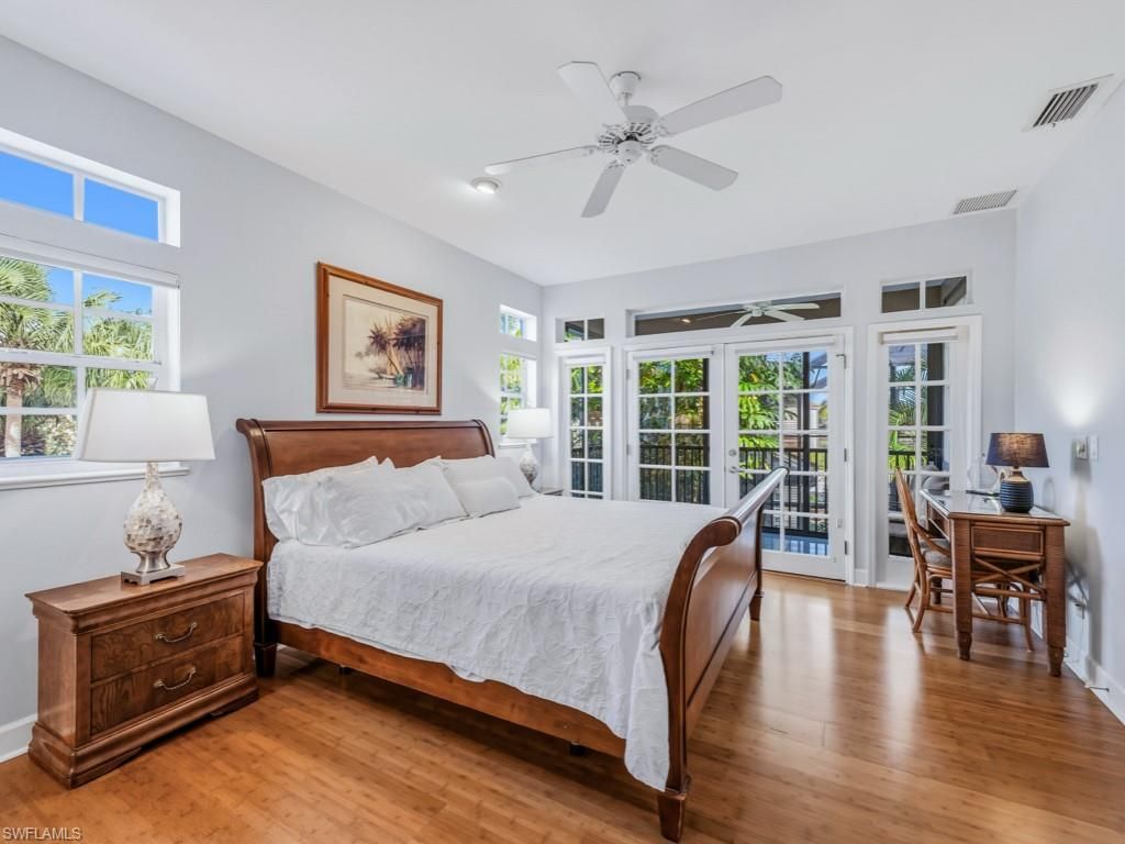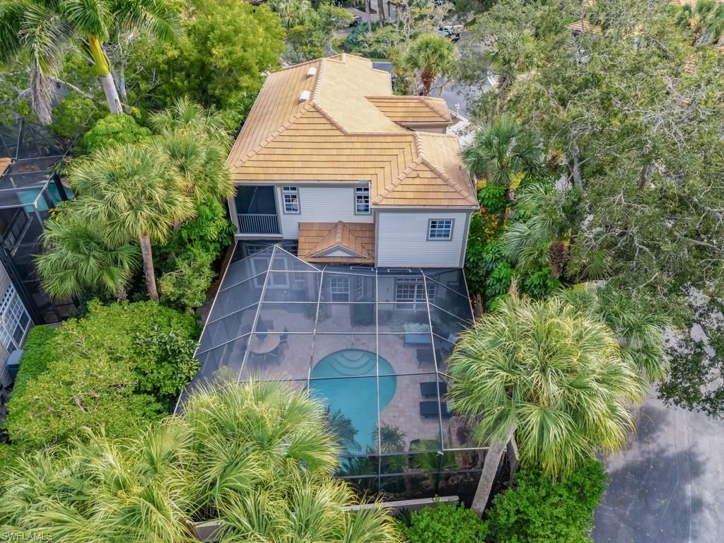 Discover a truly one-of-a-kind retreat nestled on a corner lot on a quiet cul-de-sac in Cranbrook at Bonita Bay. Wrapped in lush, mature landscaping, including 13 new Calusa bushes and 11 Areca palms, this residence feels like a private tropical sanctuary. Inside, bright natural light, soaring volume ceilings, and an open-concept layout create an inviting, airy environment. Designed for both relaxation and entertaining, the expansive screened lanai is a standout feature, offering a heated private pool and a custom rock waterfall with custom lighting. The 2-car air-conditioned garage adds everyday comfort and convenience. This two-story floor plan offers exceptional privacy with two primary suites, one on each level, each featuring dual vanities and walk-in showers. The upstairs suite takes indoor-outdoor living to the next level with a private glass-enclosed balcony where sliders open to screening for breezy evenings above the treetops. Wood flooring throughout the main living areas and freshly painted interiors enhance the home’s warm, welcoming feel. Additional upgrades include a new refrigerator, oven, and microwave, plus a new roof and A/C (2020) for added peace of mind. Offered furnished, this move-in ready home places you just seconds from Bonita Bay’s Riverwalk Park, complete with tennis, pickleball, bocce, basketball, and a launch point for kayaks and canoes, making it easy to embrace the active Southwest Florida lifestyle. As a resident of Bonita Bay, you’ll enjoy private access to a pristine beach park, the waterfront Backwater Jack’s Restaurant, and multiple community parks. Golf enthusiasts will appreciate the opportunity to join the Bonita Bay Club, featuring five championship golf courses, a sports and racquet center, resort-style pool, state-of-the-art fitness center, and a luxury spa and salon. A captivating blend of comfort, character, and privacy, this Cranbrook gem is truly something special.