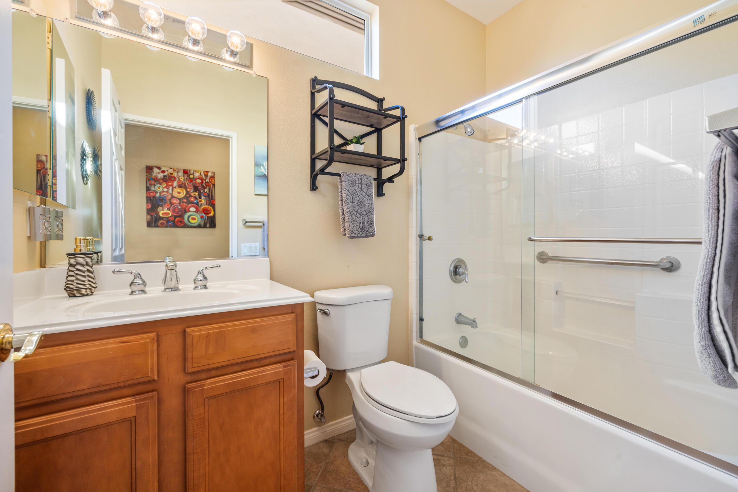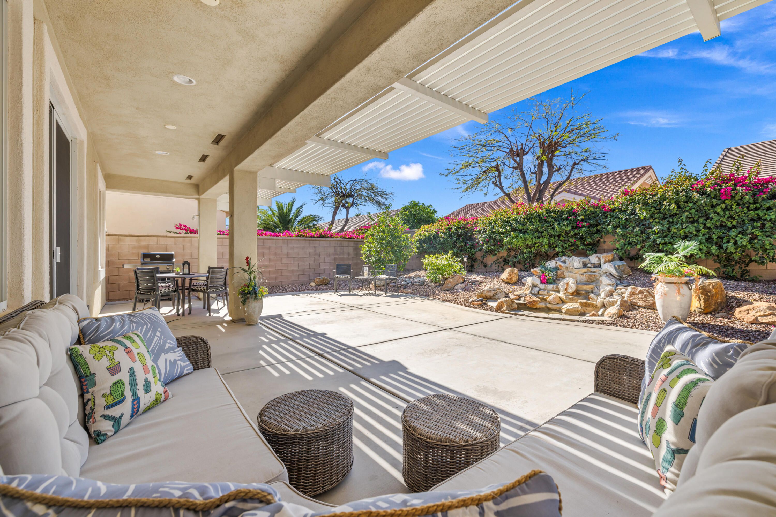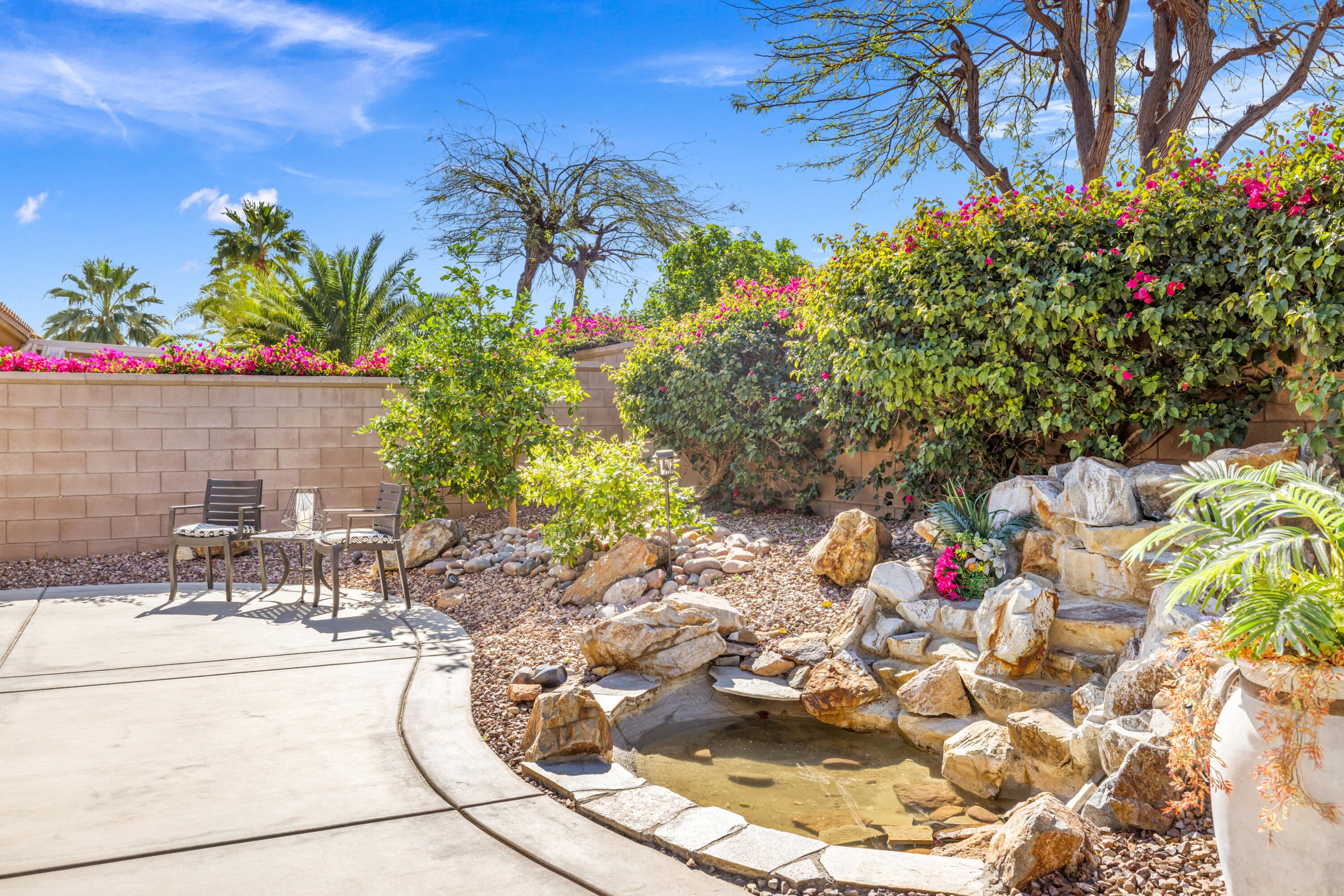 Welcome to 55+ Sun City Palm Desert--Montego model with attached casita--The ''Best Bang for your Buck'' active lifestyle retirement community in the whole Coachella Valley! Experience premier desert living in this rarely available immaculate 3-bedroom, 3-bath home with private casita nestled in an ideal location in the heart of the community. This home offers a perfect blend of privacy and access to world-class amenities. Beautiful curb appeal with mature colorful desert landscaping, gated front courtyard, lovely tranquil water feature and perfect for enjoying your morning coffee. Inside, the spacious kitchen features granite counters, gas cooktop, black and stainless appliances, maple cabinets. Cozy breakfast nook, breakfast bar, and dining area all with views to the courtyard. The kitchen, living room and dining room look out to the expansive backyard which creates an extra bright space, ceiling fans and upgraded lights. The living room has an entertainment center with space for a large TV. The luxurious master bedroom suite offers a quiet retreat and is extended with direct access to the backyard. The bath has cultured marble counters, double vanity, and a large walk-in closet with custom organizing system. On the opposite side of the home you will find the two guest bedrooms and shared guest bath, providing excellent separation and privacy. The casita provides the ultimate flexibilbity for guests, a home office,or hobby room featuring its own private entrance and full bathroom. It has king sized bed, microwave, TV, small fridge/freezer, toaster and ceiling fan.The laundry room is inside and includes stack washer, dryer, and cabinets while the two-car garage is extended with storage cabinets and epoxy paint on the floor. Step outside to a private yard, covered patio, expanded areas for entertaining, colorful landscaping, orange, and tangelo fruit tress, and a beautiful soothing rock waterfall feature providing an atmosphere perfect for relaxing and entertaining your family and friends. Sun City offers an incredible lifestyle with 80+ special interest clubs, post office, (2) 18 hole golf courses, 18 hole putting course, (2) restaurants, (2) fitness clubs, softball, tennis and pickleball and lots more! This home is impeccably maintained and truly move-in ready. ''Buy Where you Love to Play..Sun City Palm Desert.'