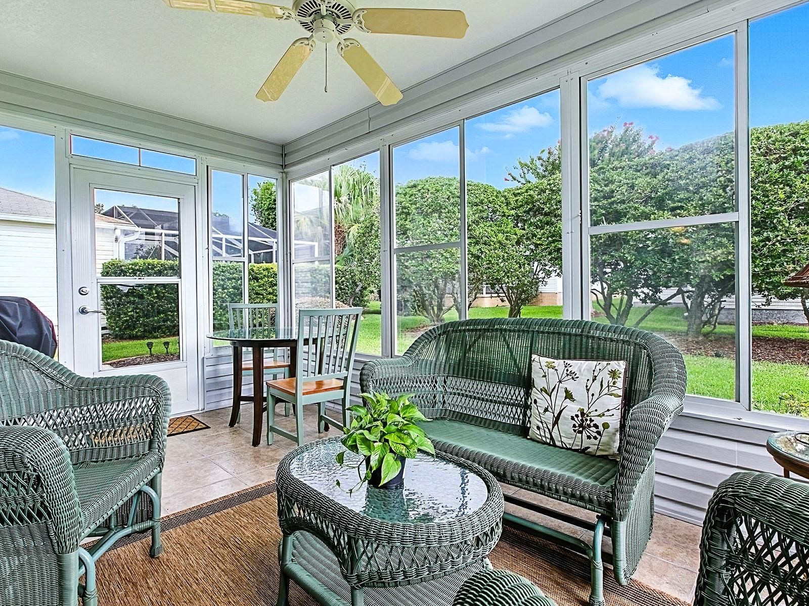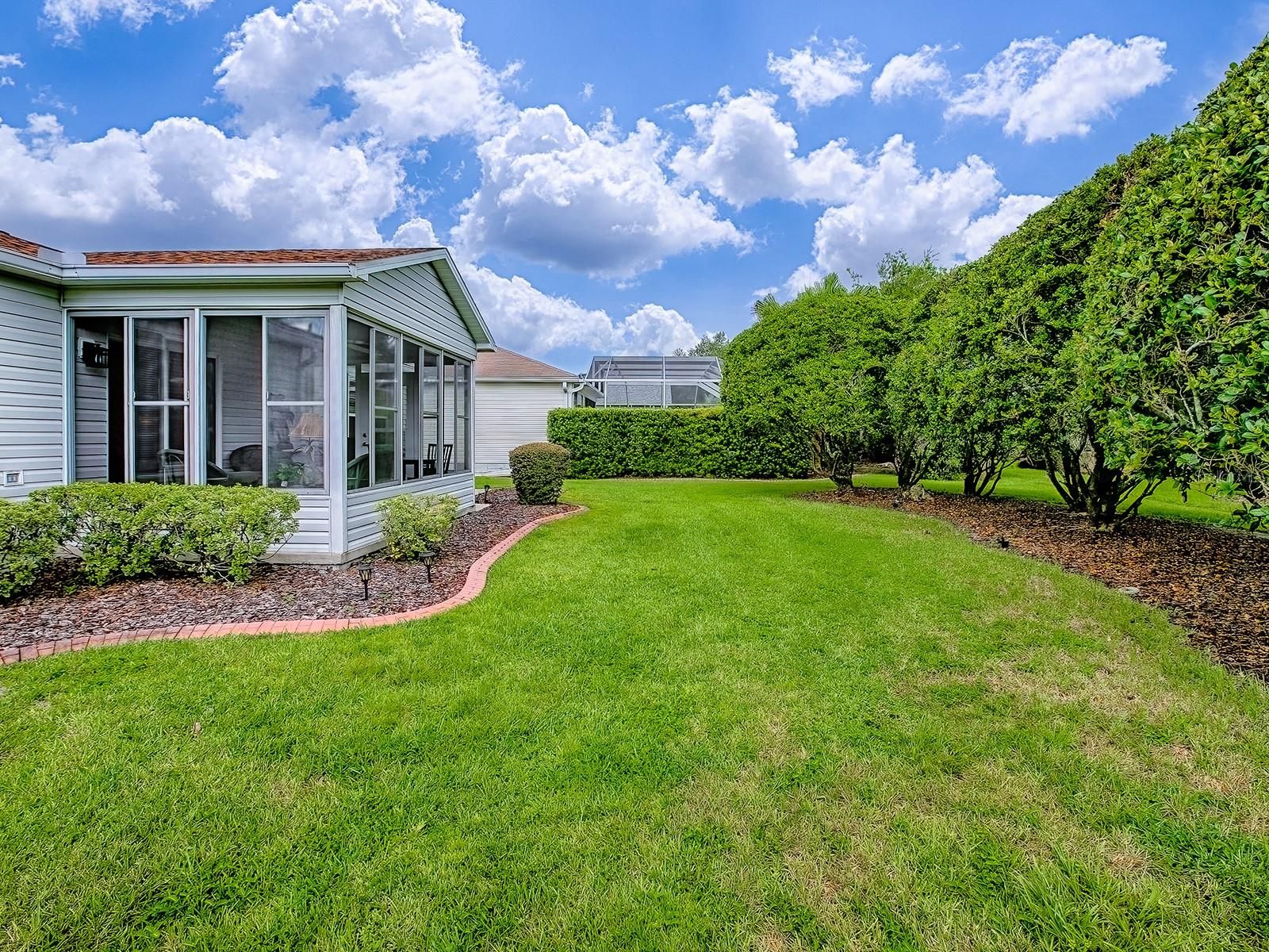 BOND PAID! ROOM FOR A POOL! This Meticulously Maintained 3/2 Ranch Home offers incredible value at an unbeatable price! Lovely Curb Appeal -Decorative Driveway & Walkway, well Groomed Yard with Privacy Landscaping in the back. Walk through the Designer Glass Front Door to an inviting OPEN FLOOR PLAN that is Light & Bright with 4 Solar Tubes! Vinyl Plank flooring throughout the home except in the glass enclosed lanai which has Ceramic Tile. The Kitchen has updated Appliances with a Gas Range, Stone Countertops with Complementary Backsplash, & a Closet Pantry. Spacious Primary Ensuite Bedroom has enough room for your king-size furnishings and a walk-in closet. The Guest Bedrooms are on the opposite side of the home with a guest bath between perfect for family &/or friends. The third bedroom has no closet and is sometimes used as a den or office. The Village of Belle Aire is a Prime Location near Sumter Landing & Spanish Springs, Polo Matches, & Recreational Centers. There are Plenty of options for golf, tennis, & pools. To the South, the Glenview Champions Golf & Country Club offers fine dining, 27 holes of championship golf and a fabulous tennis facility. A short golf cart ride to the North is the Nancy Lopez Legacy Country Club, featuring fine dining inside, tennis courts and an outdoor pool bar. THIS HOME IS GREAT FOR SNOWBIRDS, FULL TIMERS AND/OR GREAT RENTAL/INCOME POTENTIAL! ROOF - 4 YRS NEW, HVAC 2014
