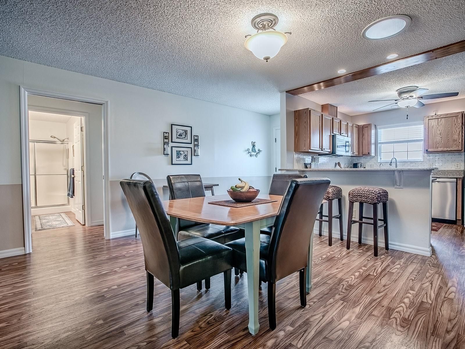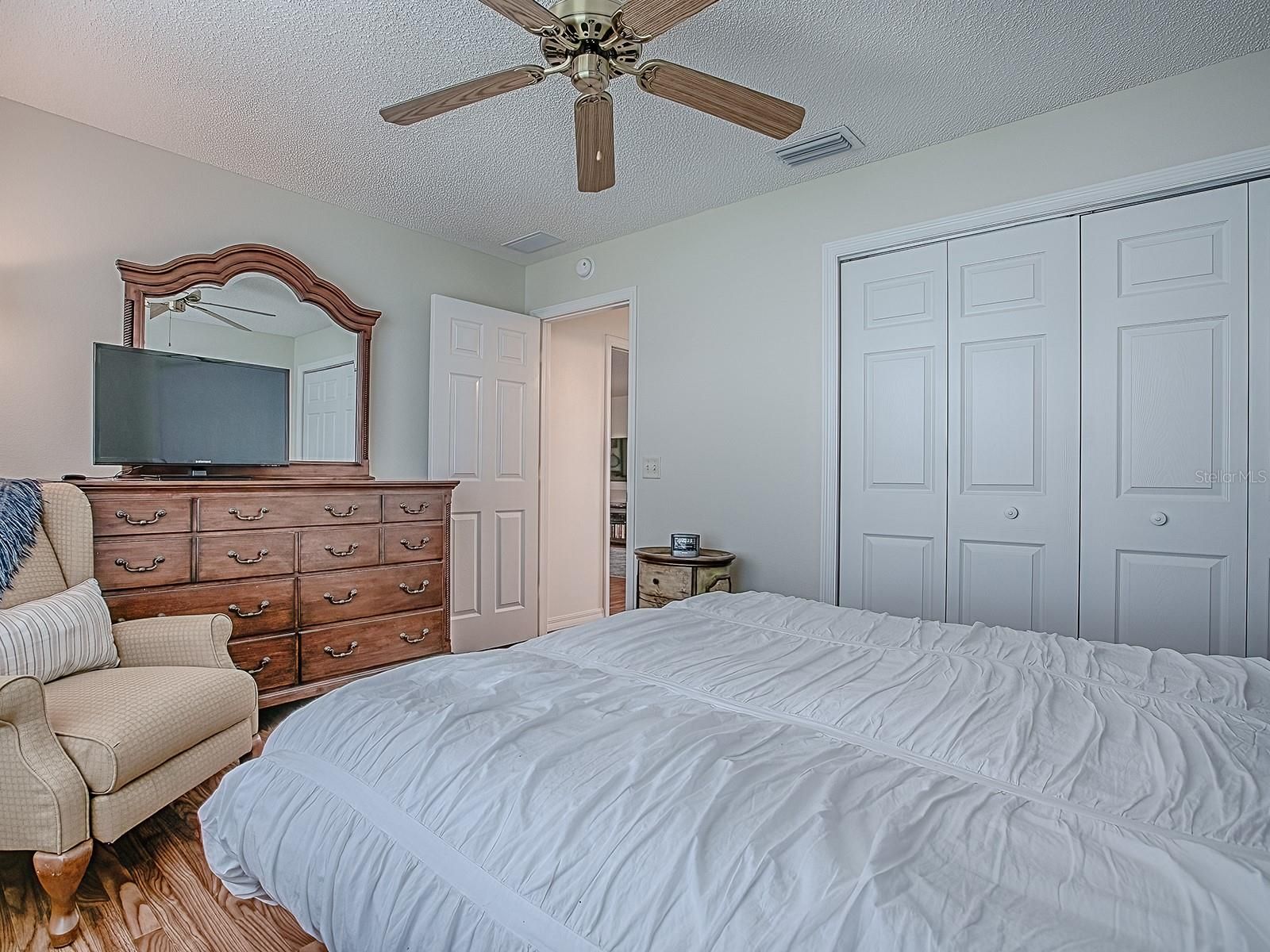 - Ceiling Fan(s), Living/Dining Room, Open Floorplan, Main Level Primary, Split Bedrooms, Stone Counters, Thermostat, Walk-In Closet(s)