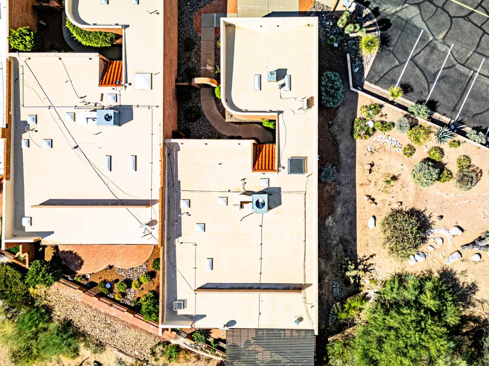 Elevated Corner-Lot Townhome with Mountain Views & High-End Upgrades! Welcome to this beautifully remodeled 2-bedroom, 2-bathroom townhome with a spacious den and a bonus 200+ sqft enclosed Arizona/sunroom. Perfectly positioned on a private elevated corner lot with no neighbors behind, this home offers stunning mountain views and exceptional indoor-outdoor living. Step inside to find an open, light-filled floor plan with tile and luxury vinyl plank flooring--no carpet anywhere! The inviting living area flows into a beautifully redone kitchen featuring quartz countertops, gray cabinetry with pull-outs, and newer stainless steel appliances. Retreat to the generous primary suite, complete with a massive closet with built-in shelving, and a fully remodeled bathroom with brand-new shower