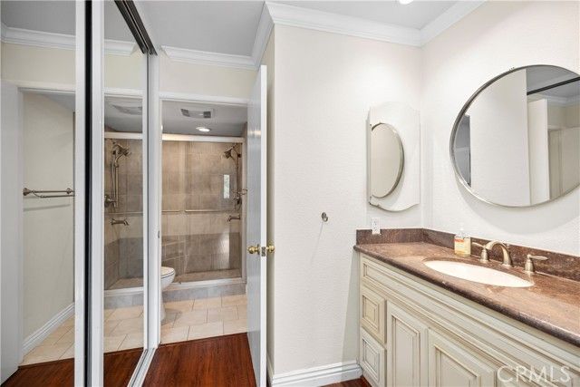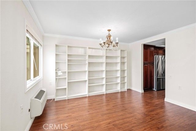 MOVE RIGHT IN TO THIS WONDERFUL REMODELED HOME WITH AN EXPANSIVE GREENBELT VIEW FROM THE LIVING AND DINING ROOM—walking distance to Clubhouse 5. GREAT LOCATION! This Popular “VILLA NUEVA” model, 1 BEDROOM, 1.5 BATHS, and NO STAIRS (elevator building), private entry, and features a wide-open living and dining area, enhanced by crown molding, recessed lighting, smooth ceilings, laminate wood floors, and an entire wall of built-in shelving. A large sliding door leads to a covered balcony overlooking expansive park-like lawns and mature trees…a perfect spot for morning coffee and evening breezes! The remodeled kitchen impresses with rich custom cabinetry, granite countertops, a full-height tile backsplash, a crown-lit ceiling, and stainless-steel appliances, including a French-door refrigerator and dishwasher—providing excellent storage and prep space for the cook. The generous bedroom suite features multiple closets and a dressing area with a mirrored wardrobe and vanity. The primary bath features an oversized tiled walk-in shower with a seat, while the second bath serves as an elegant powder room for guests. Additional highlights include dual-pane windows and a slider, upgraded lighting, and a calm, neutral palette throughout. Convenient carport and guest parking. MUST SEE! Add all this to the amenities offered by Laguna Woods Village. You have a winning combination—a 27-hole championship golf course or 9-hole executive par-3, tennis, paddle/ pickleball, lawn bowling, two fitness centers, seven clubhouses, five pools, an equestrian center, gardening areas, an art studio, a world-class woodshop, and 200+ clubs and organizations. Additionally, enjoy free bus transportation throughout the community and to nearby shopping areas, as well as an economical RV storage facility. Country Club living at its BEST, approximately 6 miles from beautiful Laguna Beach! SEE 3D Tour Carport 3151 Space 6 SEE 3D TOUR