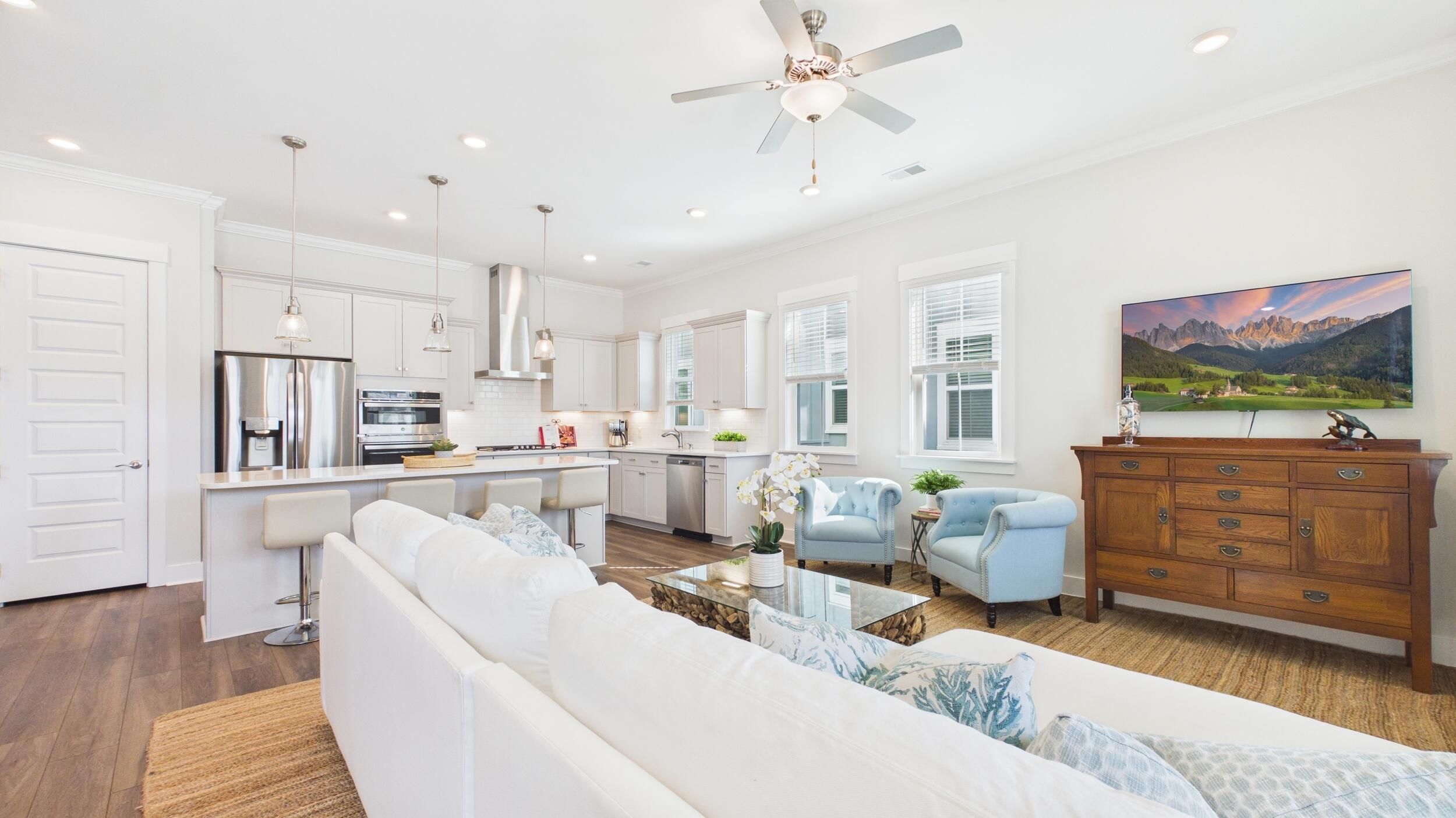 - Smooth Ceilings, Tray Ceiling(s), High Ceilings, Kitchen Island, Walk-In Closet(s), Ceiling Fan(s), Eat-in Kitchen, Great Room, Living/Dining Room, Pantry