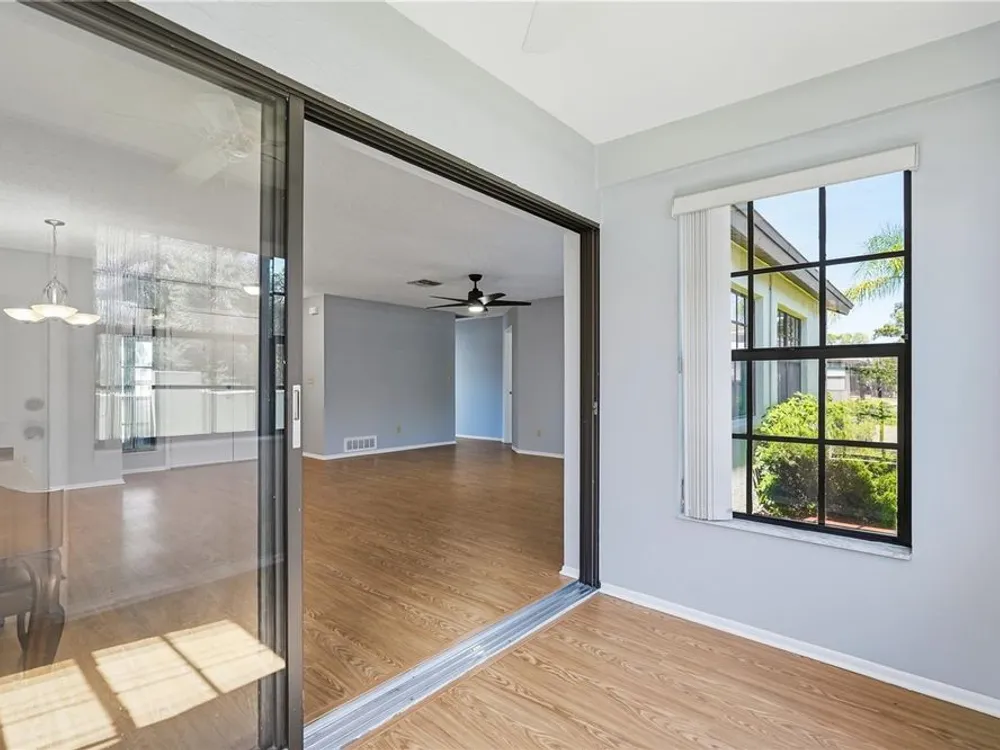One or more photo(s) has been virtually staged. Welcome to this beautifully updated 2-bedroom, 2-bathroom villa located in the highly desirable 55+ community of Highland Lakes in Palm Harbor! This charming residence combines modern upgrades with low-maintenance living, offering both comfort and style. Highlights include a newer roof (2017), water heater (2020), and appliances (2021). The oversized attached one-car garage offers ample storage space. Step through the inviting foyer, with a convenient coat closet, into a spacious open-concept living and dining area featuring wood-look laminate flooring and plantation shutters throughout. The updated kitchen is light and bright, showcasing shaker cabinets, granite countertops, subway tile backsplash with under-cabinet lighting, matching appliances, and an updated light fixture. A separate pantry adds extra storage and convenience. The primary suite includes a large walk-in closet and a private ensuite bath with a walk-in shower. The remodeled guest bath features a new vanity, sink, and toilet, and the guest bedroom also offers its own generous walk-in closet. A bright sunroom at the back of the home provides the perfect spot to relax and enjoy the Florida sunshine year-round. Enjoy resort-style living in this ACTIVE 55+ community, which offers 3 executive golf courses, boat/RV storage, heated pools, tennis and pickleball courts, and a vibrant social calendar. Conveniently located near top dining, shopping, and beautiful Gulf beaches, this home is move-in ready and waiting for you! Don’t miss your opportunity to experience the best of Palm Harbor living. Schedule your showing today!