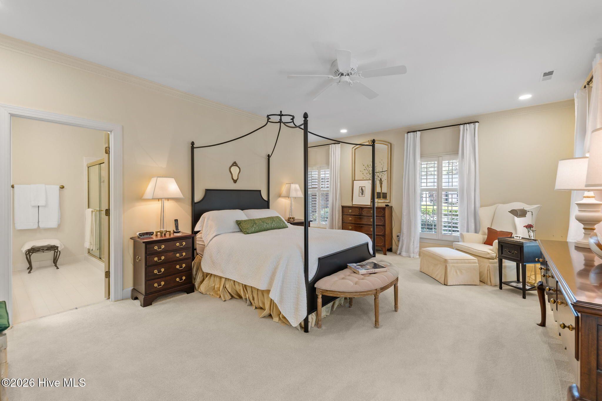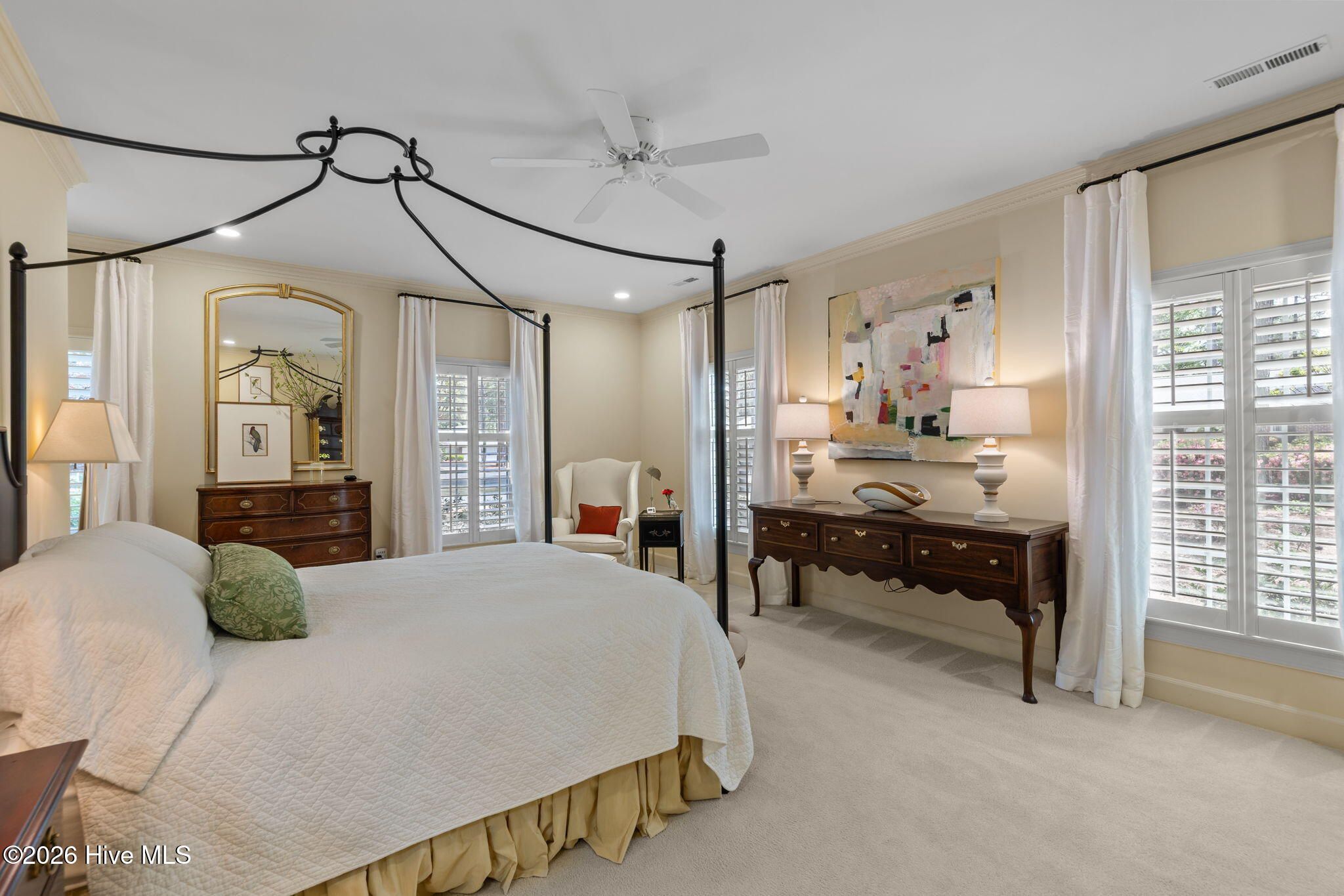 - Master Downstairs, Walk-In Closet(s), High Ceilings, Entrance Foyer, Generator, Bookcases, Ceiling Fan(s), Pantry, Blinds, Built-in Features, Eat-in Kitchen