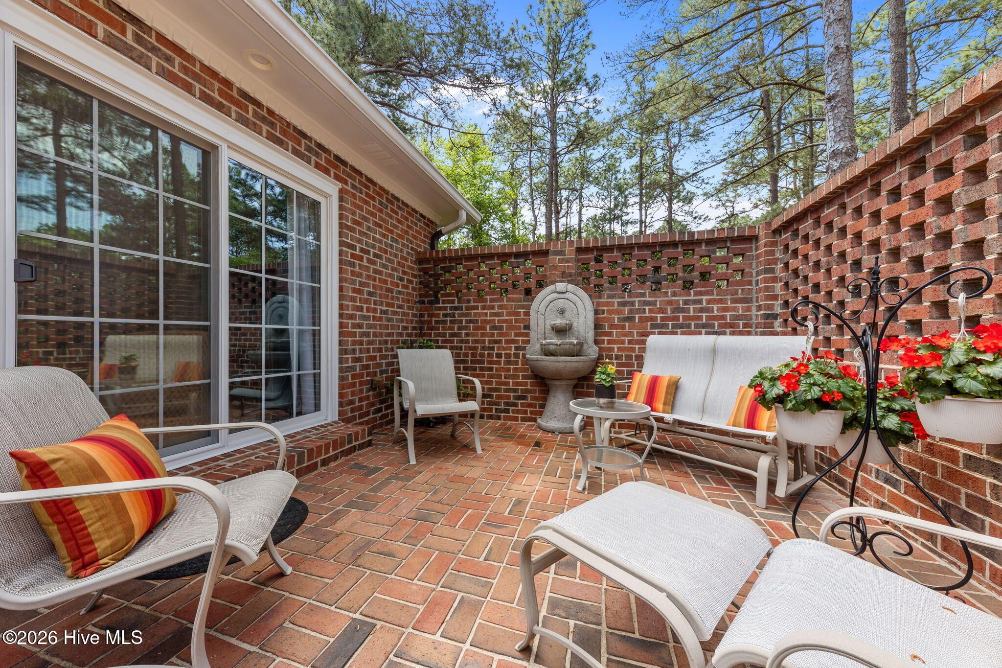 The ease you've been waiting for and the peace of mind you deserve--this beautifully maintained detached townhome in the desirable Middleton Place community offers comfortable, single-level living in an ideal Southern Pines location. Tucked on a quiet cul-de-sac and just minutes from downtown, shopping, dining, top notch medical facilities, and Reservoir Park, everything you need is close at hand--making day-to-day life simple, safe, and enjoyable. Designed with accessibility and comfort in mind, this zero-entry home features a spacious primary suite with custom closet, comfort-height fixtures, and an easy to enter shower with bench seating. A second full bath with tub/shower combination provides flexibility for guests. Bright, open living spaces are complemented by smooth ceilings, recessed lighting, and gorgeous millwork. Recent updates offer true peace of mind, including all new windows and sliding doors (2022), a new AC compressor (2024), and a whole-home natural gas generator. Hunter Douglas blinds and a blend of hardwood, tile, and quality carpet create a clean, move-in ready environment. The kitchen is thoughtfully equipped with updated appliances, including a Bosch dishwasher, GE Monogram refrigerator (2023), drawer microwave, and new Whirlpool range (2026). A laundry room with sink and included washer and dryer adds everyday convenience. Step outside to an expanded patio with garden beds, natural gas grill hookup, and a tranquil fountain--perfect for quiet mornings or easy entertaining. Additional features include a heated/cooled office off the garage, generous storage, gutter guards, and a security system. A home that supports both independence and simplicity--ready for its next owner to enjoy with confidence.