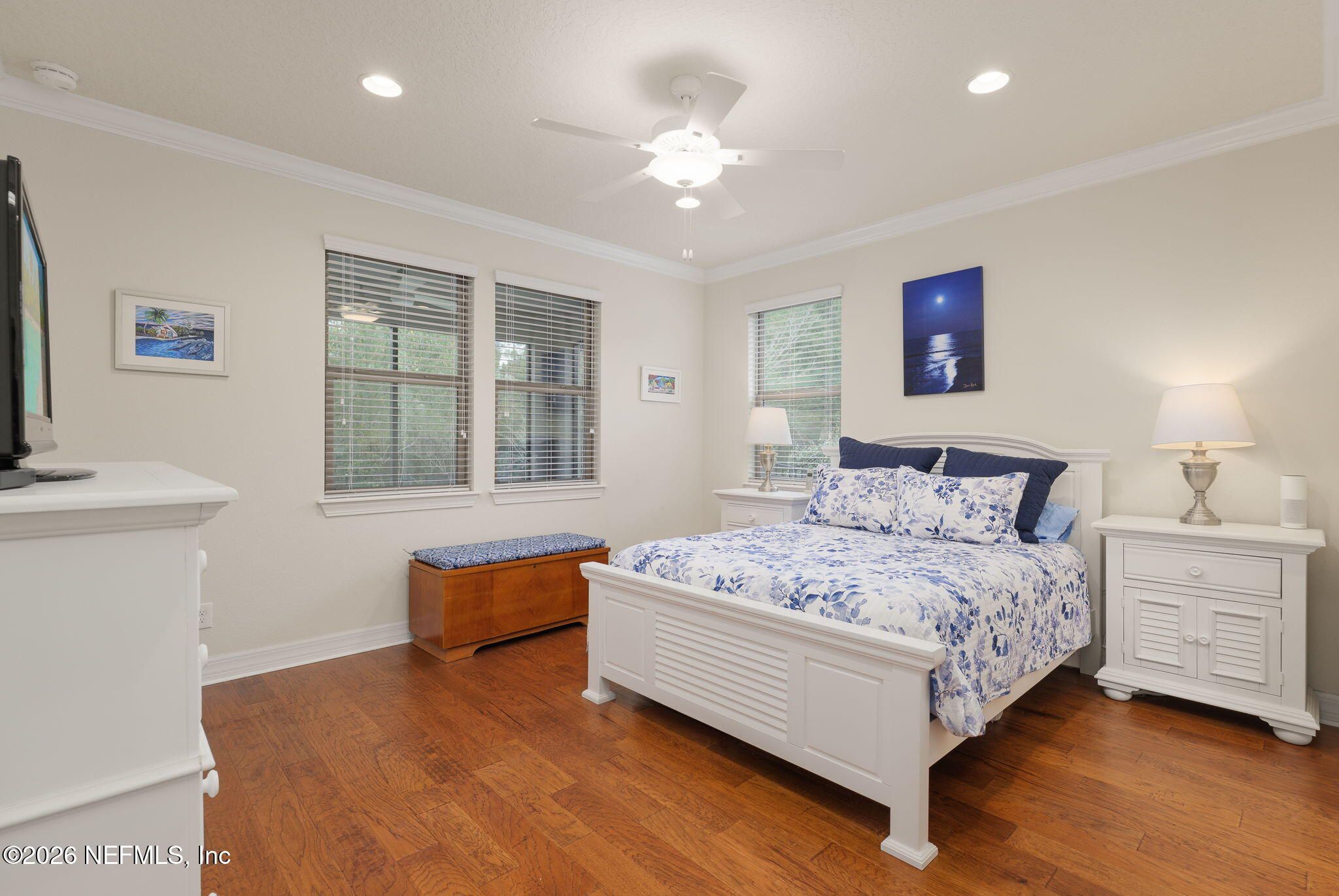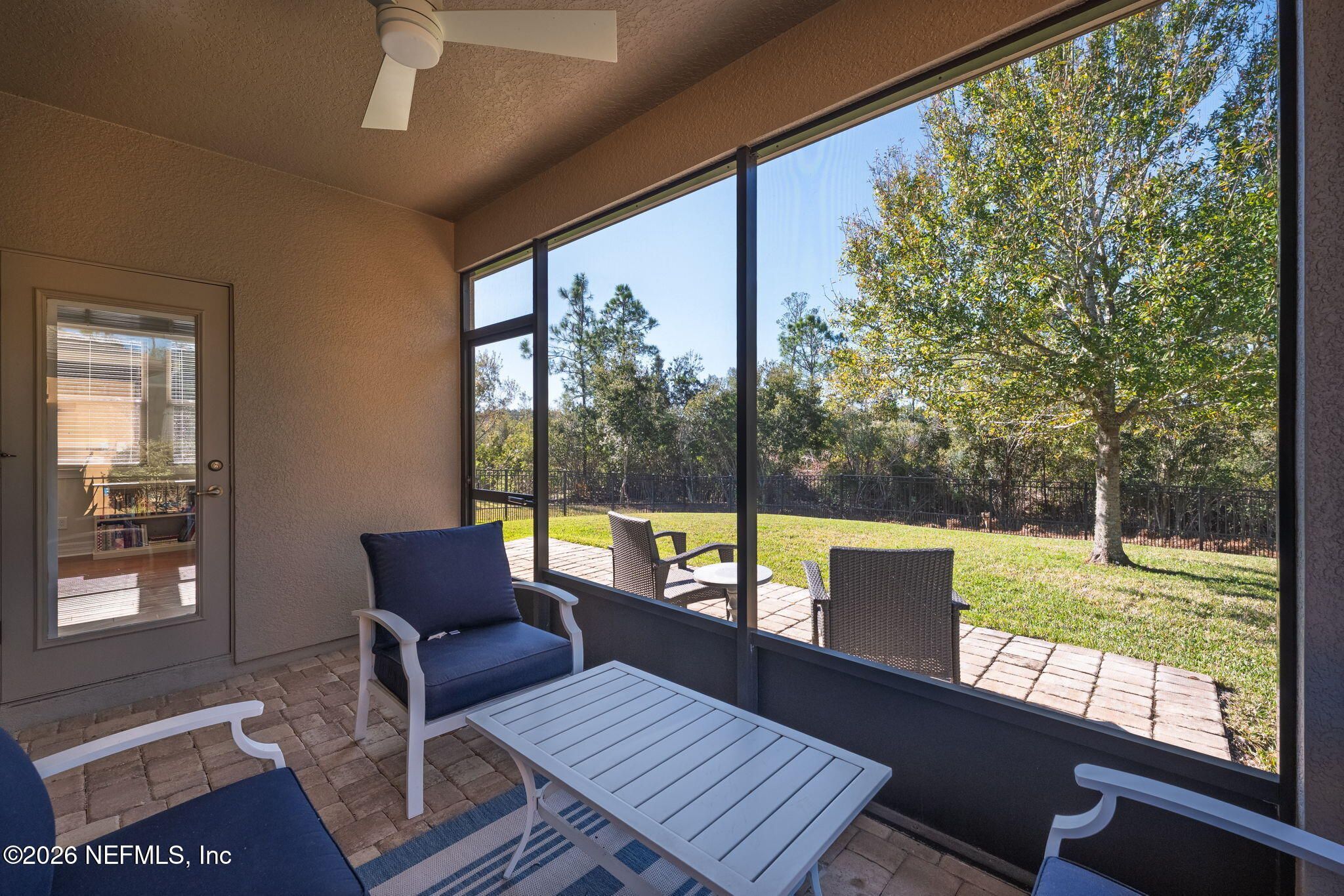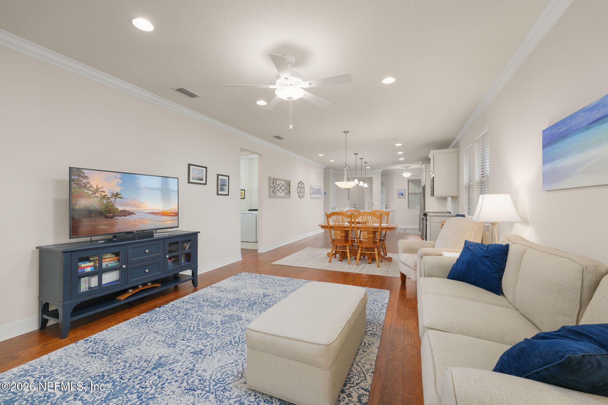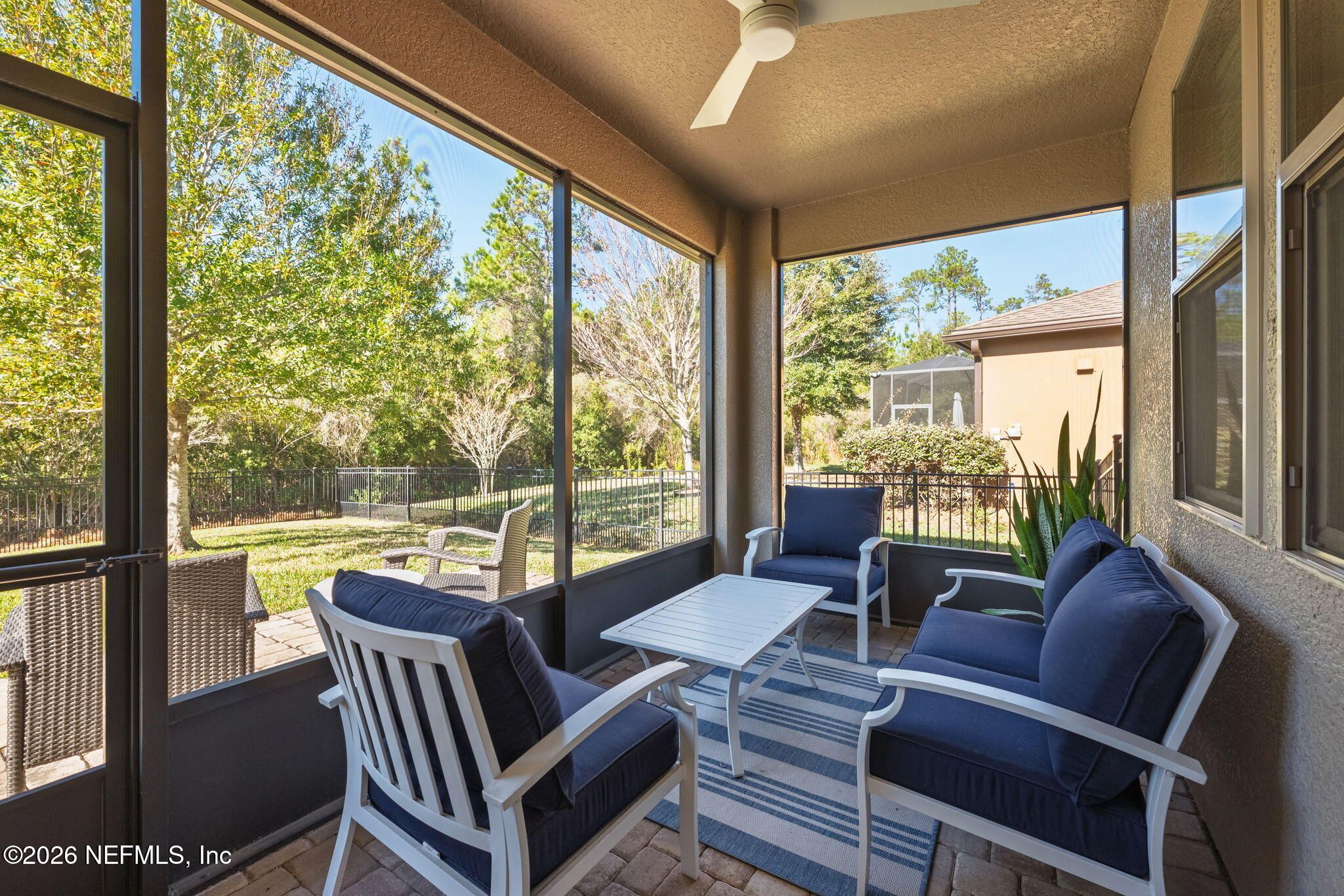 Welcome home to this beautifully appointed residence located in the sought-after Del Webb Ponte Vedra, a premier 55+ community offering exceptional resort-style amenities and activities for every interest. Perfectly positioned on a premium preserve lot, this home offers privacy and tranquility with a fully fenced backyard, extended paver patio, and a fully screened lanai, making it ideal for relaxing or entertaining while enjoying peaceful natural views. Built in 2017, this thoughtfully designed home showcases today's most desirable finishes, including a bright, open kitchen featuring crisp white cabinetry, granite countertops, an expansive center island, and stainless steel appliances, perfect for both everyday living and hosting guests. Gorgeous hardwood floors flow throughout the entire home with no carpet, adding warmth, continuity, and timeless elegance. The private owner's suite provides a serene retreat and features a spa-inspired ensuite bath with a glass walk-in shower- A separate guest suite with its own full bath offers comfort and privacy for visitors, making this home ideal for hosting family and friends. The additional living areas are spacious and inviting, offering comfort, functionality, and flexibility to suit a variety of lifestyles. Enjoy an active, maintenance-free lifestyle with access to world-class amenities including resort-style pools, a state-of-the-art fitness center, tennis and pickleball courts, social clubs, and a full calendar of events, all conveniently located near beaches, shopping, and dining. This exceptional home offers the perfect blend of luxury, privacy, and vibrant community living and is truly a must-see.