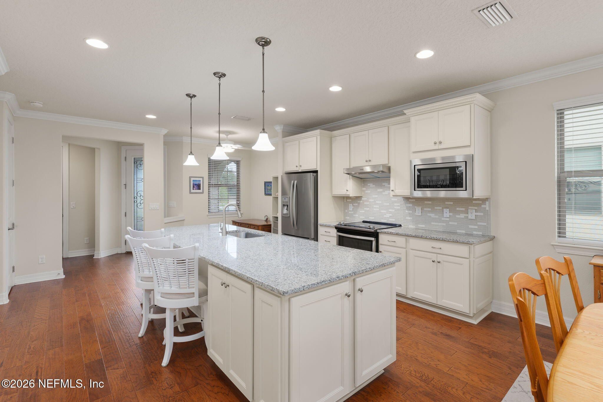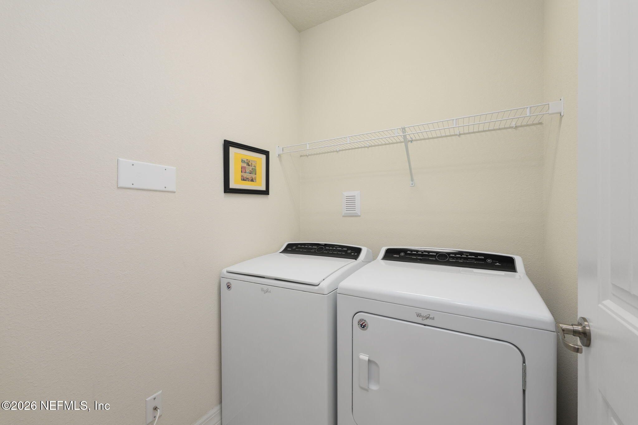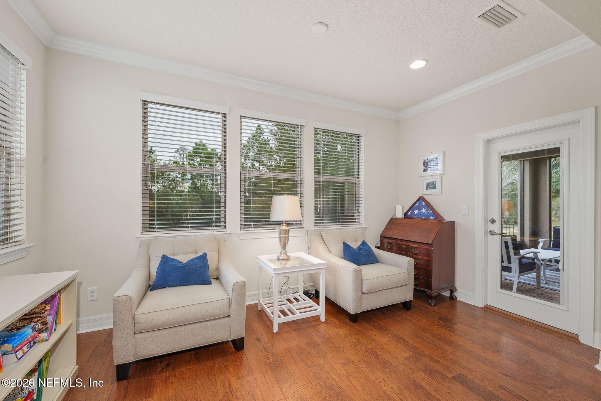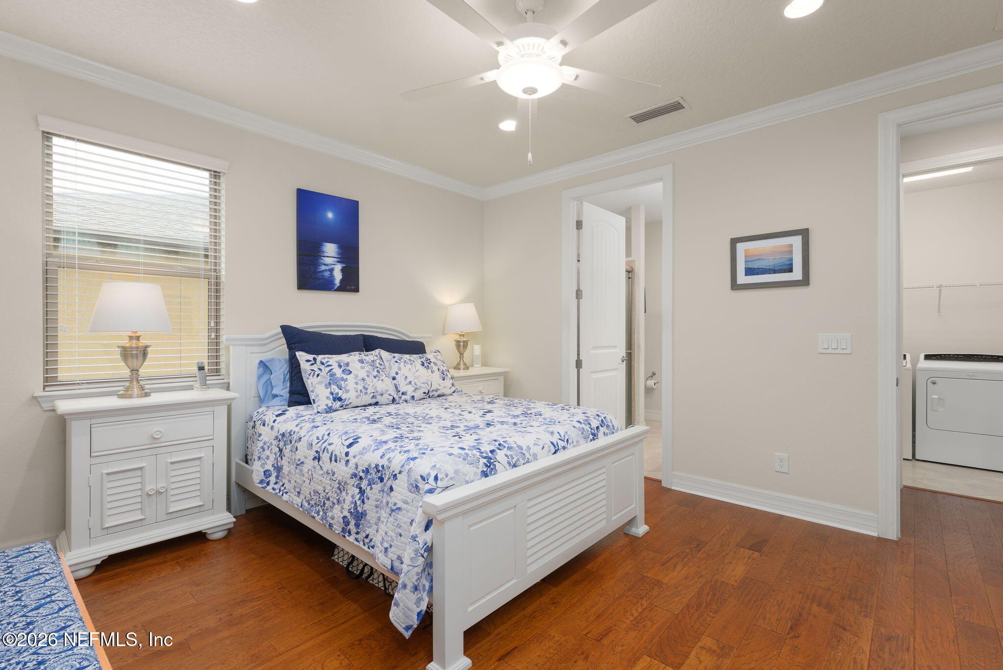 Welcome home to this beautifully appointed residence located in the sought-after Del Webb Ponte Vedra, a premier 55+ community offering exceptional resort-style amenities and activities for every interest. Perfectly positioned on a premium preserve lot, this home offers privacy and tranquility with a fully fenced backyard, extended paver patio, and a fully screened lanai, making it ideal for relaxing or entertaining while enjoying peaceful natural views. Built in 2017, this thoughtfully designed home showcases today's most desirable finishes, including a bright, open kitchen featuring crisp white cabinetry, granite countertops, an expansive center island, and stainless steel appliances, perfect for both everyday living and hosting guests. Gorgeous hardwood floors flow throughout the entire home with no carpet, adding warmth, continuity, and timeless elegance. The private owner's suite provides a serene retreat and features a spa-inspired ensuite bath with a glass walk-in shower- A separate guest suite with its own full bath offers comfort and privacy for visitors, making this home ideal for hosting family and friends. The additional living areas are spacious and inviting, offering comfort, functionality, and flexibility to suit a variety of lifestyles. Enjoy an active, maintenance-free lifestyle with access to world-class amenities including resort-style pools, a state-of-the-art fitness center, tennis and pickleball courts, social clubs, and a full calendar of events, all conveniently located near beaches, shopping, and dining. This exceptional home offers the perfect blend of luxury, privacy, and vibrant community living and is truly a must-see.