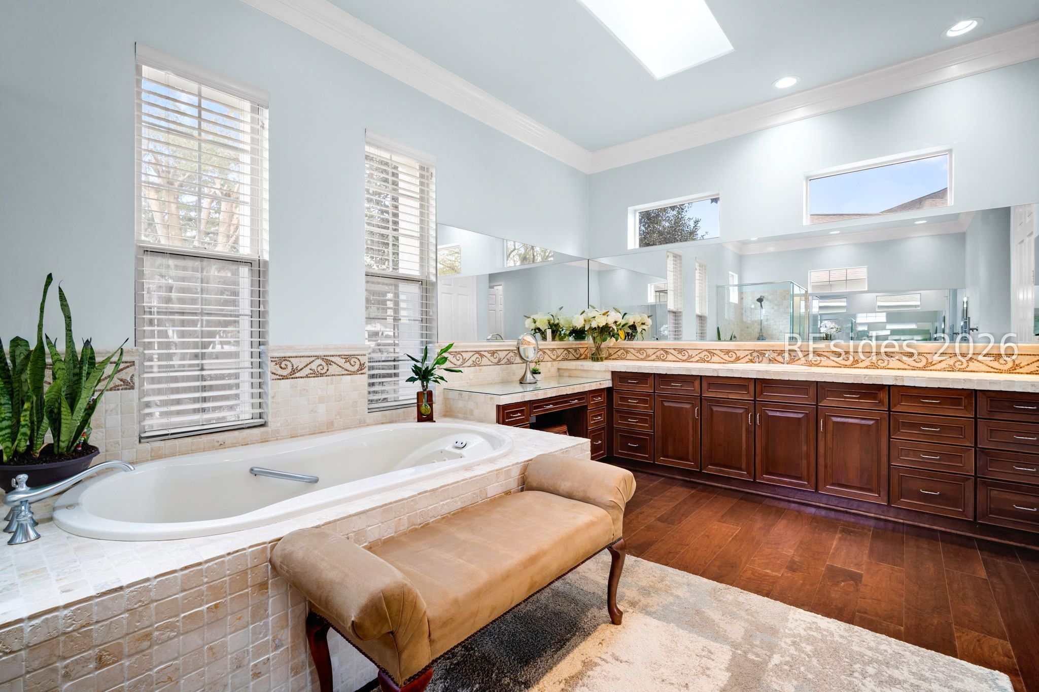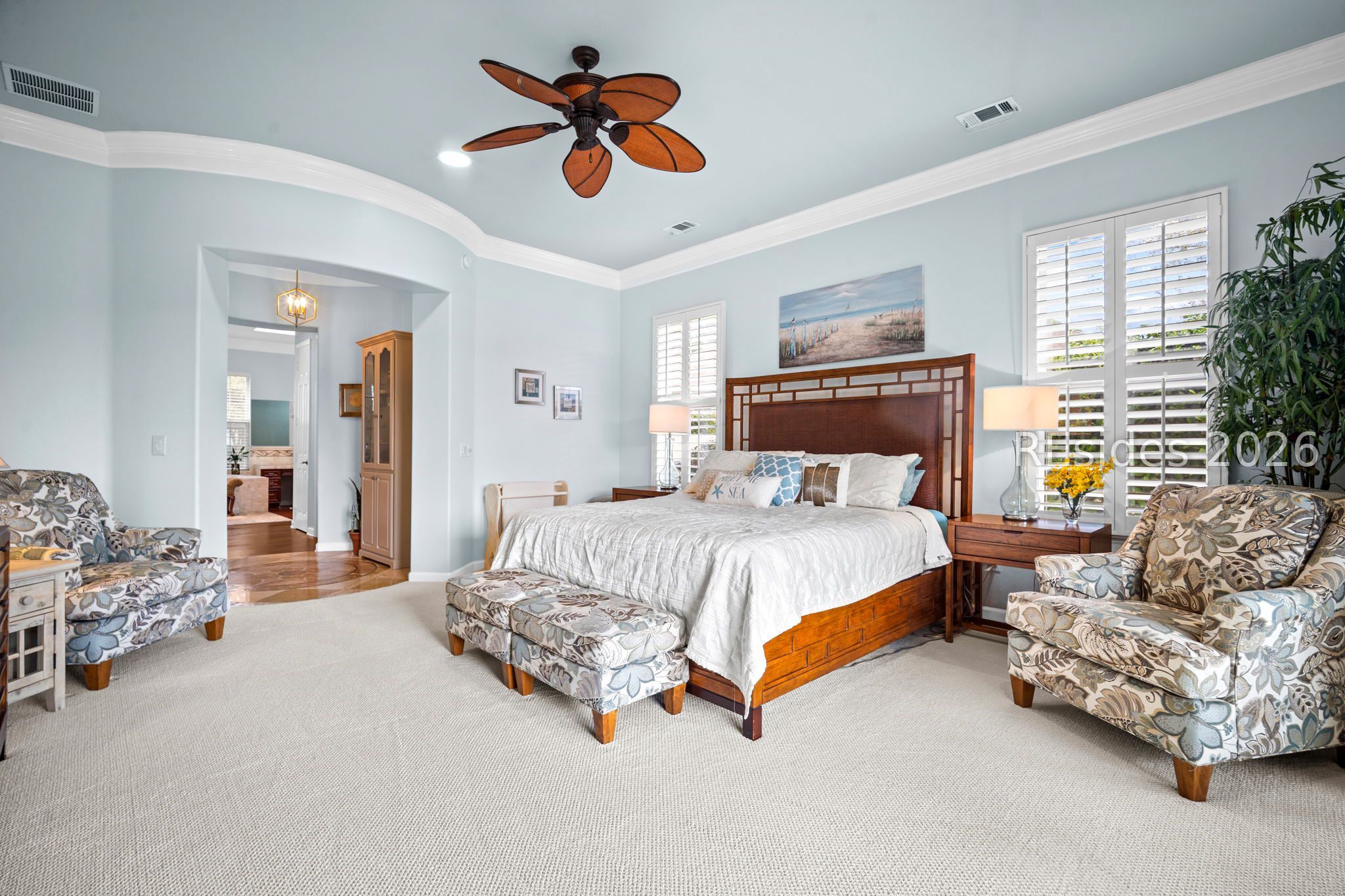 - Attic Access, Bookcases, Built-in Features, Ceiling Fan(s), Fireplace, Jetted Tub, Main Level Primary, Multiple Primary Bathrooms, Pull Down Attic Stairs, Smooth Ceilings, Separate Shower, Smart Thermostat, Central Vacuum, Entrance Foyer, Eat-in Kitchen, Pantry