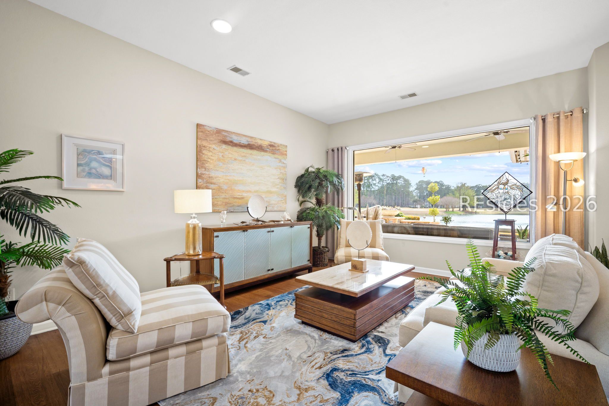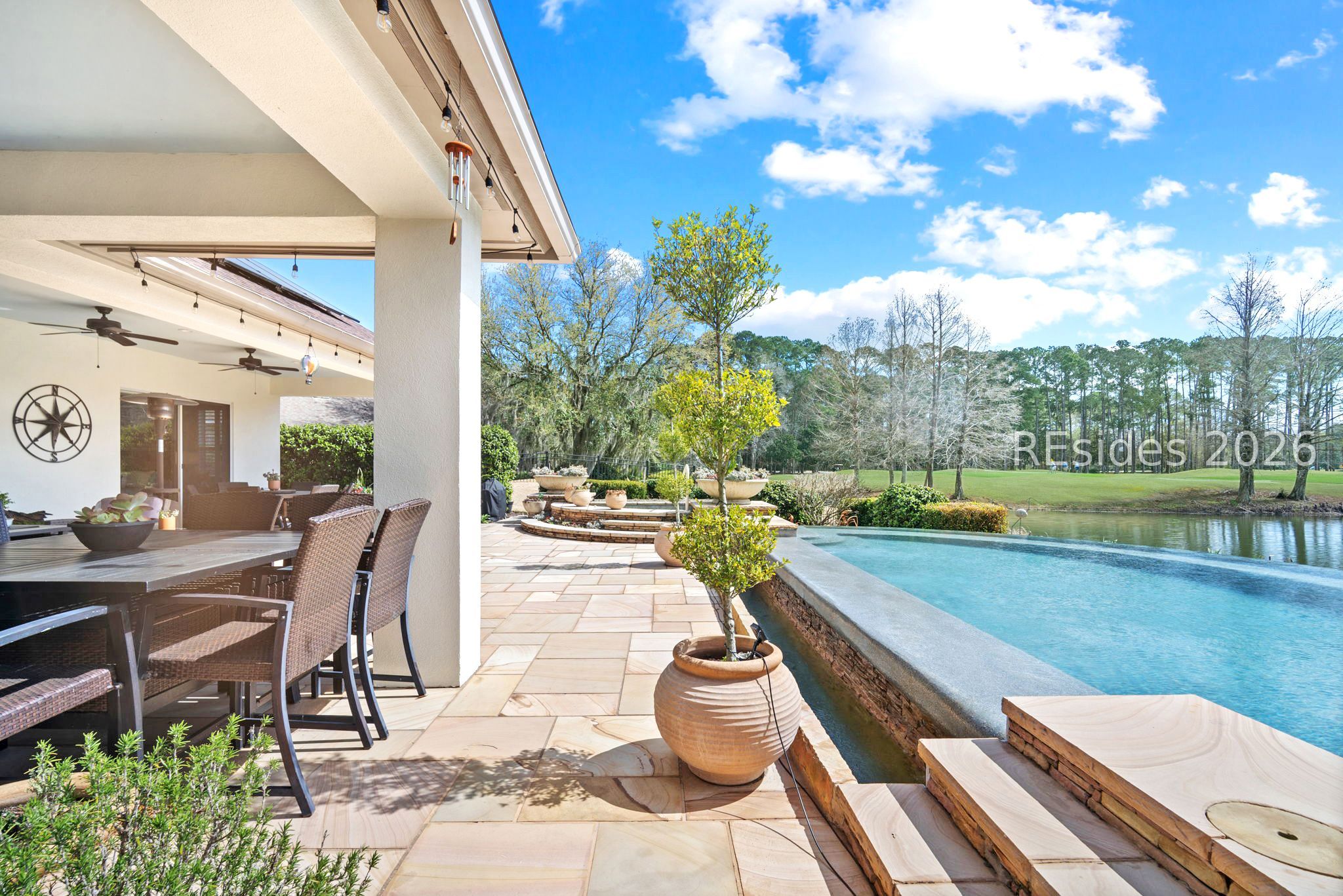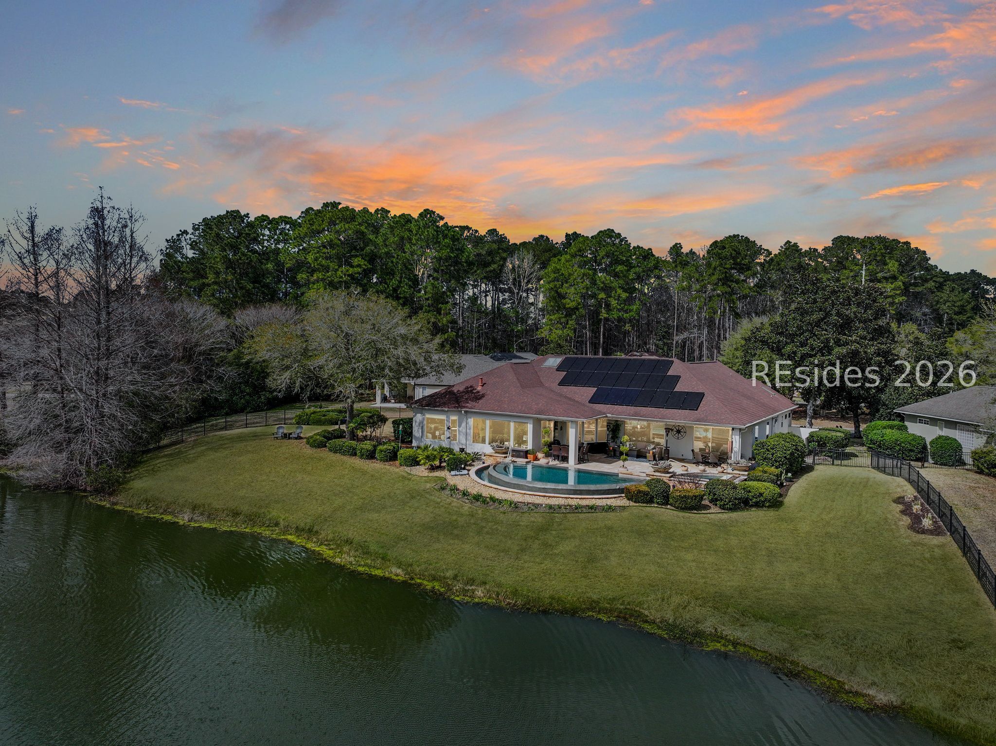 Welcome to 35 Debeaufain Drive in Sun City Hilton Head, a premier active adult community in Bluffton, South Carolina. This beautifully updated 3-bedroom, 2.5-bath home with nearly 3,000 square feet sits on a rare and exceptionally private homesite with sweeping lagoon and golf course views in multiple directions, creating a peaceful setting rarely found in Sun City Hilton Head by Del Webb.The home's positioning offers remarkable privacy while still capturing panoramic water and fairway views, making the property feel both open and secluded. Designed for true Lowcountry outdoor living, the backyard features a private infinity-edge pool and hot tub spa overlooking the lagoon and golf course. Recent upgrades include new pool tile, resurfacing, a new heater, and a new pump. A spacious covered patio provides the perfect place to relax or entertain while enjoying the tranquil views. Outdoor enhancements also include upgraded landscaping, improved irrigation and drainage, and a Mosquito Nix system.Inside, the home showcases extensive upgrades and thoughtful improvements throughout. Major enhancements include a solar panel system with battery storage and a Tesla charging station, providing long-term energy efficiency. Additional updates include new windows, upgraded sliding doors, renovated bathroom finishes, new bedroom carpeting, epoxy garage flooring, smart thermostats, and refreshed interior spaces. The garage also includes a split-unit HVAC system, allowing the space to remain comfortable year-round for hobbies or workspace. Residents of Sun City Hilton Head enjoy championship golf, resort-style pools, a fitness center, tennis and pickleball courts, walking trails, and an active social calendar. The community is conveniently located near Hilton Head Island, Old Town Bluffton, and Savannah. For buyers seeking a private Sun City home with panoramic lagoon and golf course views, a private pool, and extensive upgrades in Bluffton SC, 35 Debeaufain Drive offers a rare opportunity in one of the Lowcountry's most desirable 55+ communities.