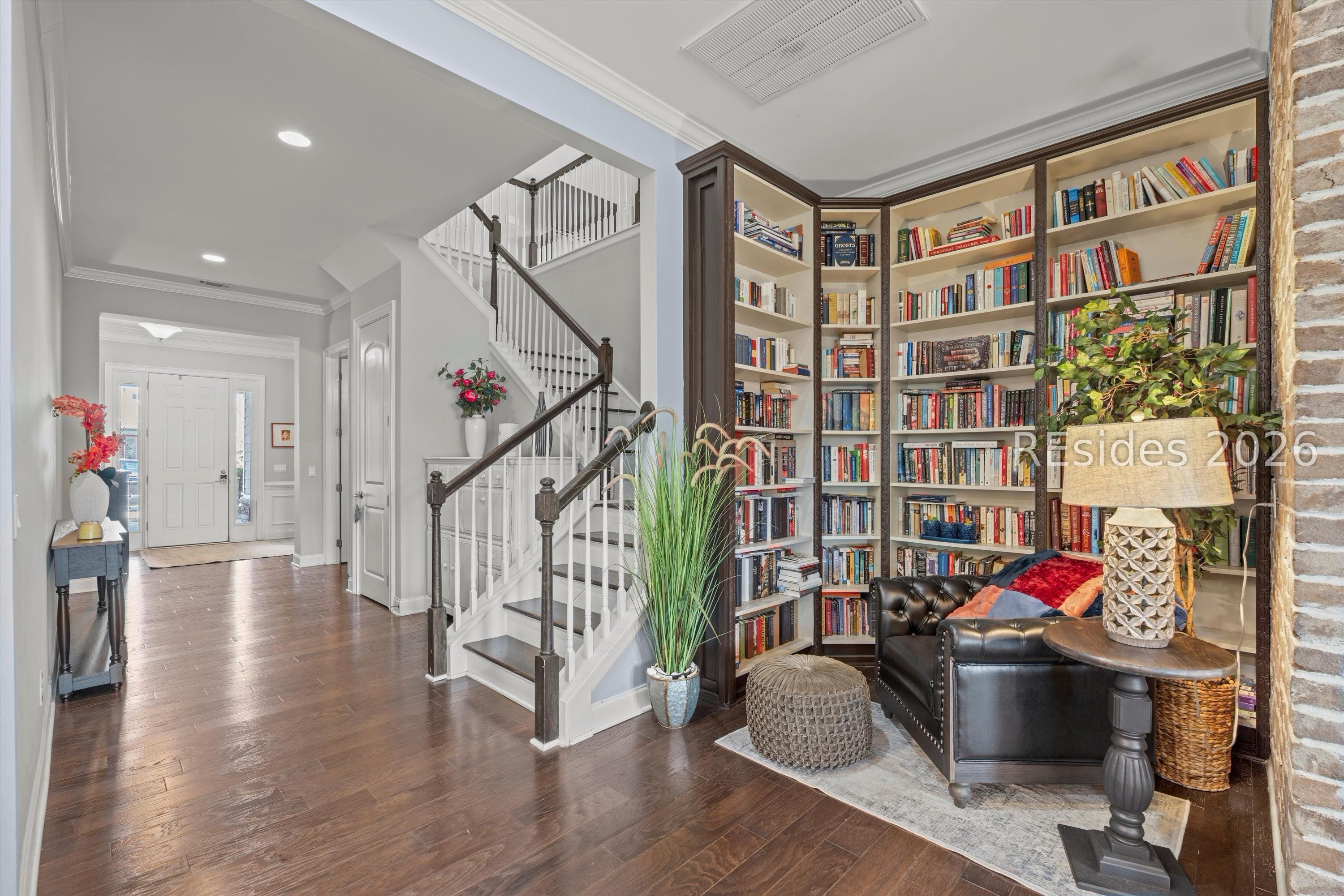 Welcome to 35 Fox Path Lane in Bluffton, SC, located in the sought-after Hampton Lake community. This stunning waterfront home is the Mont Blanc Loft Model by K. Hovnanian It captures beautiful lake views from multiple rooms, creating a peaceful setting for everyday living. The chef's kitchen features an expansive granite island, walk-in pantry, and separate appliance pantry - ideal for entertaining and organization. A cozy library nook and striking brick fireplace add warmth and character. The first-floor primary suite overlooks the water and includes an impressive walk-in closet. Upstairs offers a spacious loft, private guest bedroom, and full bath, while the main level also includes an additional guest room, office, and 3.5 baths. A perfect blend of elegance, comfort, and Lowcountry lifestyle.