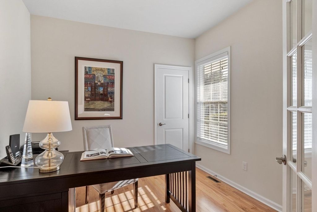 Don't miss this stylish, sophisticated luxurious townhome in the sought-after Quail Ridge 55+ community. The bright, open well designed layout, features a living/dining area, w/private office set behind French doors. Sparkling windows, detailed moldings, gleaming hardwood floors, tall ceilings, recessed lighting, and neutral decor enhance the comfort. The eat-in chef's kitchen is adjacent to a cozy family room w/gas fireplace and sliders that open to private decks, bordered by woods and gardens—ideal for relaxing and entertaining. The first-floor primary suite offers a peaceful spa-like retreat with a closet to die for! Two additional large rooms and upstairs loft offer flexible private spaces for everyone. Laundry room, 2 car gar + enormous unfinished basement. Residents enjoy access to meticulously landscaped grounds for walking and the ease of nearby shopping, + dining. An exceptional blend of comfort, elegance, and low-maintenance living—this is a place to truly feel at home!