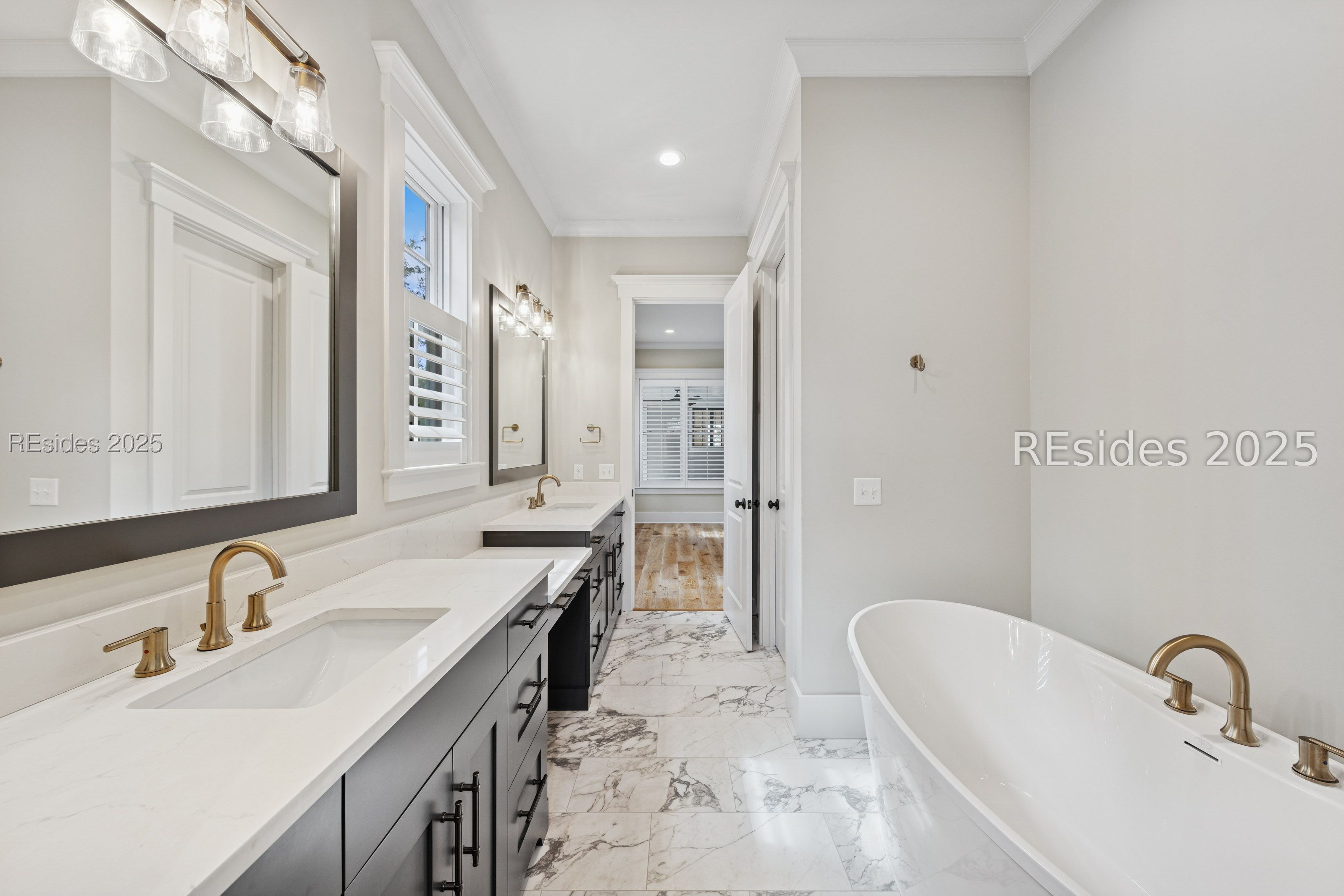 Palmetto Bluff : 4BR/4.5BA move-in ready home in immaculate like-new condition. Premium lot adjacent to preserved forest offers a permanently protected view, and, a unique level of privacy when using the screened porch. Layout 1FL : MBR suite and one addl ensuite BR. Open Kitchn LR/DR w FP. LaundryRm. MudRm. Large 2-car Garage. (2FL : TV/home office space plus two additional en-suite BRs). A spacious screened porch offers a beautiful view of woods and opens to a brick patio+firepit. Extremely well-located in the beautiful River Road enclave: 1-block walk to Pool+Gym+Playground+DogPark and Lodge. Excellent long-term rental history. Note : taxes shown reflect that this home is not a primary residence. As a primary home, Beaufort County Assessors Office estimates taxes would be approx $6K/yr (buyers to verify). 35 Remington Rd presents a fantastic value-buy given its like-new condition, setting, protected view, location, build quality - and, the option to rent now or in the future. An absolute must-see.
