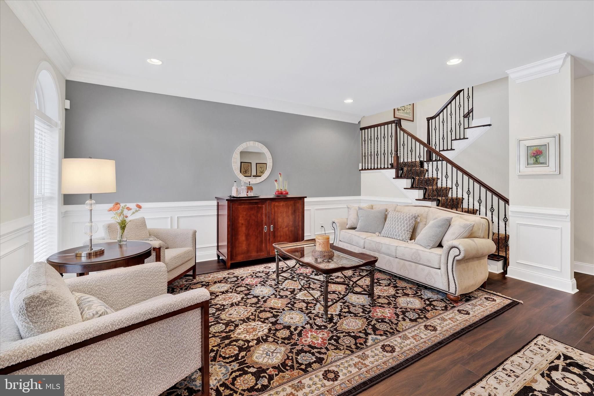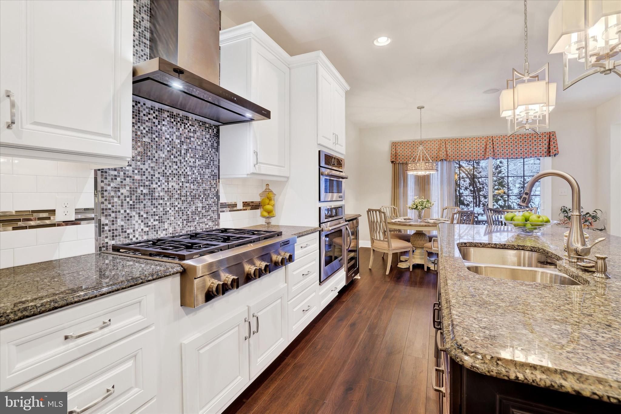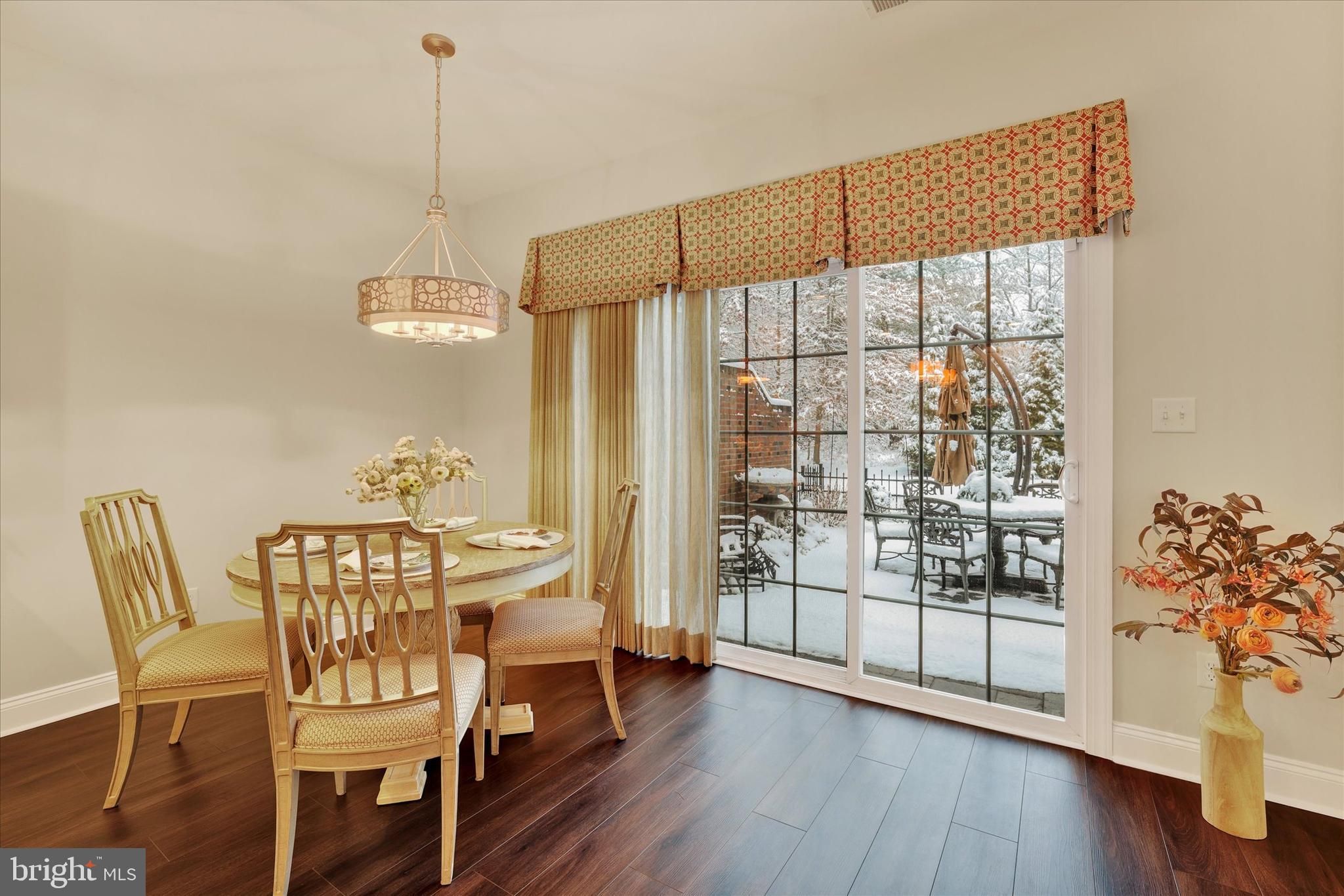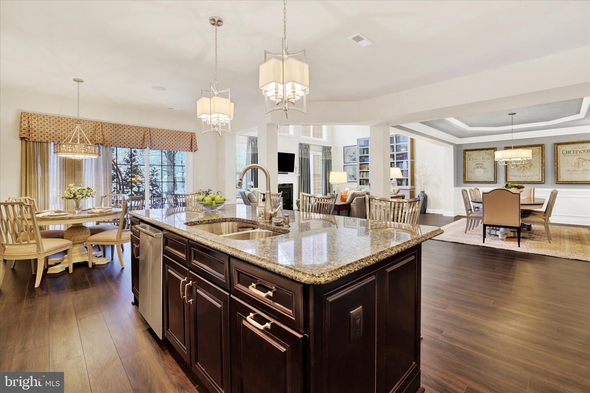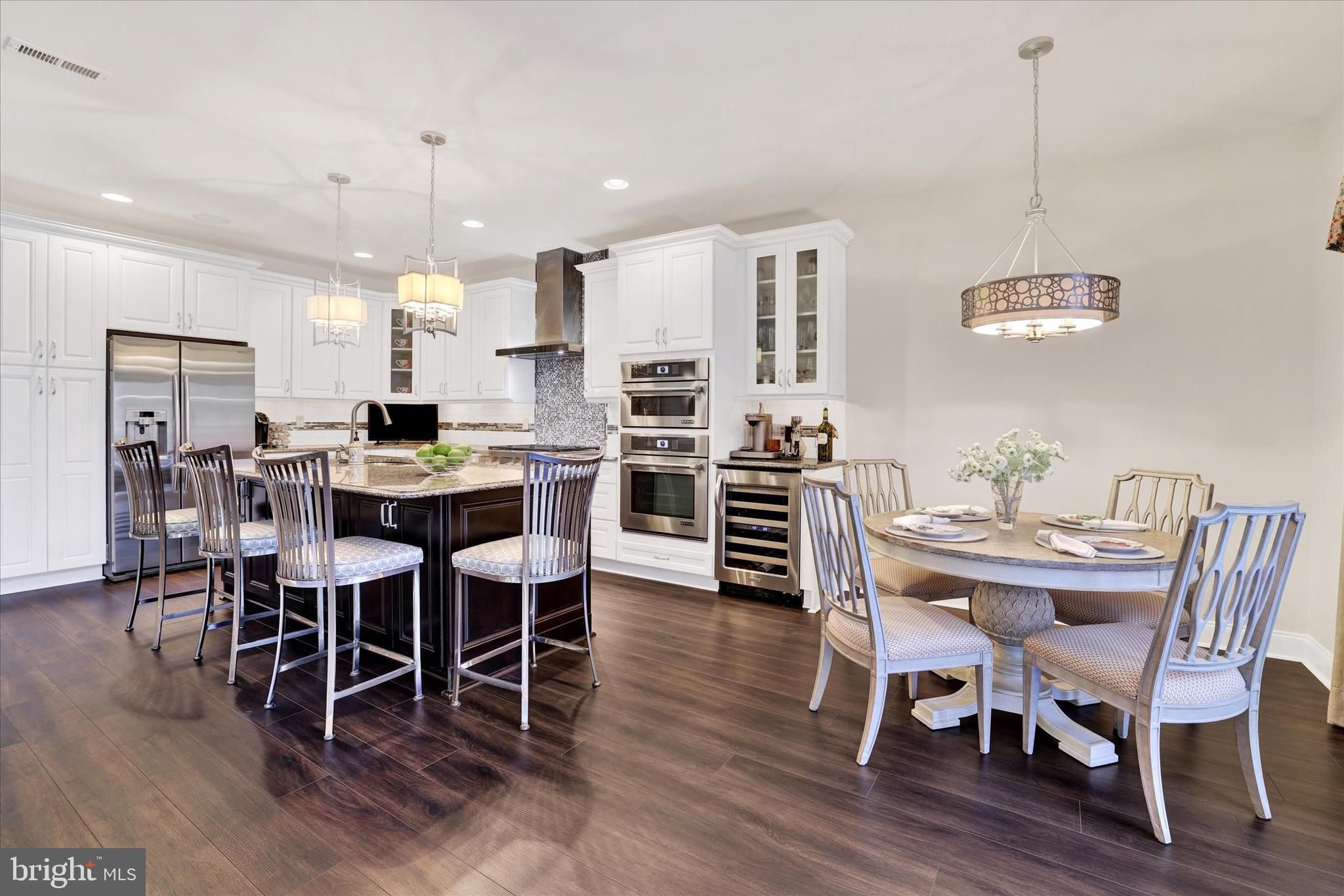 Welcome to 35 Rittenhouse Circle, located in Delancey Court, one of Bucks County’s most sought-after premier 55+ Active Adult communities. Inspired by the timeless charm of historic Philadelphia neighborhoods, the community features classic brick façades and thoughtfully designed streetscapes. This home is ideally situated on a premium lot, backing to a tranquil wooded backdrop and preserved open space, offering both privacy and natural beauty. This customized Toll Brothers–built Farnham model offers four bedrooms and three-and-a-half baths and welcomes you with a charming cobblestone walkway and covered front porch. Upon entry, a dramatic 2-story foyer sets the tone for this elegant residence. Freshly painted throughout, the home features a refined neutral and custom color palette. The formal living room is enhanced by custom crown, dentil, chair rail, and wainscoting moldings, complemented by Stanton Woodlands walnut random-plank luxury vinyl flooring, which extends throughout the entire first level. The spacious hallway leads to an open-concept design centered around the impressive chef’s kitchen. This space features upgraded granite countertops, a custom subway tile backsplash with mosaic inset, Yorktowne Maplewood cabinetry with custom pull-out shelving, under-cabinet lighting, and a large center island with seating. Additional highlights include a dual undermount stainless steel sink, Yorktowne “Java” cabinetry, and custom millwork. High-end stainless steel appliances include a Jenn-Air six-burner cooktop with custom vented hood, convection wall oven and microwave, Bosch dishwasher, KitchenAid wine refrigerator, and Samsung French-door refrigerator. A generous walk-in pantry and adjacent breakfast area provide additional convenience and functionality. Step through the triple-pane sliding glass doors to an expansive, fenced EP Henry patio, framed by brick privacy walls and overlooking a serene wooded backdrop and open green space—ideal for outdoor relaxation or entertaining. The formal dining room, located adjacent to the kitchen, features a tray ceiling, custom moldings, an upgraded chandelier, and wall sconces. The dramatic two-story family room offers a wall of windows with custom treatments, a gas Heatilator fireplace with glass enclosure, quartz surround, custom mantle, built-in speakers, recessed lighting, and an upscale ceiling fan, perfect for both everyday living and entertaining. Completing the main level is a hallway leading to the mudroom, powder room, mechanical room, and direct access to the two-car garage. A turned staircase with solid wood treads, custom railing, and metal balusters leads to the second level, which features engineered hardwood flooring throughout. This level includes a spacious loft overlooking the family room. The luxurious owner’s suite boasts a tray ceiling with crown molding inset, a custom crystal chandelier, elegant window treatments, and two walk-in closets with custom organizers. The spa-inspired owner’s bath features a dual vanity with custom cabinetry, an expansive dual-head shower with seamless glass enclosure and custom tilework, and a Kohler Archer® air-jetted whirlpool tub with heated bubble massage hydrotherapy. Additional features include ceramic tile flooring, recessed lighting, and a private commode. Two additional well-appointed bedrooms, a hall bath with tub/shower, and a full laundry room complete the second level. A glass door leads to the finished 3rd level, offering a 4th bedroom, a large recreation area, random-plank hardwood flooring, a walk-in closet, two additional storage closets, and a dedicated mechanical room for the 2nd HVAC system. A custom full bath with tub/shower and random-plank marble flooring completes this level. Additional amenities include a 3-zone HVAC system, Andersen windows, a security system, and numerous high-end upgrades throughout. Every detail of this exceptional home has been thoughtfully designed for refined livinging!