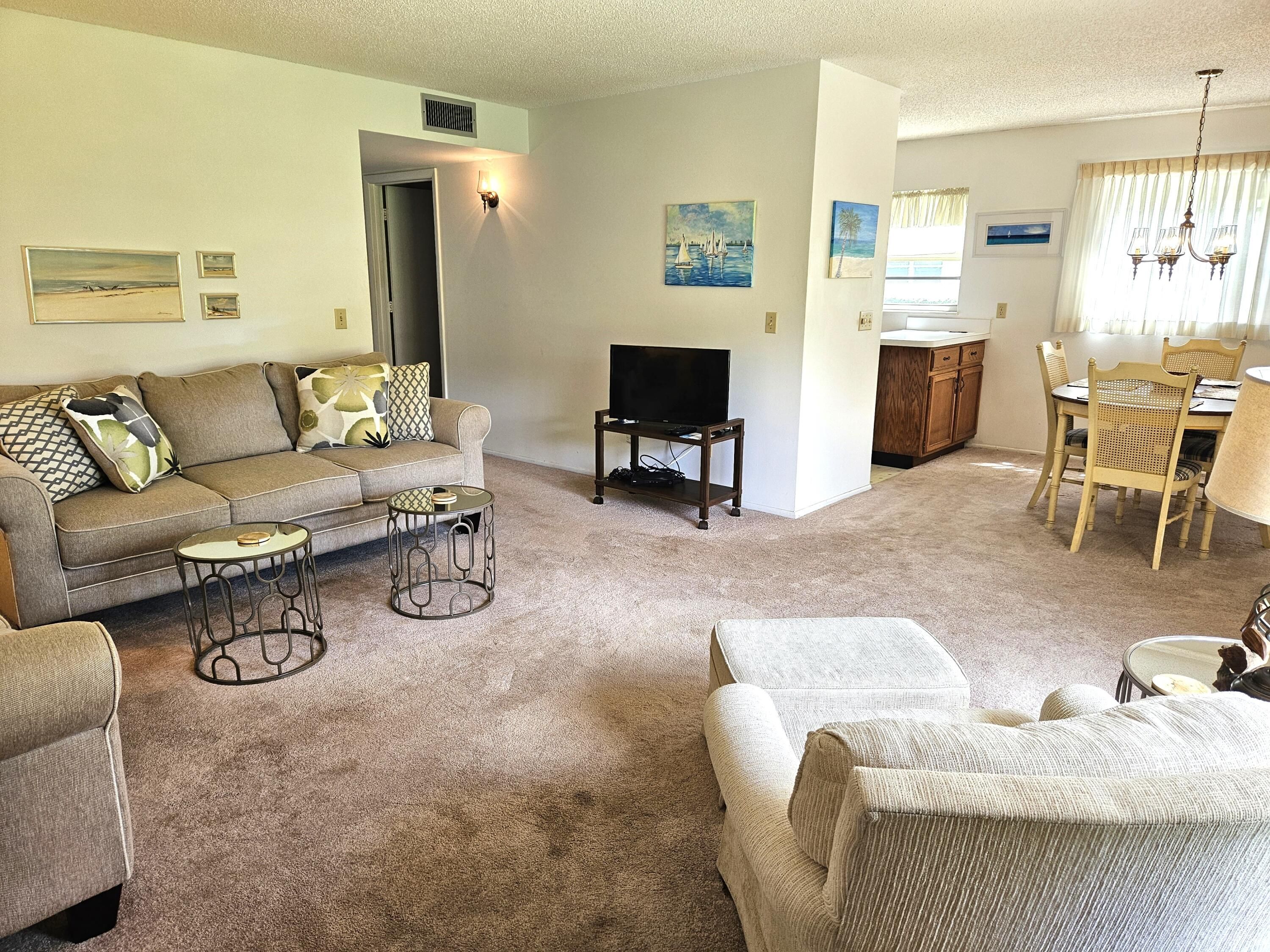 Come see this 1st floor, fully furnished 2 bedroom, 2 bath, turnkey condo. This unit has been gently lived in by the same family from the day the condo was built. Light, bright and airy to enjoy our wonderful Florida lifestyle. Vista Gardens is a well run, beautifully maintained 55+ community with loads of amenities to enjoy. Located just minutes from the beach, shopping, dining, entertainment and healthcare. There is a lot to love here. Room sizes are approximate. Buyer must verify.