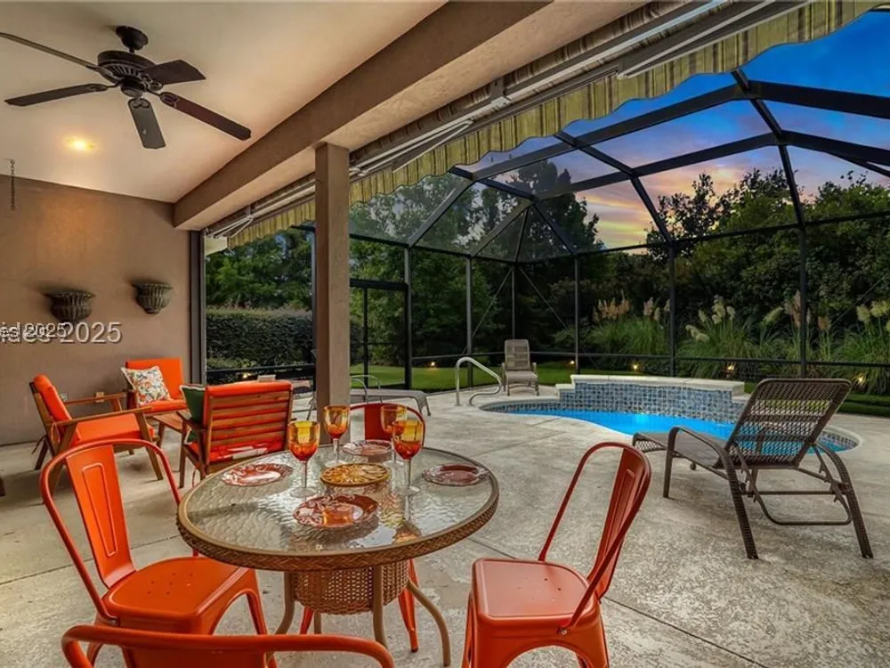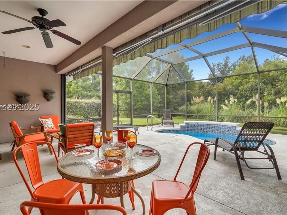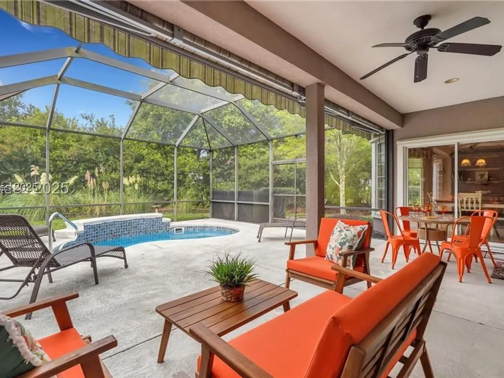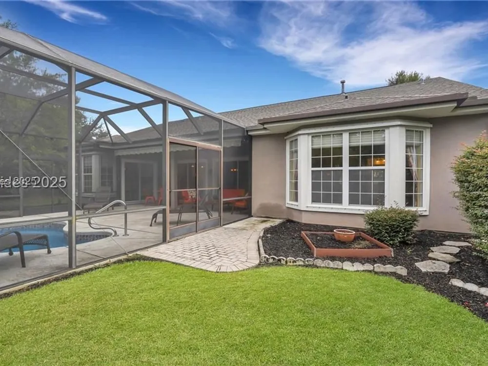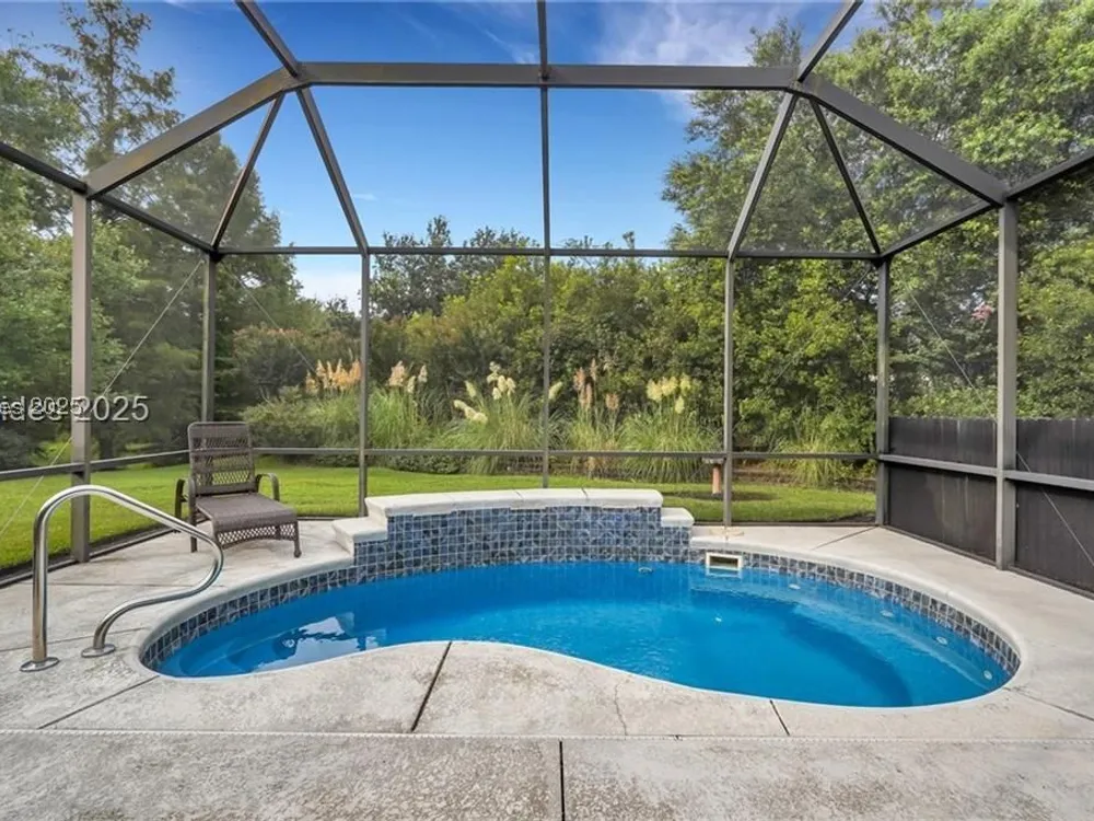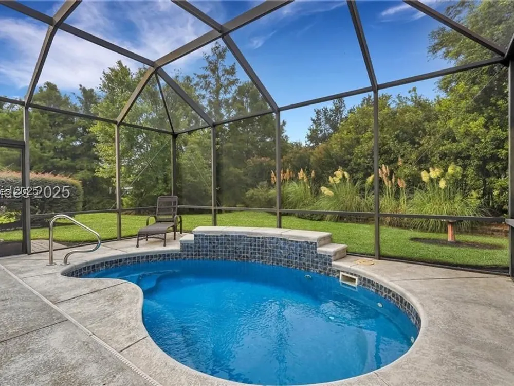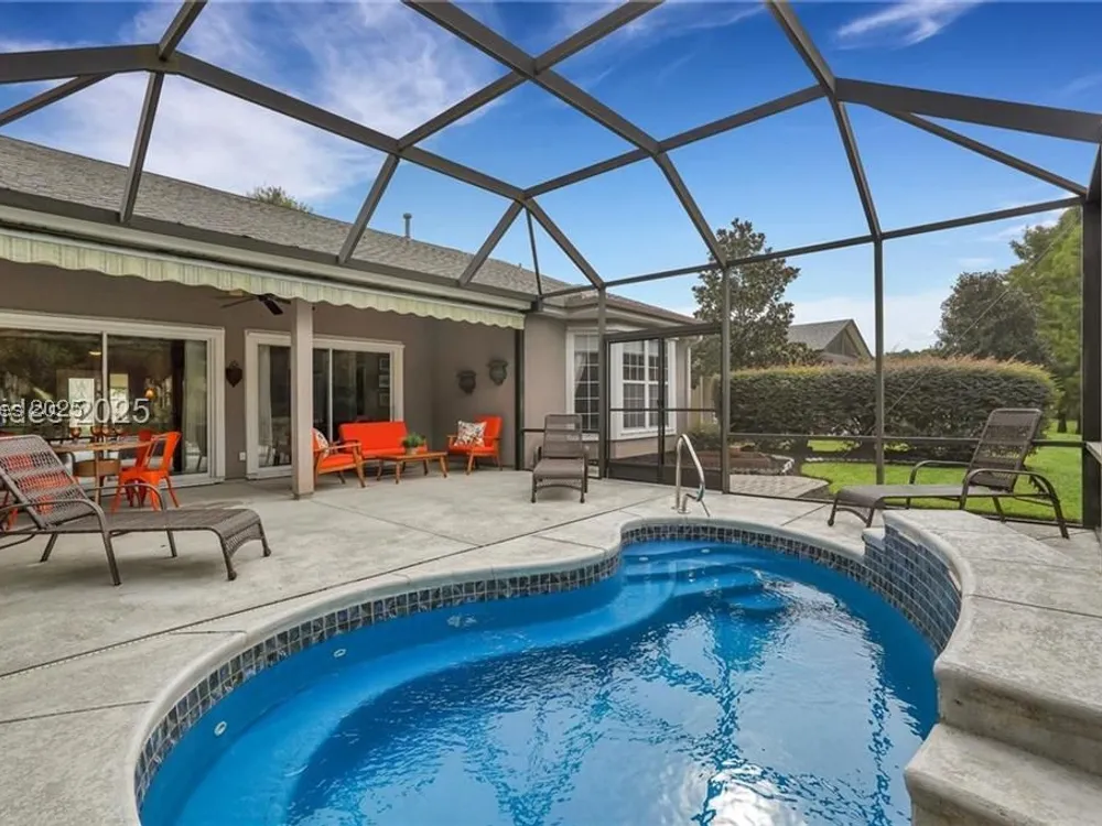Who's looking for a POOL in paradise? Located in SUN CITY HILTON HEAD, this popular Dogwood Model sits on a peaceful cul-de-sac! The open-concept layout offers 2 BD/2 BA, and a versatile office/flex room. The eat-in kitchen w/ SS appliances & eat at bar flow seamlessly into the spacious living room, making it great for entertaining. Providing lots of storage, built in space and closets. Enjoy the outdoor space with a covered area, open patio, & a serene waterfall feature on the pool for relaxing sunset evenings. The home offers scenic landscape & lagoon views. **********Sun City Hilton Head in Bluffton, SC, is a premier 55+ community spanning over 5,000 acres, offering an unmatched resort-style lifestyle. Residents enjoy 54 holes of golf across three scenic courses, six pools (including indoor lap and leisure pools), and three fully equipped fitness centers with classes and studios. The sports park offers tennis, pickleball, bocce, softball, volleyball, croquet, and more. Social and creative outlets abound with a ballroom, 16,000 sq ft performing arts theater, arts and crafts studios, woodworking shop, billiards, card rooms, and a library. Outdoor enthusiasts appreciate the Lake Somerset and Riverbend Docks, fishing, miles of walking and nature trails, community gardens, and three dog parks. There are over 150 clubs covering everything from arts and music to technology and lifelong learning. Additional amenities include on-site restaurants, RV and boat storage, and a secure, gated environment with convenient access to Hilton Head beaches, Historic Savannah and Charleston along with local shopping, dining, and healthcare. Sun City is also expanding with a new multimillion-dollar resort style amenity center coming soon!