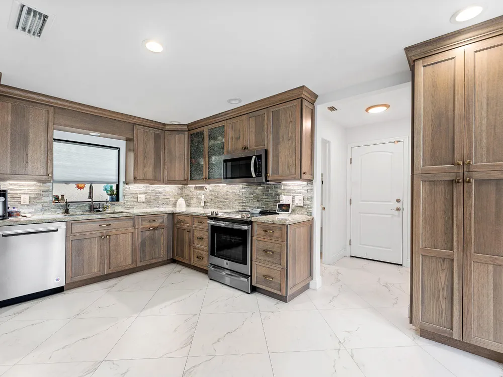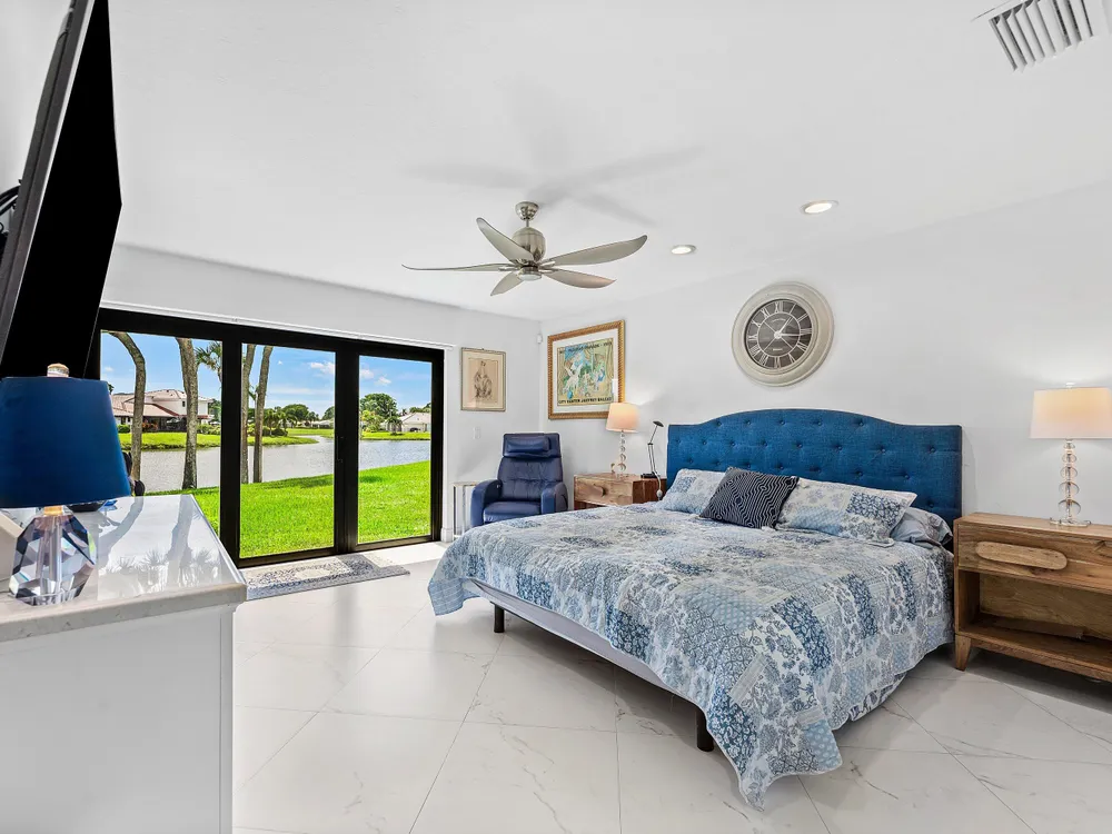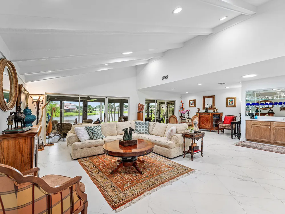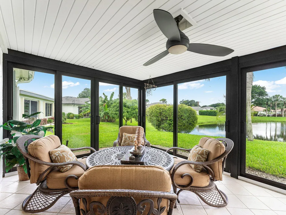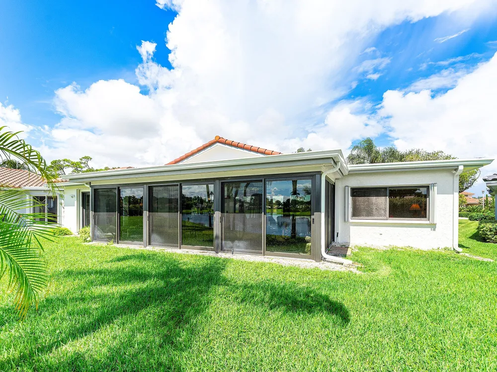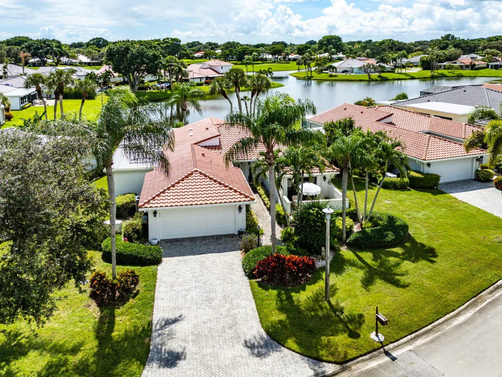 Modern and move-in ready, this fully renovated 3-Bedroom home in The Woods at Hunters Run Country Club sits on a premium, wide-water lot--an incredible view at every turn. A vaulted-ceiling great room anchors the open-concept layout flowing across large-format porcelain tile, while motorized zebra shades and fhurricane-impact glass add comfort and peace of mind. The remodeled kitchen showcases custom cabinetry, quartzite counters, stainless-steel appliances, and an oversized peninsula. Luxe primary and guest suites offer private, updated baths with spa-style showers and custom closets. The family room addition w/ 3rd BR ensure plenty space for the whole family. Enjoy a Generac whole-house standby generator and a brand-new roof, paid for in full by the seller. See it today--before it's gone!