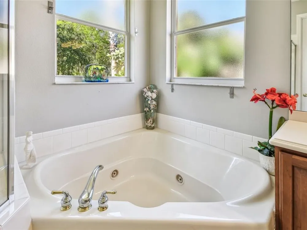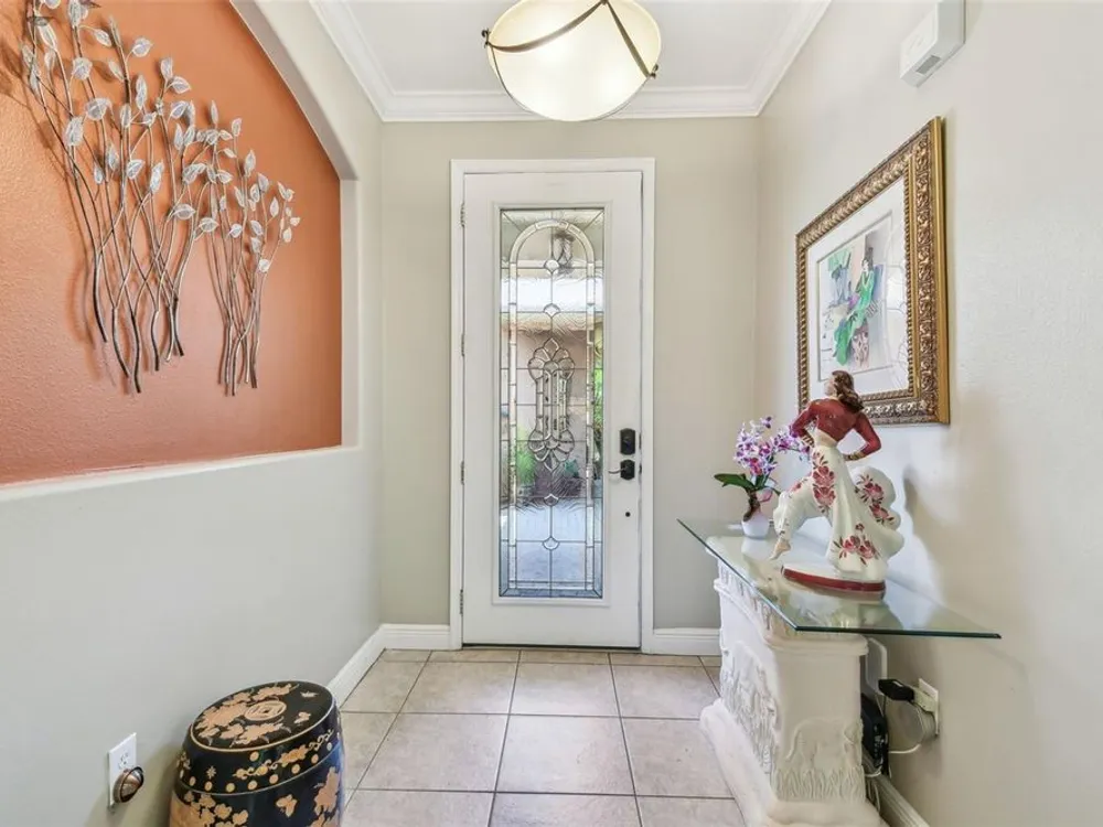 Lovely Bolero Model on Peaceful Conservation Lot with Separate Casita Suite! ROOF REPLACED 2024. HWH 2025.**See the FULL LENGTH 3D MATTERPORT VIDEO on Tour Link 1. ** Welcome to this beautifully maintained 3-bedroom, 3-bath Bolero model home, perfectly situated on a serene conservation lot offering privacy and peaceful views. From the moment you enter through the gated, cozy courtyard oasis, you'll appreciate the charm and thoughtful layout this home provides. Inside, you'll find CROWN MOLDING and 18" tile flooring throughout—with no carpets—offering both style and low-maintenance living. The chef’s kitchen is a dream for any cooking enthusiast, featuring 42" glass-front cabinets with convenient lower pull-out shelves, newer stainless steel appliances, Corian countertops, newer sink(2024) and faucet (2025), and a spacious BREAKFAST BAR with PENDANT LIGHTING overlooking the inviting Florida room. The PRIMARY SUITE is a private retreat, boasting a separate sitting area with French door access to the lanai, perfect for enjoying quiet mornings or evenings. The ENSUITE BATHROOM includes a jetted tub, walk-in shower, DUAL SINKS, and TWO generous WALK-IN closets.The second bedroom features sliding doors that open to the front courtyard and has a full bathroom nearby with a tub/shower combo, making it ideal for guests or family members. One of the standout features of this home is the separate CASITA SUITE, complete with PLANK TILE flooring, a full bath, WALK-IN CLOSET, and linen closet. This flexible space is perfect for guests, a private office, or hobby room. Enjoy the outdoors on the SCREENED and COVERED lanai featuring tile flooring with a decorative TILE RUG PATTERN on one end. This peaceful space overlooks the conservation area, where you can relax and enjoy quiet evenings surrounded by the sounds of nature. Additional highlights include a separate laundry room with NEW WASHER and DRYER (2025) included, upper storage cabinets, and a large pantry closet. The two-car garage is finished with EPOXY FLOORING and pull-down attic stairs for added storage. 8' FOOT DOORS and rounded corners. EXTERIOR PAINTED IN 2022. The HOA: - maintains the LANDSCAPING & IRRIGATION systems in the common areas as well as at individual homesites - maintains the roads throughout the community - PROVIDES SECURITY with gate guards and mobile patrols including the Polk County Sheriff - allows AUTOMATED GATE ACCESS for residents via license plate readers - provides residents with Fiber Optic Internet & TV service.***Poinciana Lakes Plaza is a MAJOR NEW SHOPPING CENTER that opened directly across from the Solivita Main Gate in Summer of 2024. It features Sprouts Grocery, TJ MAXX, Ross, Burlington, Rack Room Shoes, 5 Below, Ulta, Outback, First Watch, 5 Guys, Urgent Care, Dentist, TD Bank, Petco & Hair Cuttery PLUS MORE TO COME.***