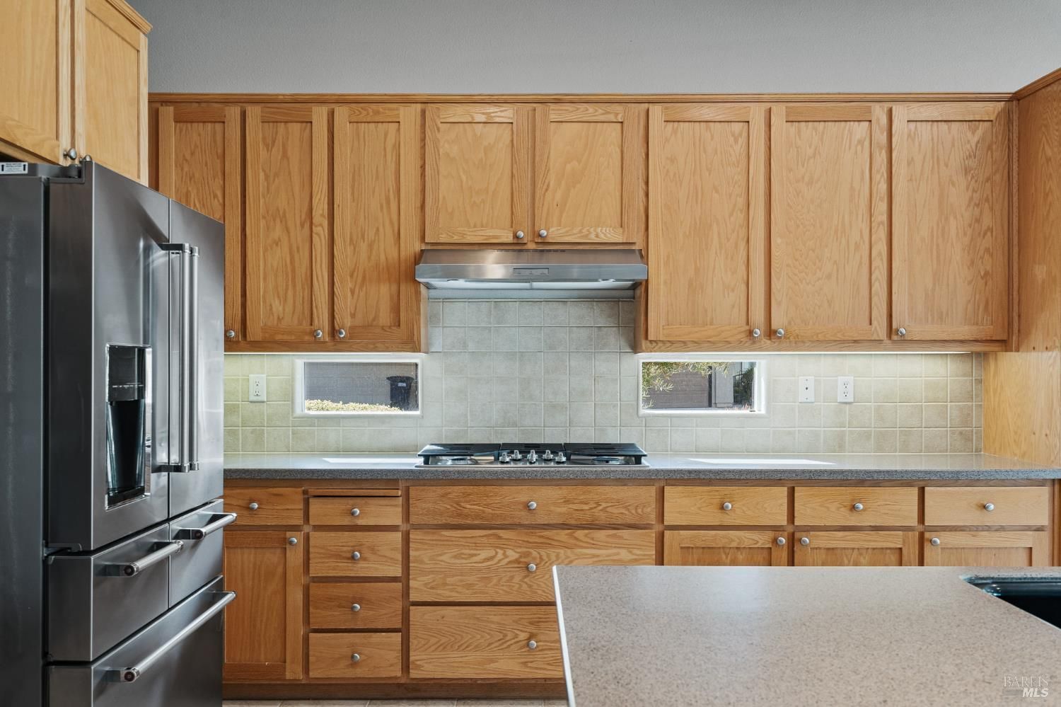 - Built-In Electric Oven, Dishwasher, Disposal, Free-Standing Refrigerator, Gas Cooktop, Range Hood, Microwave