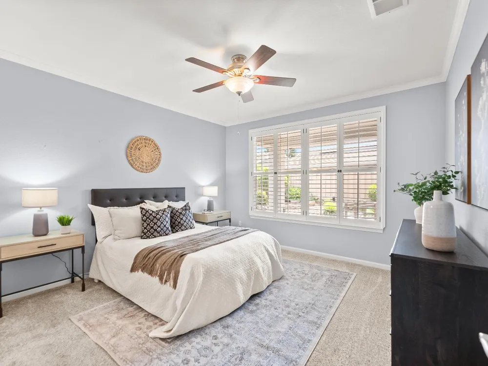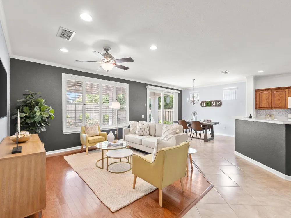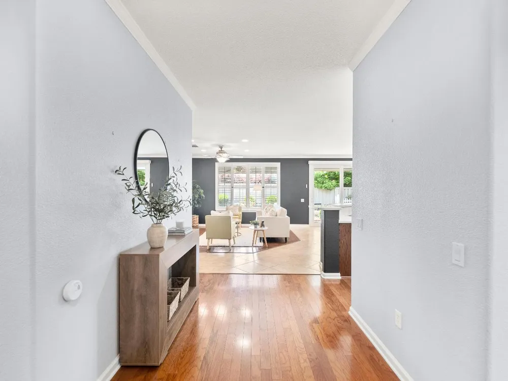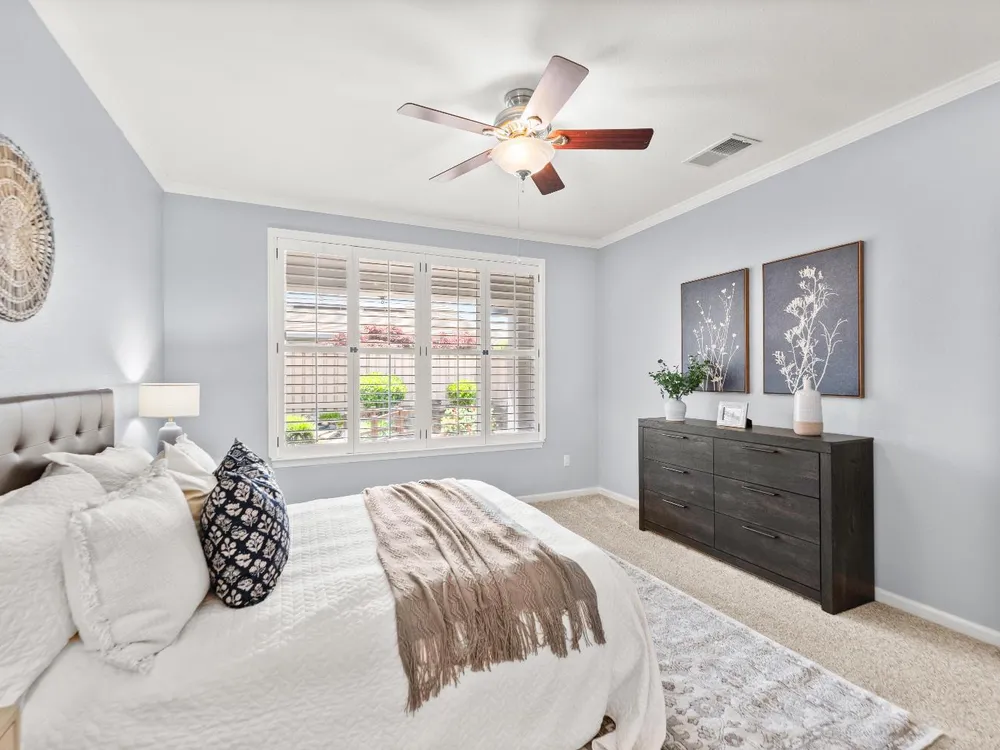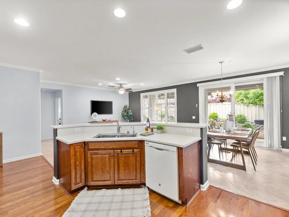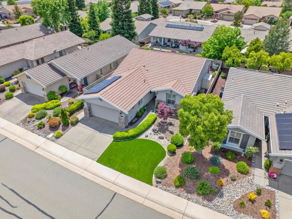 Back on market at no fault of home! Welcome to this beautifully maintained Alpine model home in the highly sought-after Sun City Lincoln Hills active adult community. Perfectly positioned just a short stroll from Kilaga Springs Lodge, this residence offers the ideal blend of comfort and convenience. Step inside to discover rich hardwood floors and an open, light-filled layout featuring 2 spacious bedrooms, a versatile office/den, and a well-appointed kitchen with cabinet rollouts & spacious pantry. The home's thoughtful design includes a dedicated laundry room and energy-saving solar. Enjoy outdoor living at its finest with an exposed aggregate driveway, walkways, and extended patio with ceiling fan surrounded by the tranquil sounds of the serene water feature, ideal for relaxing or entertaining. Newer HVAC & NO kitec. Don't miss your chance to live in one of Northern California's premier 55+ communities, with world-class amenities and a vibrant lifestyle right at your doorstep!
