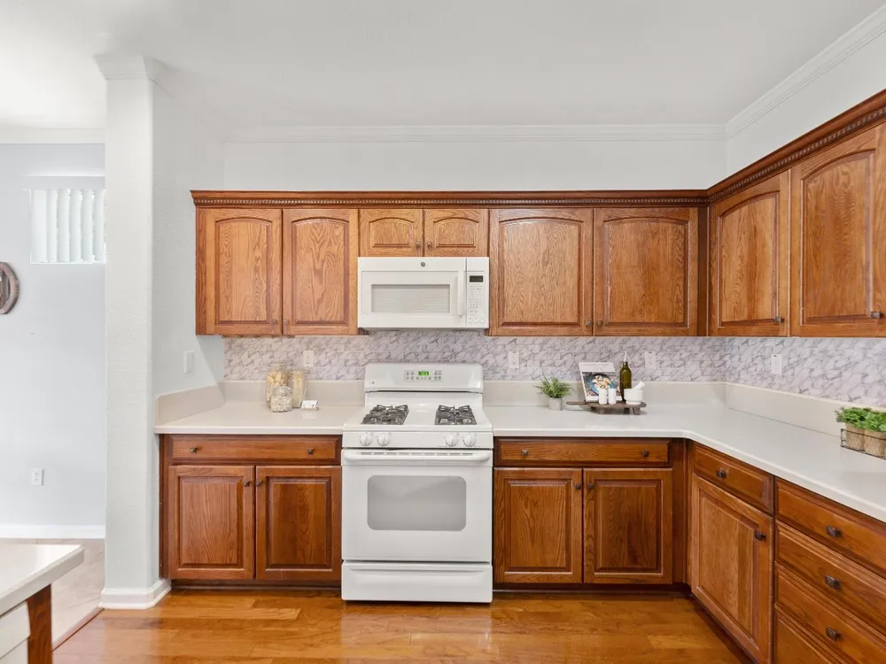 - Free-Standing Gas Range, Dishwasher, Microwave