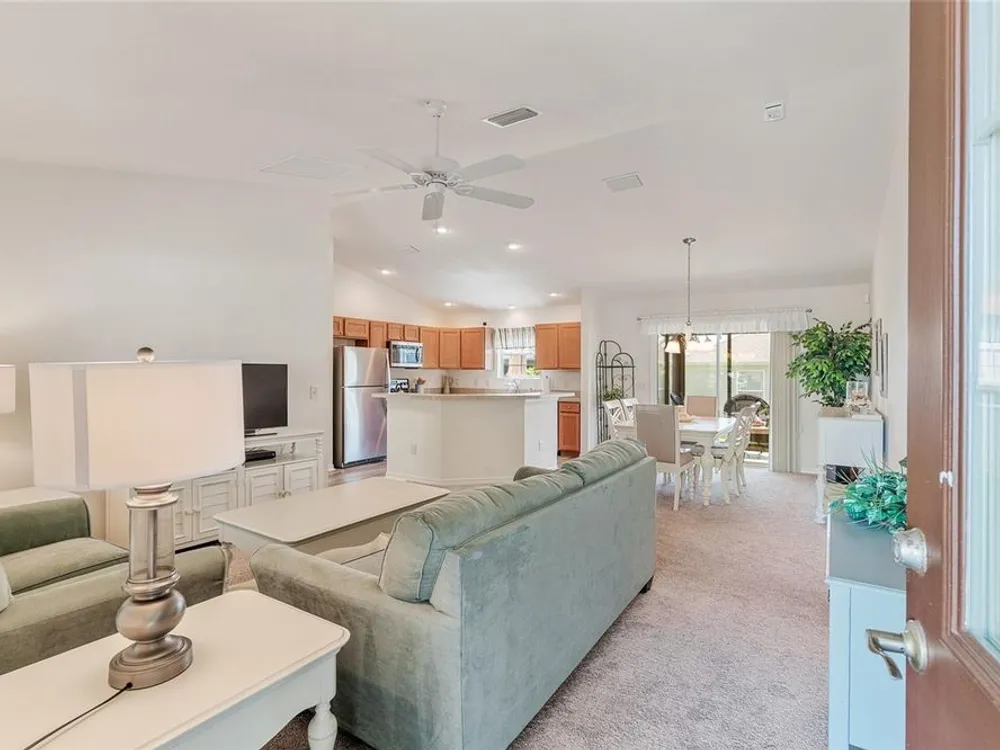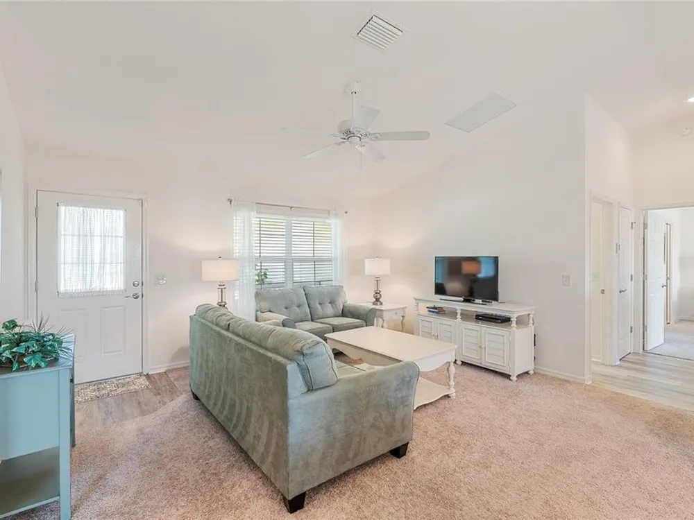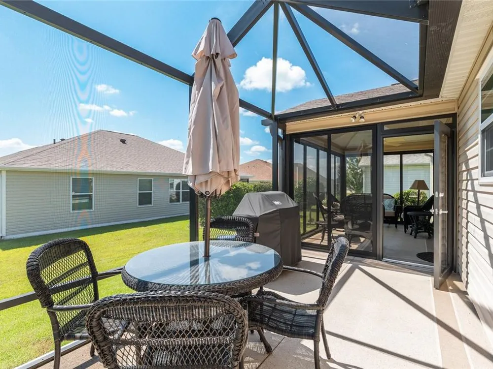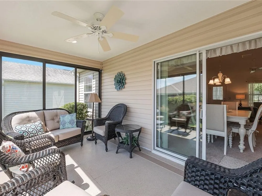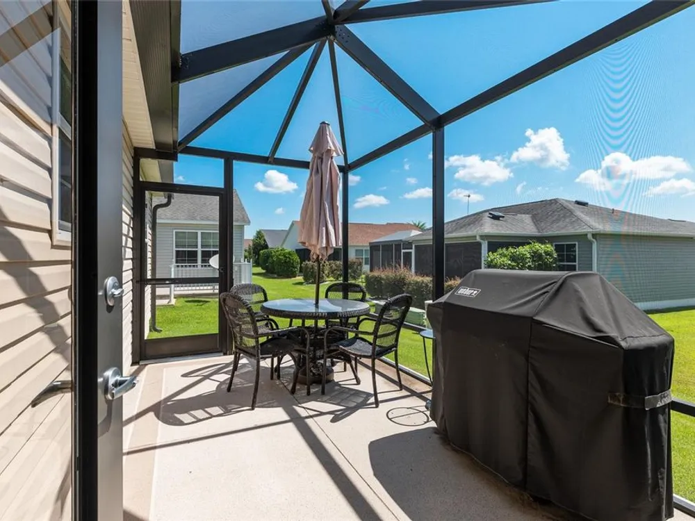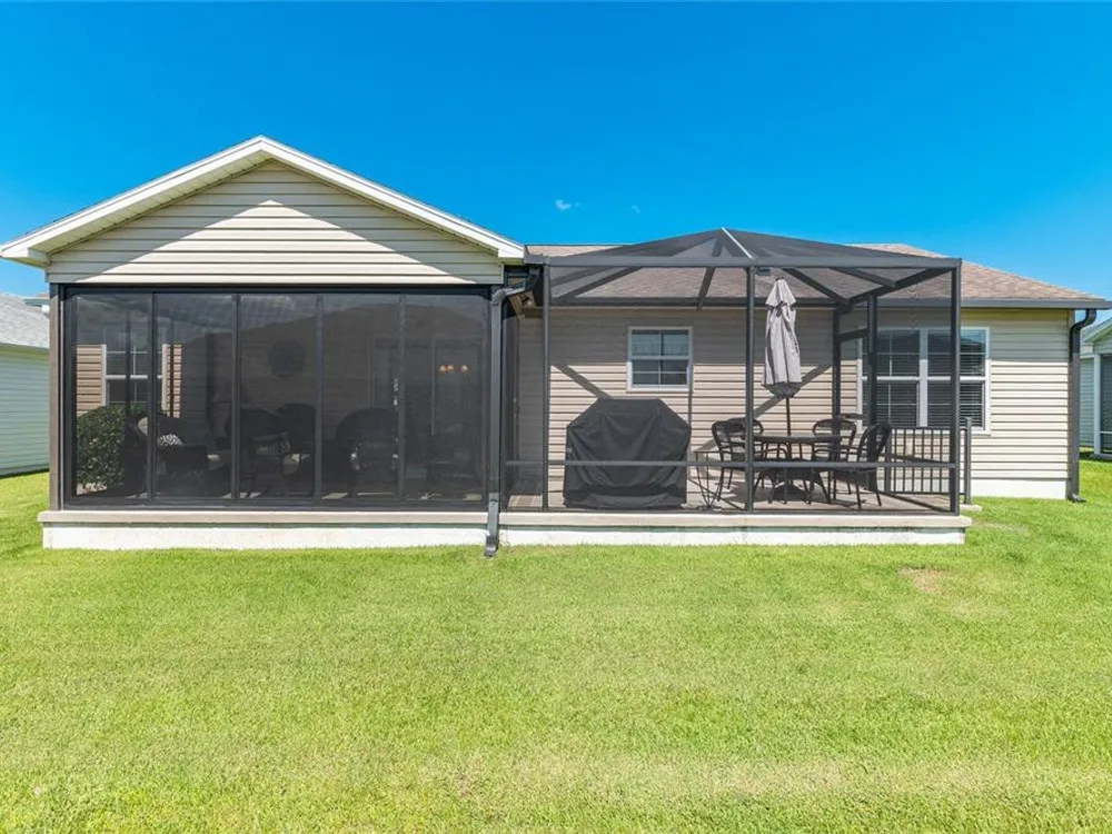 Welcome to 3505 Boardroom Trail. Location, Location, Location! You will be close to Belle Glade Championship Country Club with its fabulous FMK Restaurant and 27 holes of challenging golf. This well maintained Three bedroom - Two bath “Sun Kissed” model is ready for a quick close. The soaring ceilings give it a very open feel. You will enjoy this lightly lived in home that was used seasonally. It will be a great place to get your Villages life started. The friendly neighborhood pool is just down the street! Burnside Family Recreation Center is a short cart ride away. Three additional Executive Golf Courses (Volusia, Escambia, & Okeechobee) are not far from the home either. Living in the Village of La Belle North, you will be spoiled with shopping at either the Walmart Neighborhood Store and Gas Station or Colony Plaza, which is also just minutes away, complete with Restaurants, Banking, Fast Food, Fuel and Healthcare. This defines convenience! Special features of this home include a welcoming open front porch, a 15x9 enclosed lanai, plus a 15x9 birdcage for outdoor entertainment with custom painted flooring. The kitchen has neutral colored durable laminate counters, solid wood cabinets, stainless appliances and a breakfast bar as the gathering point for friends and family. The kitchen, laundry and bathrooms have stylish luxury vinyl flooring. Each of the bedrooms has ceiling fans with light kits. You will love the storage space since both guest bedrooms have closets. and the primary suite has a very large walk-in closet. In the primary bedroom with ensuite bath, there are dual sinks and a step-in shower. The garage also has custom finished floor for a very clean look. If you are looking for a clean affordable home to start your life in The Villages, this should be the one! If interested this home could be yours with a separate turnkey package that includes a 2016 Yamaha golf cart which many upgrades. Low Bond balance - Call today!
