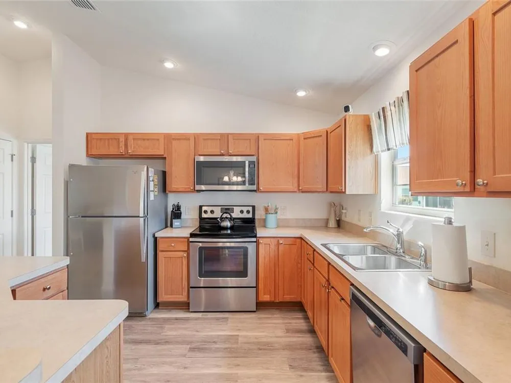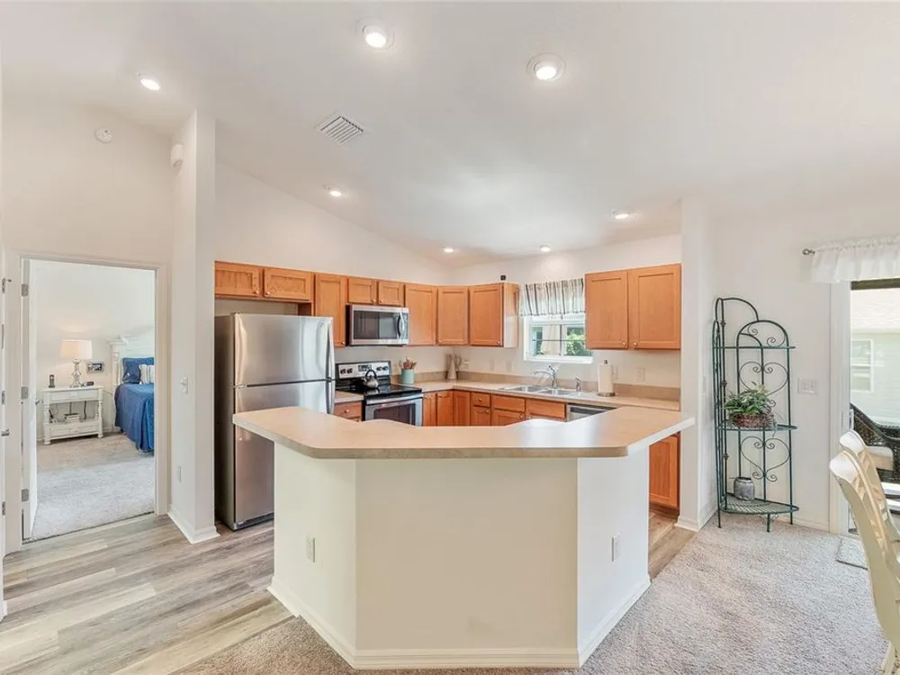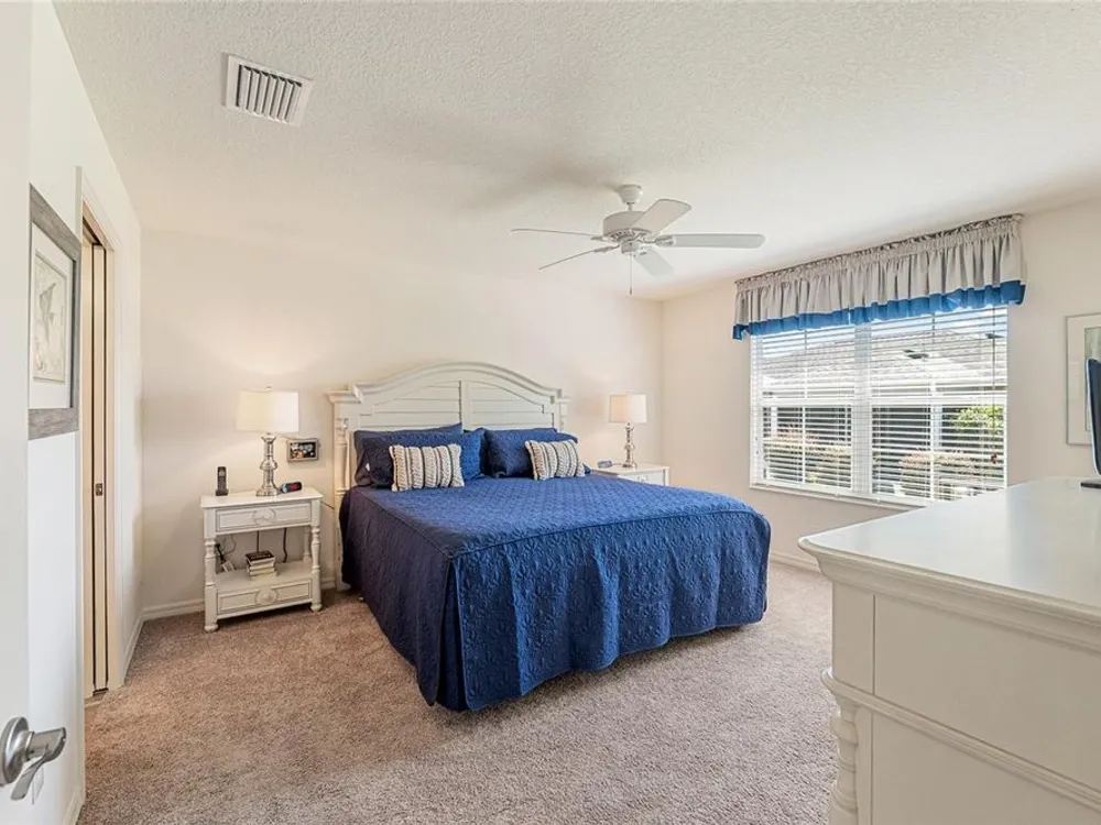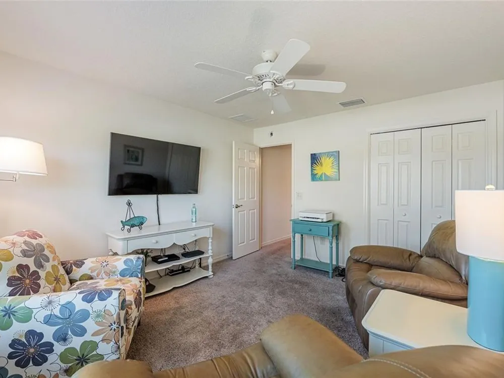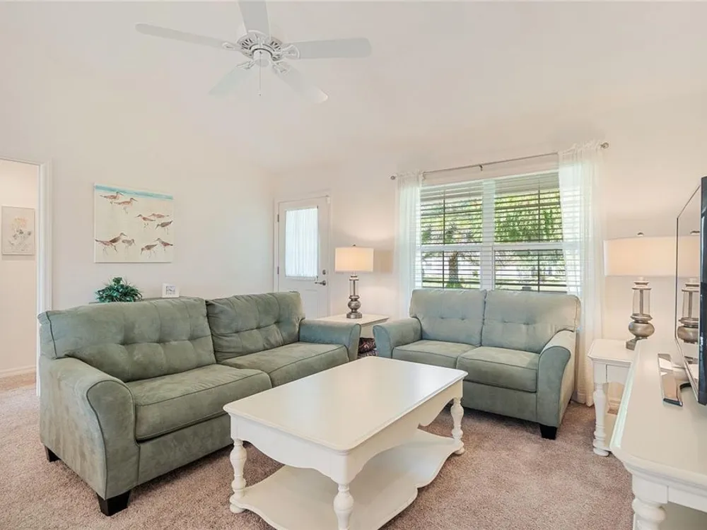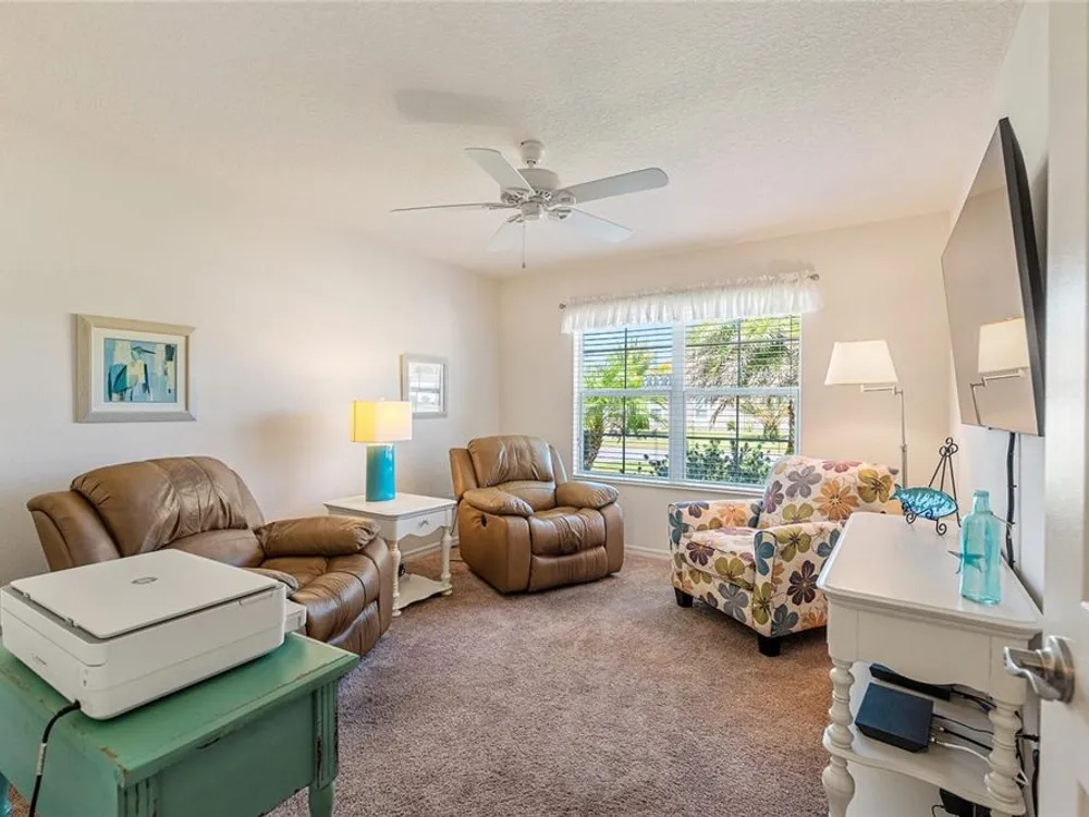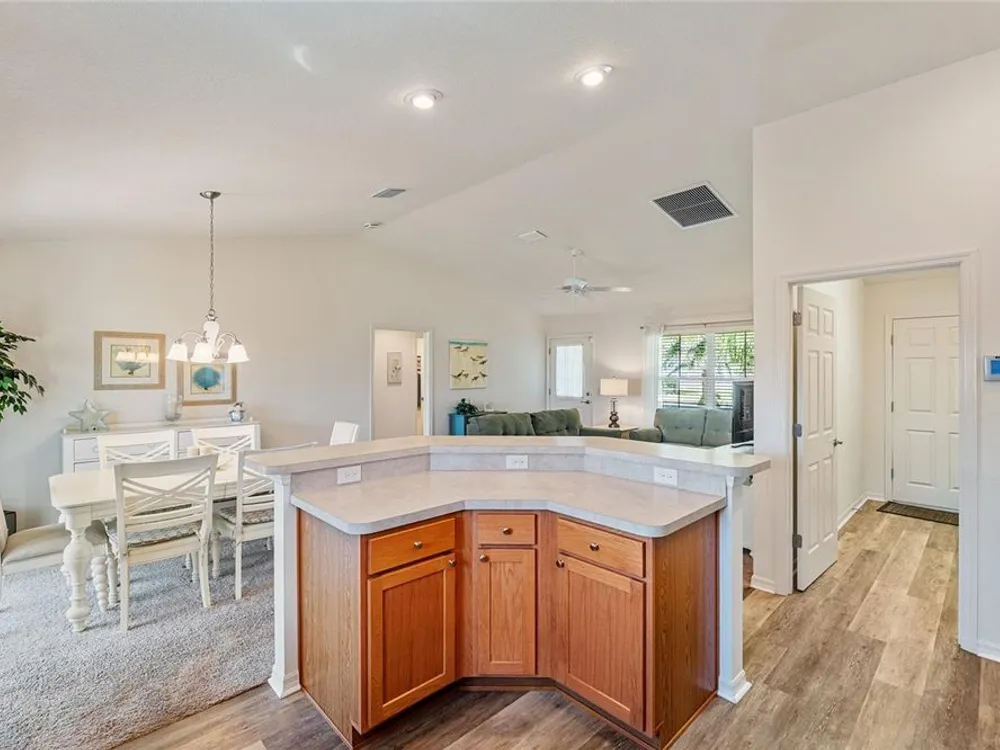 Welcome to 3505 Boardroom Trail. Location, Location, Location! You will be close to Belle Glade Championship Country Club with its fabulous FMK Restaurant and 27 holes of challenging golf. This well maintained Three bedroom - Two bath “Sun Kissed” model is ready for a quick close. The soaring ceilings give it a very open feel. You will enjoy this lightly lived in home that was used seasonally. It will be a great place to get your Villages life started. The friendly neighborhood pool is just down the street! Burnside Family Recreation Center is a short cart ride away. Three additional Executive Golf Courses (Volusia, Escambia, & Okeechobee) are not far from the home either. Living in the Village of La Belle North, you will be spoiled with shopping at either the Walmart Neighborhood Store and Gas Station or Colony Plaza, which is also just minutes away, complete with Restaurants, Banking, Fast Food, Fuel and Healthcare. This defines convenience! Special features of this home include a welcoming open front porch, a 15x9 enclosed lanai, plus a 15x9 birdcage for outdoor entertainment with custom painted flooring. The kitchen has neutral colored durable laminate counters, solid wood cabinets, stainless appliances and a breakfast bar as the gathering point for friends and family. The kitchen, laundry and bathrooms have stylish luxury vinyl flooring. Each of the bedrooms has ceiling fans with light kits. You will love the storage space since both guest bedrooms have closets. and the primary suite has a very large walk-in closet. In the primary bedroom with ensuite bath, there are dual sinks and a step-in shower. The garage also has custom finished floor for a very clean look. If you are looking for a clean affordable home to start your life in The Villages, this should be the one! If interested this home could be yours with a separate turnkey package that includes a 2016 Yamaha golf cart which many upgrades. Low Bond balance - Call today!