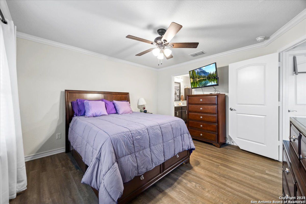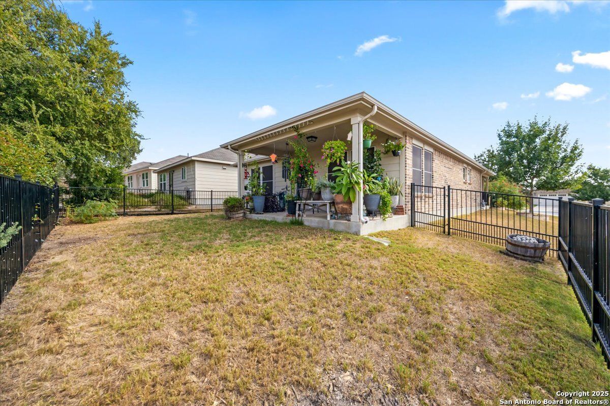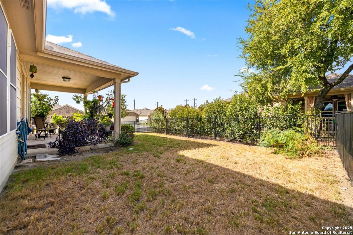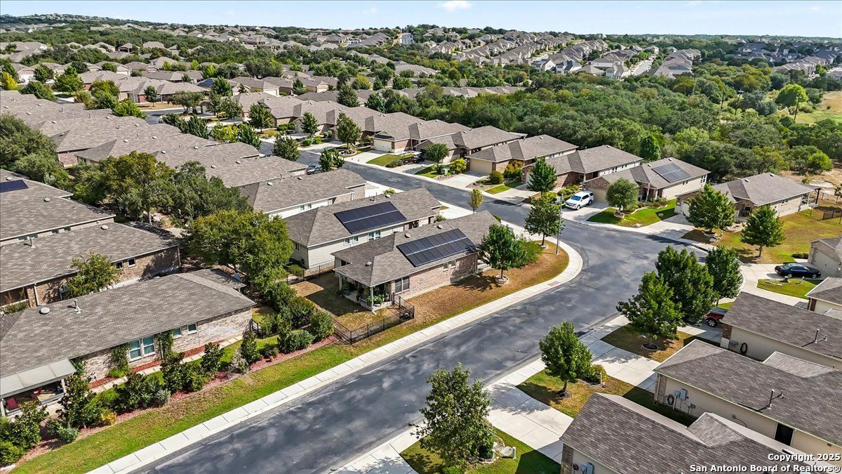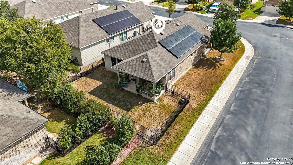 Relaxed Living at its Best! Imagine mornings on your sun-dappled patio with coffee in hand, surrounded by lovely landscaping and the gentle rustle of the breeze on your spacious corner lot. This bright and open home welcomes you with an easy-flow split-bedroom layout, a bonus room perfect for hobbies or card games, and a freshly painted wrought iron fence that adds just the right touch of charm. The new insulated garage door and solar panels keep life comfortable-and the electric bills delightfully low. Located in San Antonio's premier 55+ Del Webb community, every day can feel like a vacation with resort-style amenities including indoor and outdoor pools, pickleball (your new favorite sport!), a grand clubhouse with ballroom, fitness center, and miles of scenic walking trails. Whether you're making new friends, hosting old ones, or just relaxing into this next great chapter-you'll wonder why you didn't move here sooner!