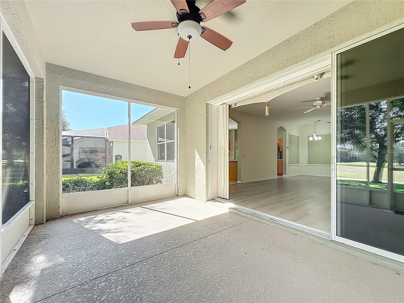 IMMACULATE GOLF FRONT HOME! BRAND NEW ROOF JUST INSTALLED! VACANT AND READY TO MOVE INTO! 2 bedrooms, 2 baths with open floorplan, luxury vinyl flooring just 2 years old. Spacious kitchen with lots of cabinets, recess lighting, breakfast bar, and closet pantry. Dining room and smaller dinette space. Very nice master suite with two walk-in closets, dual sinks, and walk-in tiled shower. Inside laundry with utility sink. Front covered porch and large screened porch in rear with gorgeous views of the golf course. This awesome property is located in a beautiful and popular premier 55+ gated community which features Championship golf course surrounded by a winding river and beautiful old oaks throughout all 18 holes. Resort style pool to cool off during the hot Summers, spacious fitness center, tennis courts, a wonderful restaurant and bar, so many clubs to join, and so much more! Two separate entrances and plenty of sidewalks through-out! Just a short walk from the home to the wonderful amenities. A Fantastic Central Fl location. Only 10-15 minutes to the FL turnpike, 45 minutes to Disney World and all theme parks. 30 minutes to downtown Mount Dora. The Villages just a short ride down the road. Emergency care hospital right down the road, dog park, plenty of restaurants, grocery stores, and drug stores just a few minutes away. Make this beautiful home and community yours today!