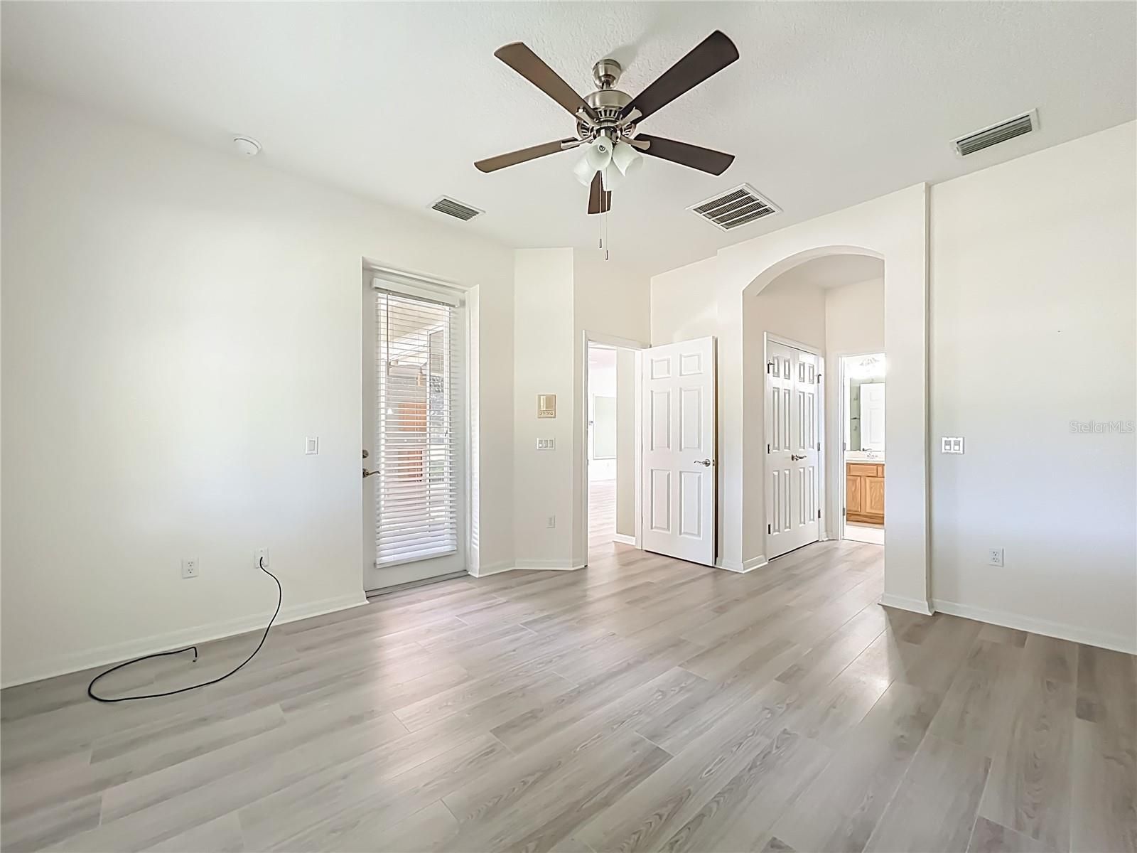- Built-in Features, Ceiling Fan(s), High Ceilings, Open Floorplan, Main Level Primary, Split Bedrooms, Walk-In Closet(s)