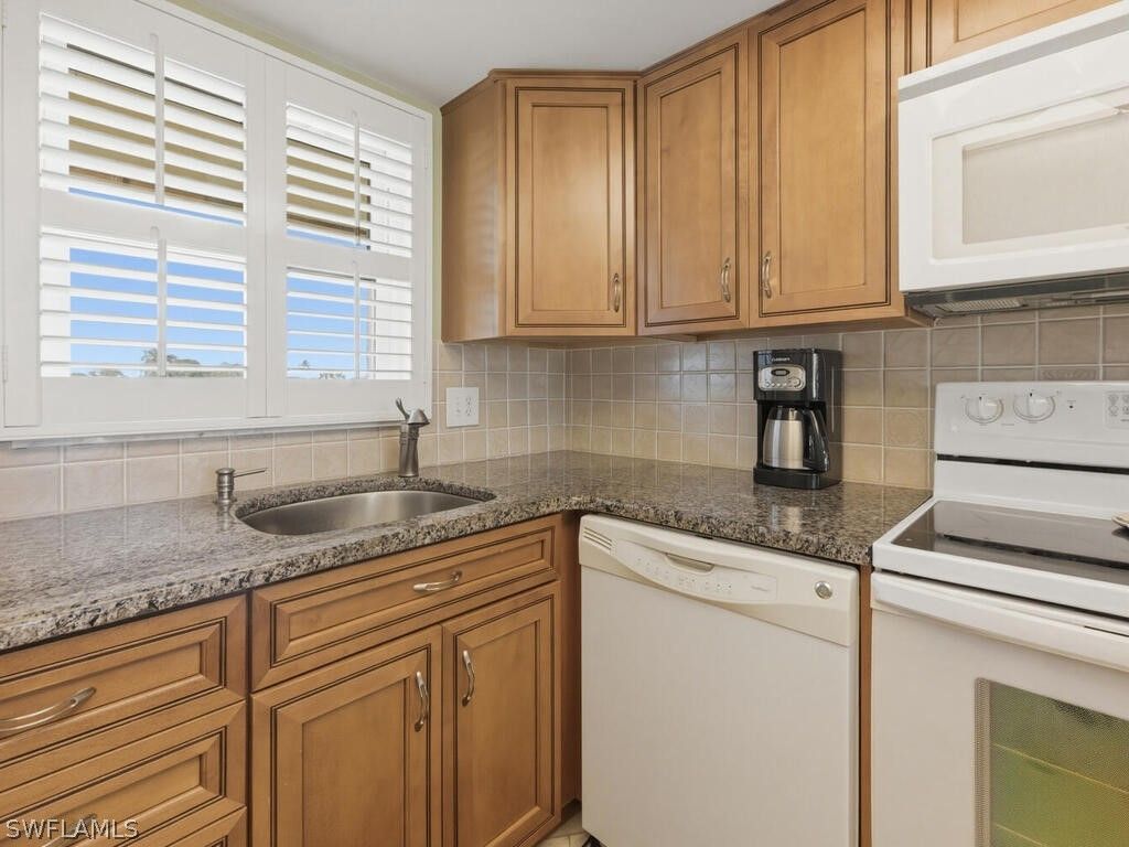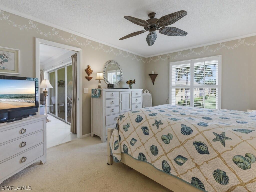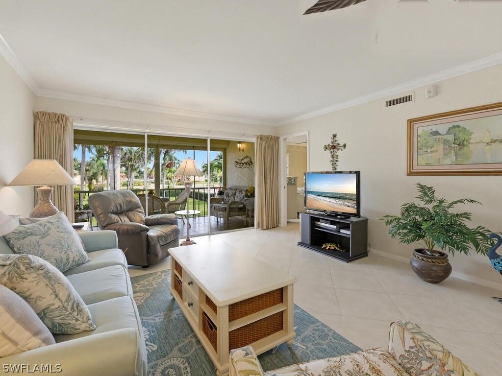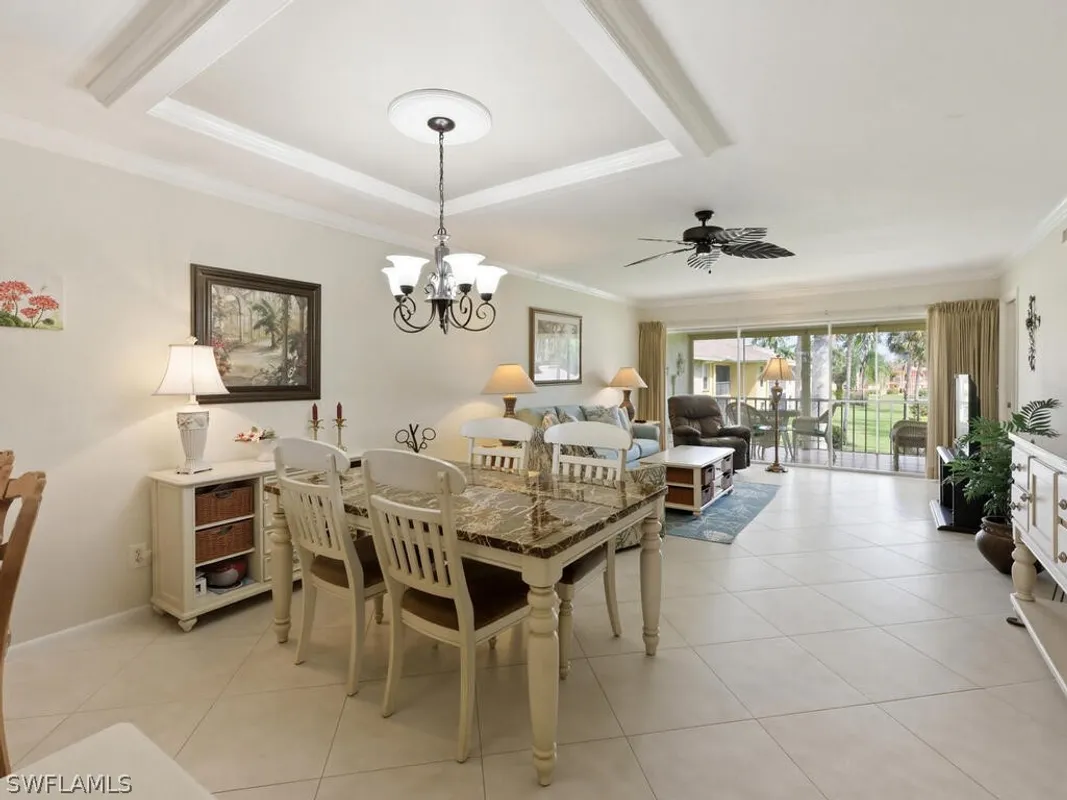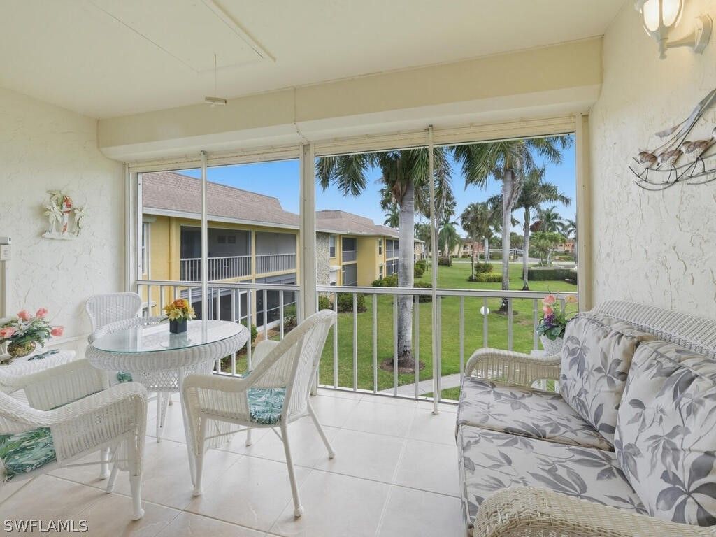 Welcome to easy Naples living in this beautifully furnished and updated 2-bed, 2-bath second-floor condo in the desirable 55+ community of Riviera Golf Estates. Light, airy, and thoughtfully designed, the home features a soothing coastal palette, large diagonal tile flooring throughout the main living areas, and plantation shutters that enhance the bright, inviting interior. The updated kitchen offers natural stone countertops, matching appliances, and ample cabinetry, creating a functional and attractive space for everyday living. Both bathrooms feature modern updates, while spacious bedrooms provide comfortable retreats. A wall of sliding glass doors fills the living area with natural light and opens to a screened lanai, ideal for enjoying morning coffee or relaxing in the Florida breeze. For added peace of mind, the residence includes impact windows along with hurricane shutters on the lanai. Offered tastefully furnished, this home is truly move-in ready and also includes the convenience of an in-unit washer and dryer. Residents enjoy access to a community pool with a summer kitchen and comfortable lounging areas, perfect for social gatherings or quiet afternoons in the sun when not combing nearby beaches. Ideally located in a low-density, peaceful setting within Riviera Golf Estates, the community is just minutes from Downtown Olde Naples, vibrant Fifth Avenue South, and the sugar-sand Gulf beaches, with Marco Island’s renowned beaches also nearby. Shopping, dining, and everyday conveniences are all close at hand, allowing you to enjoy the best of Naples while tucked away in a quiet, welcoming neighborhood.