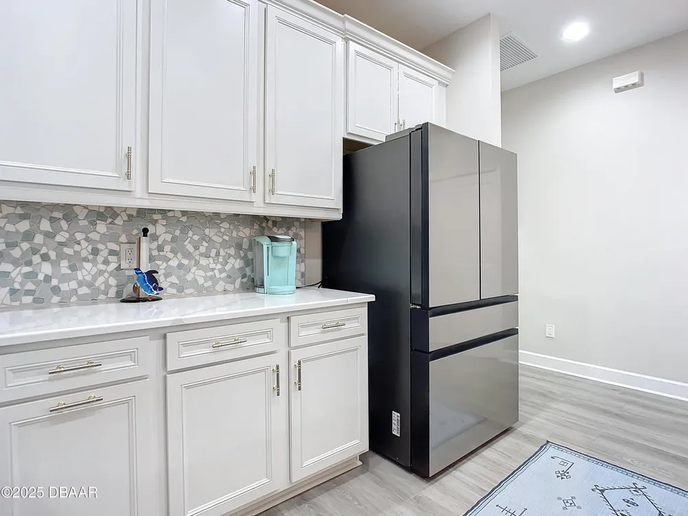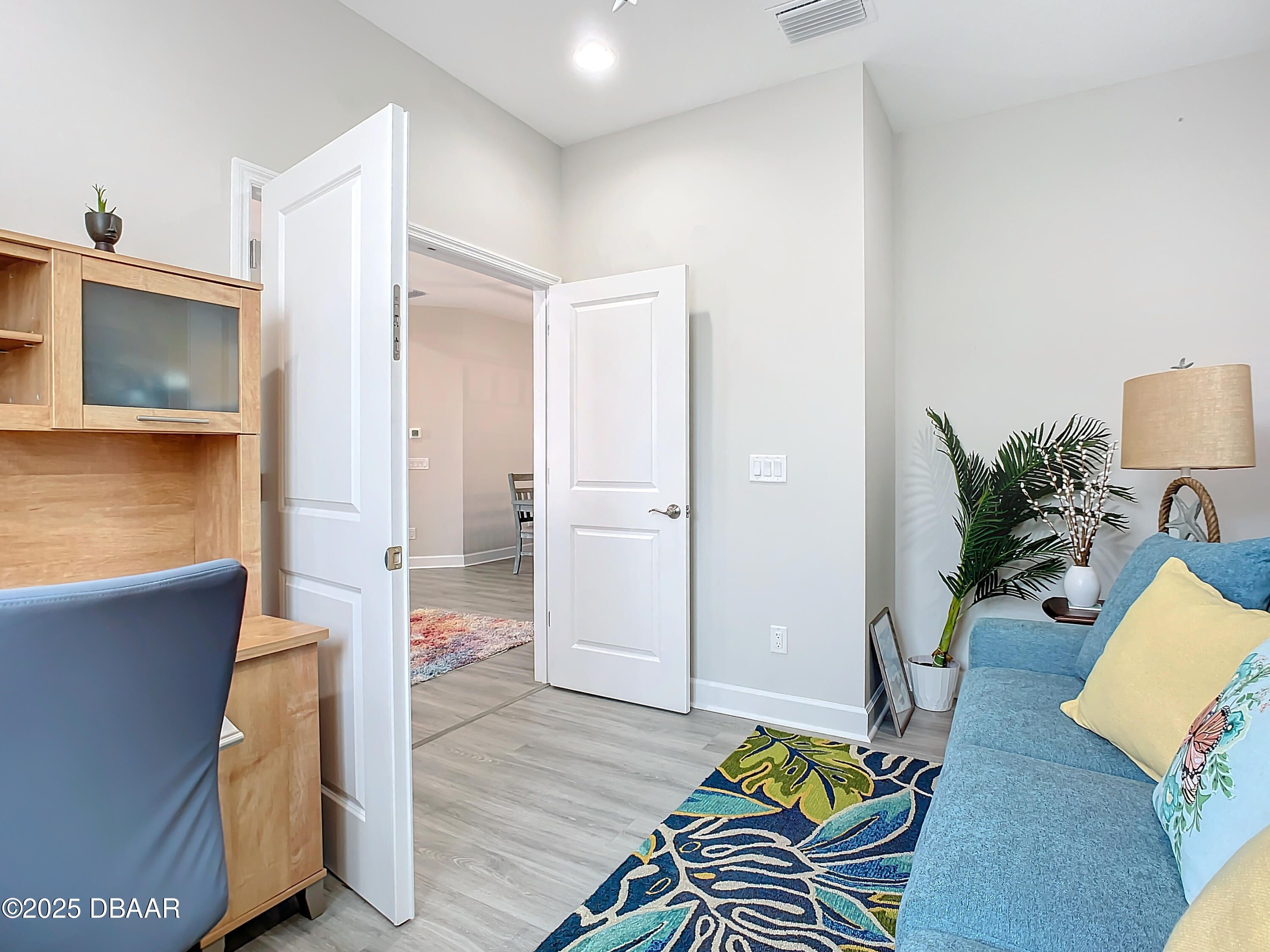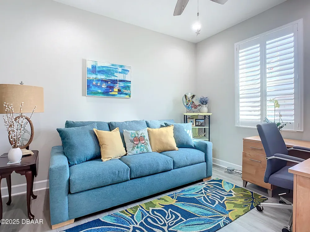 Beautiful Antigua located on a fabulous lot! Enjoy the extra green space and wooded view as you walk into this upgraded villa. The kitchen has been upgraded with WHITE cabinets, soft close drawers ,pull out shelves and beautiful custom glass accent door. You Will LOVE the QUARTZ countertops with a stylish, full backsplash in coastal colors, GAS range and pendant lighting! DEN has double doors. This light and bright villa has recessed lighting already in place, PLANTATION SHUTTERS, Ceiling fans and laminate, plank flooring throughout. The large primary bedroom has a CUSTOM ACCENT WALL and preserve view. Bonus cabinets in the laundry room plus the garage has Epoxy floors! Relax on your screened in lanai with preserve view. Latitude Margaritaville is a 55+, private, gated community. 3 heated pools including, 1 indoor lap pool, an outdoor sports pool and the resort style main pool. PRIVATE BEACH CLUB! Live music at the Bar and Chill Restaurant. Enjoy our NEW Sandbar restaurant! State of the art Fins Up Fitness Center, Mango Theater,dog park, PICKLEBALL, and TENNIS. Come visit this FINtastic community. Home is currently tenant occupied and has tenants furnishings. Current lease ends 6/20/2025. 24 hour notice to show, pets on premises.