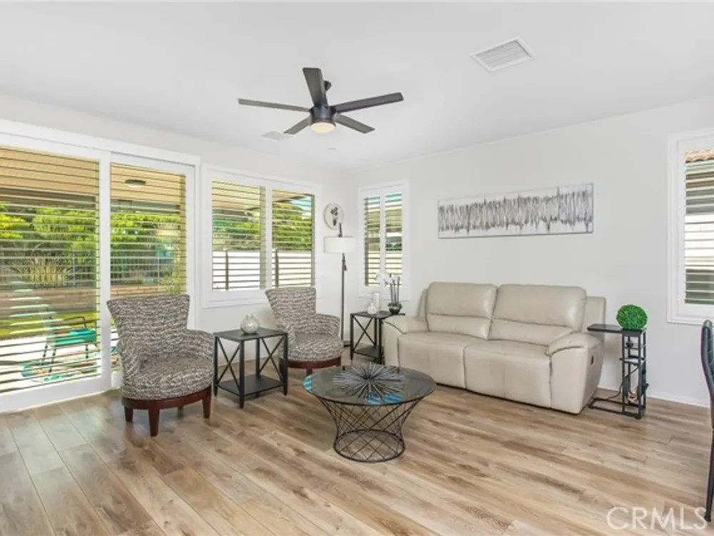 Are you ready to redefine retirement or secure the ultimate second home that sparks joy every single day? Welcome to 351 Scarlett Runner Dr., an exquisite single-story sanctuary nestled in the prestigious Four Seasons 55+ resort community in Beaumont. This stunning 2-bedroom, 2-bathroom haven, complete with a 3-car tandem garage and a versatile den, spans 1,600 sq. ft. of thoughtfully designed, light-filled space-crafted to elevate your lifestyle with effortless elegance and boundless opportunity. As you pass through the secure gates of Four Seasons, you're greeted by lush, meticulously manicured landscaping and breathtaking mountain vistas that set the stage for a life of serenity and inspiration. This isn't just a home-it's a gateway to a vibrant, fulfilling chapter. Step inside to discover a timeless modern kitchen, featuring expansive countertops, a spacious walk-in pantry, a sleek central island, and appliances. The open-concept design seamlessly connects the kitchen to the dining and living areas, where abundant natural light pours in, framing picturesque views of the surrounding scenery from both your front and backyard. The backyard? A low-maintenance masterpiece designed for pure enjoyment. With no neighbors directly behind, it's your private oasis for sipping morning co