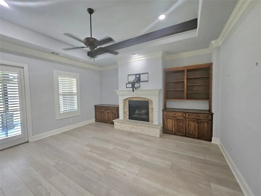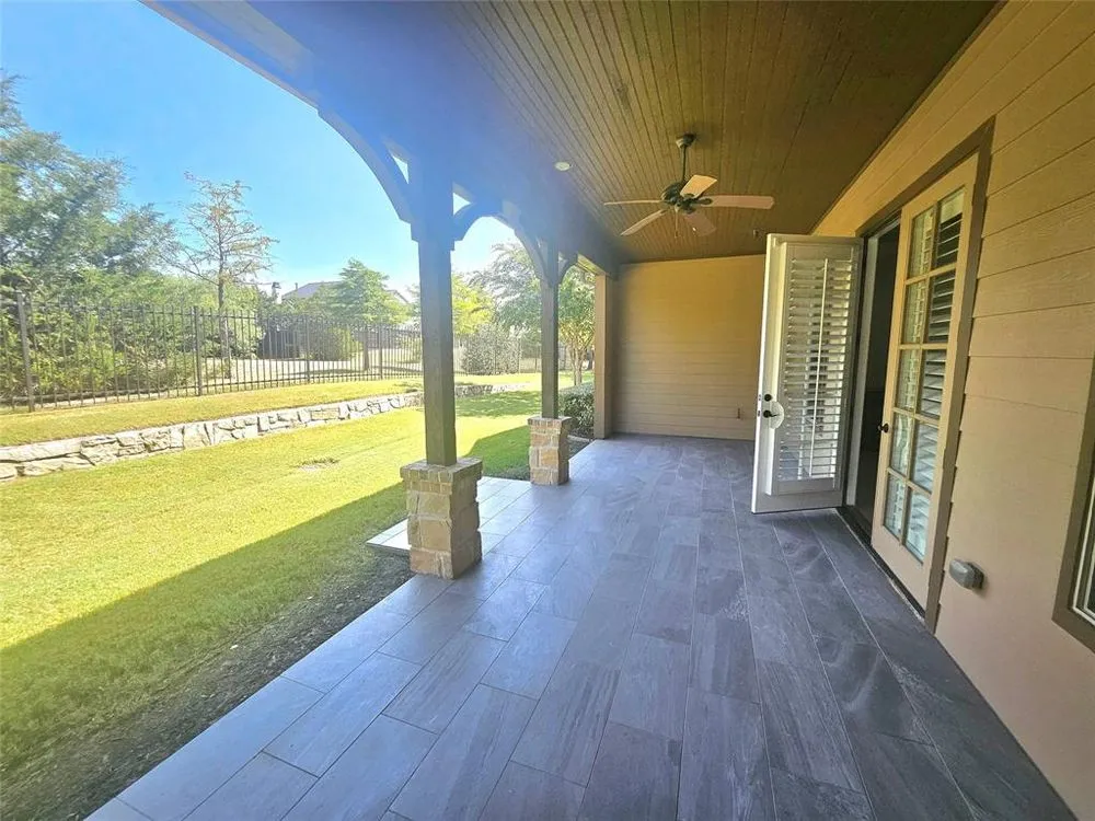 Senior Living in Southlake! Welcome to this beautifully updated single-story villa located in the desirable East Village, just steps from the clubhouse. This spacious home features two bedrooms, a private study, and two and a half baths, offering comfort and flexibility for both everyday living and entertaining. Step inside to an open-concept floor plan with freshly painted interiors and new luxury vinyl plank flooring throughout. The gourmet kitchen includes a bar for casual seating, while the living and dining areas feature custom built-ins and plantation shutters for timeless elegance. A large laundry room and private back patio add to the home’s functionality and charm. Additional highlights include: Two-car attached garage, spacious primary suite with ensuite bath, bright and inviting spaces for family and friends. Residents enjoy a low-maintenance lifestyle with club membership included in the price. Membership provides access to resort-style amenities such as concierge services, security, golf, fitness center, water aerobics, scheduled activities and games, plus dining at the café, restaurant, and cocktail lounge. Experience the perfect blend of luxury, convenience, and community living—all just minutes from shopping, dining, and more.